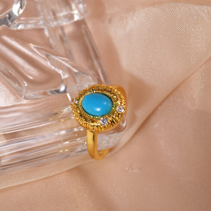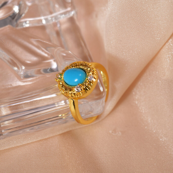 18K Gold Plated Turquoise Ring – Elegant & Lucky