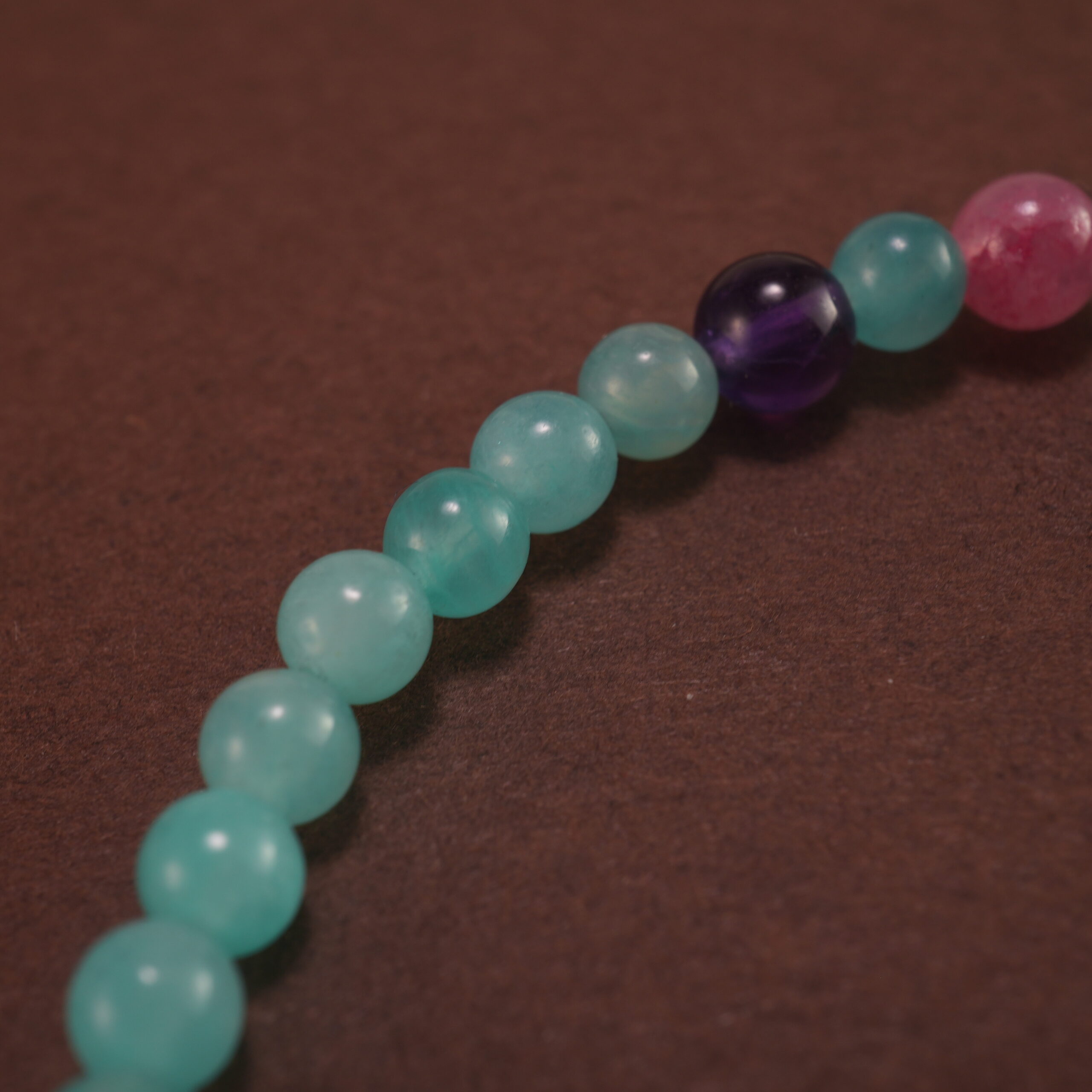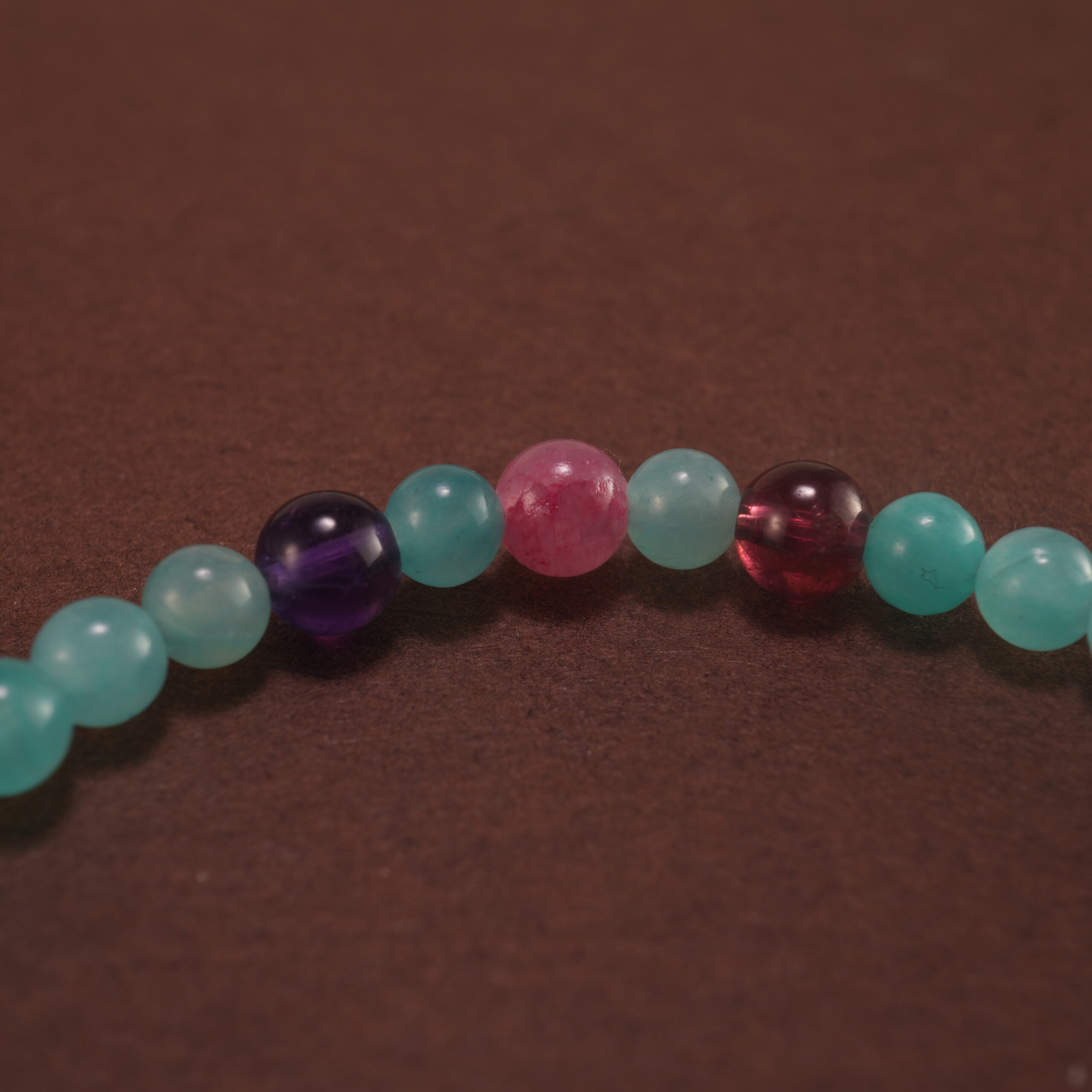 - Genuine Amazonite, Amethyst, Rhodochrosite, and Garnet beads