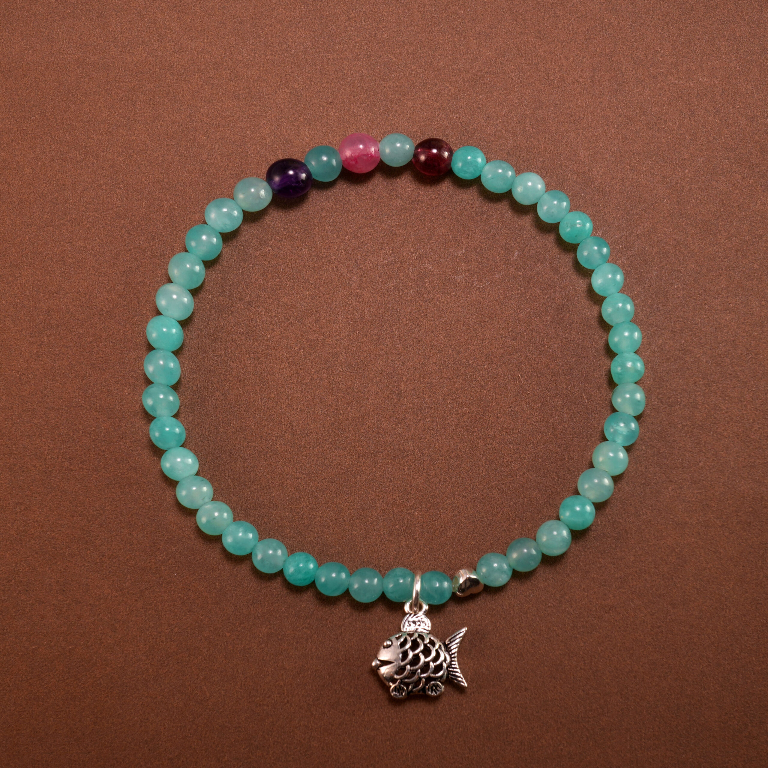 Be the first to review “Charm Bracelet with Amazonite, Amethyst, Rhodochrosite & Garnet Beads” Cancel reply