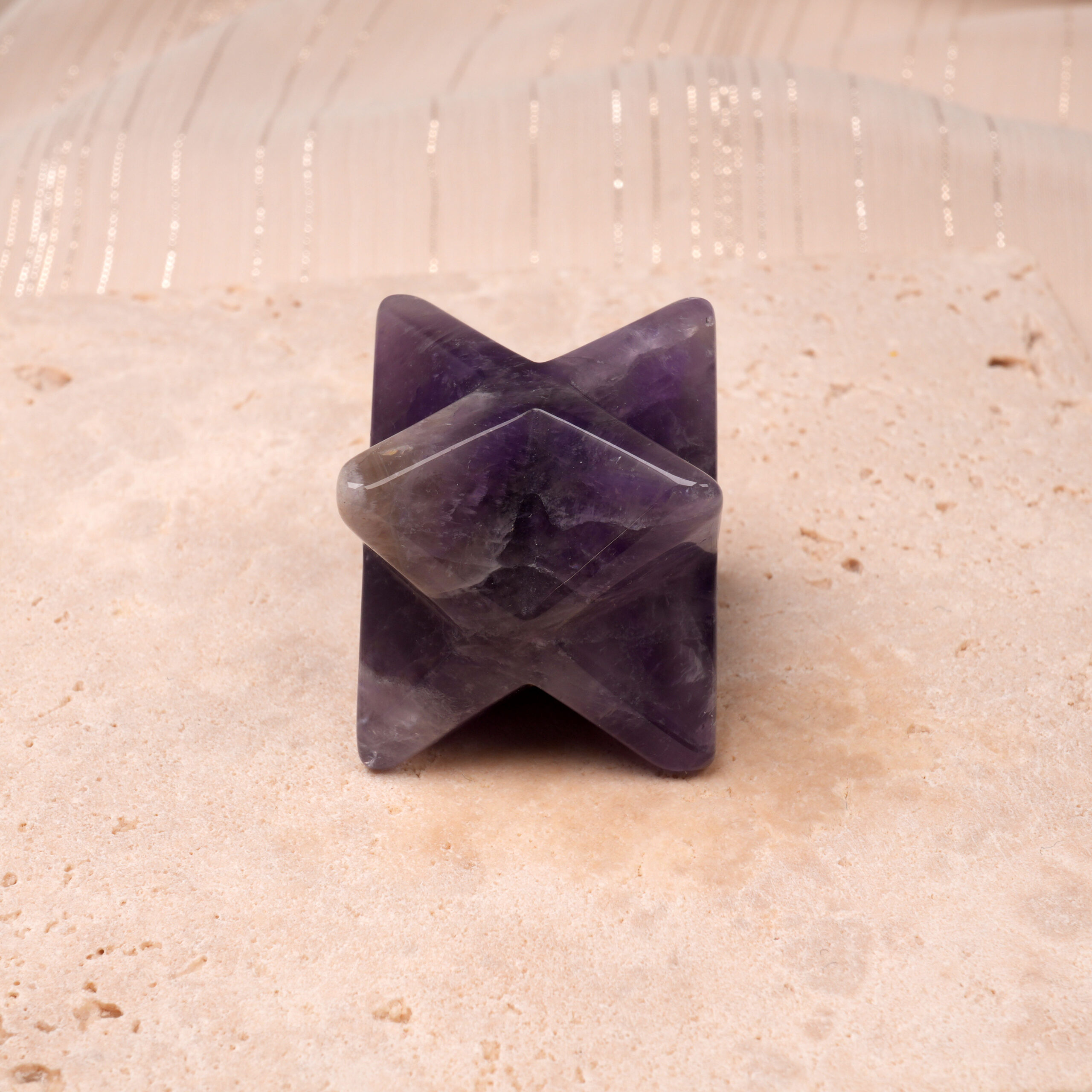 This dreamy amethyst stone Merkaba is a calming and intuitive crystal carving that supports peace, protection, and spiritual awakening.