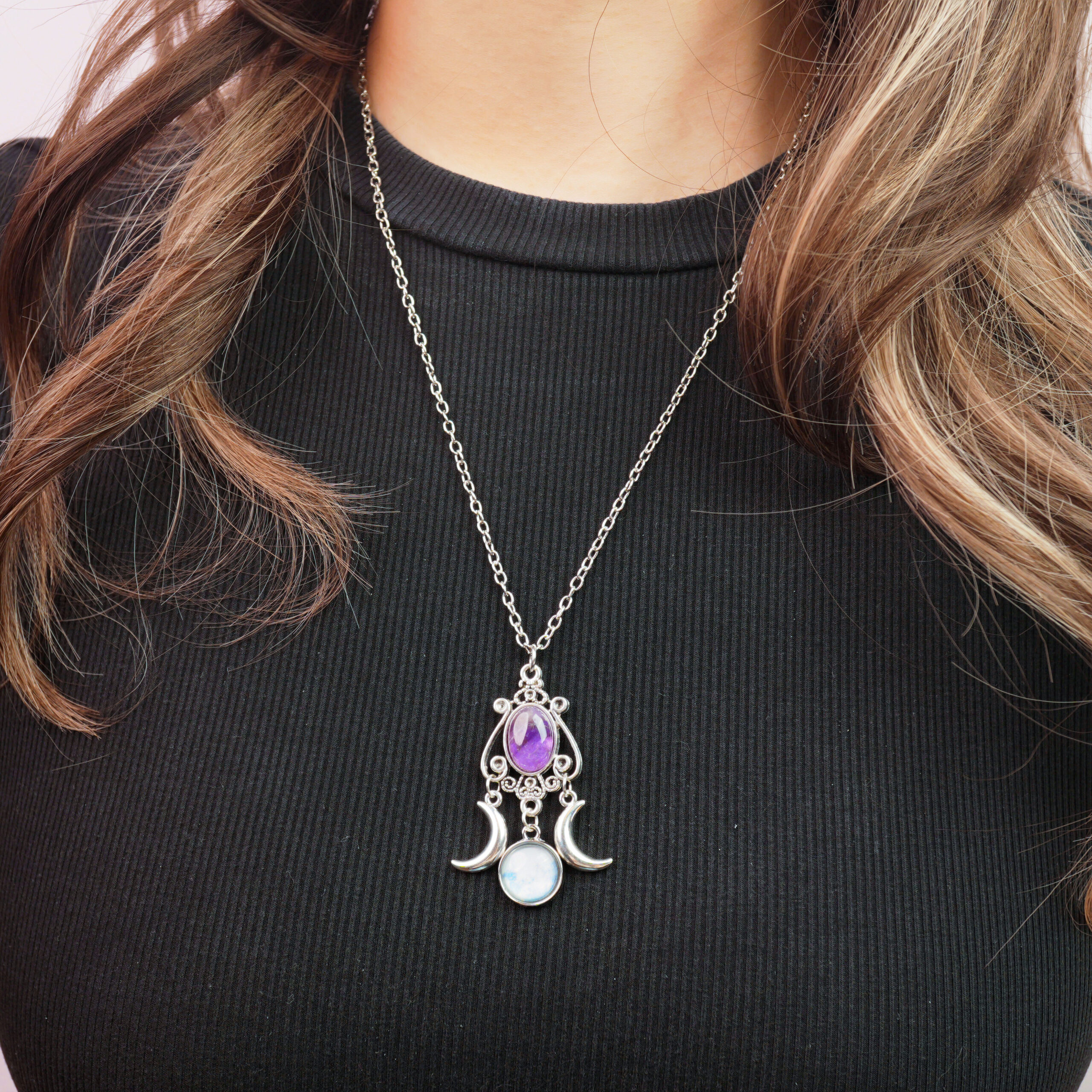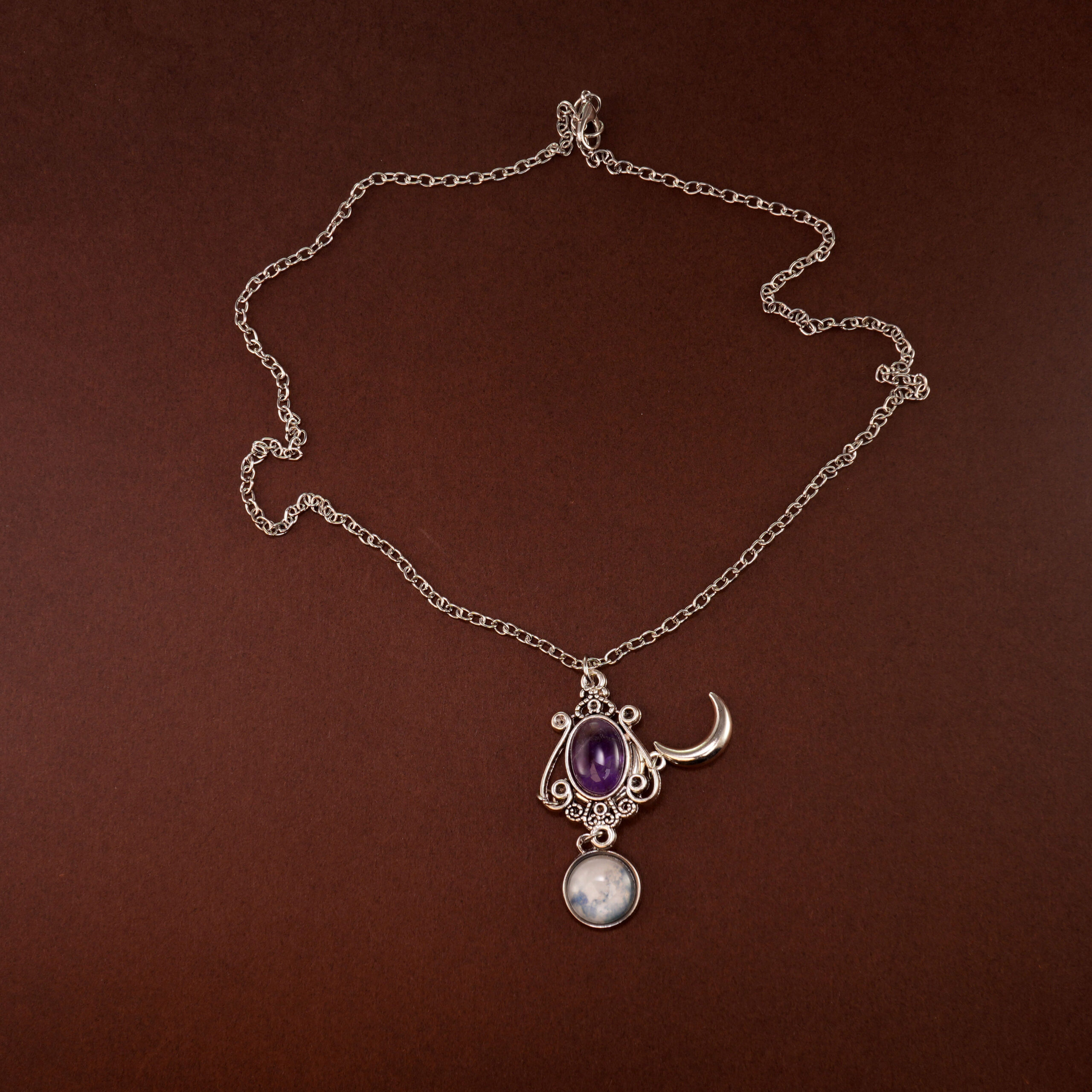 Amethyst is renowned for its ability to calm the mind and support peaceful sleep. This amethyst moon pendant necklace can:
