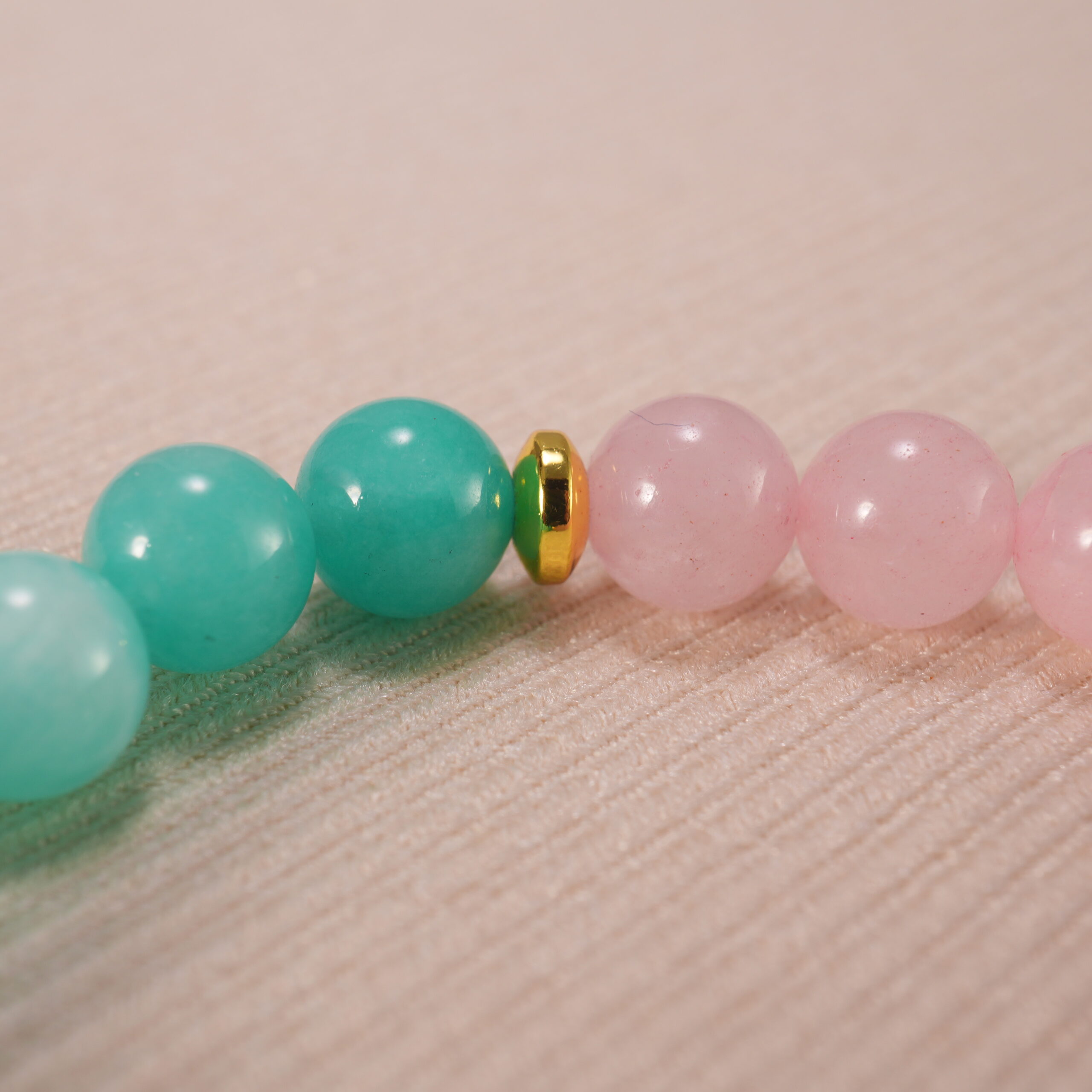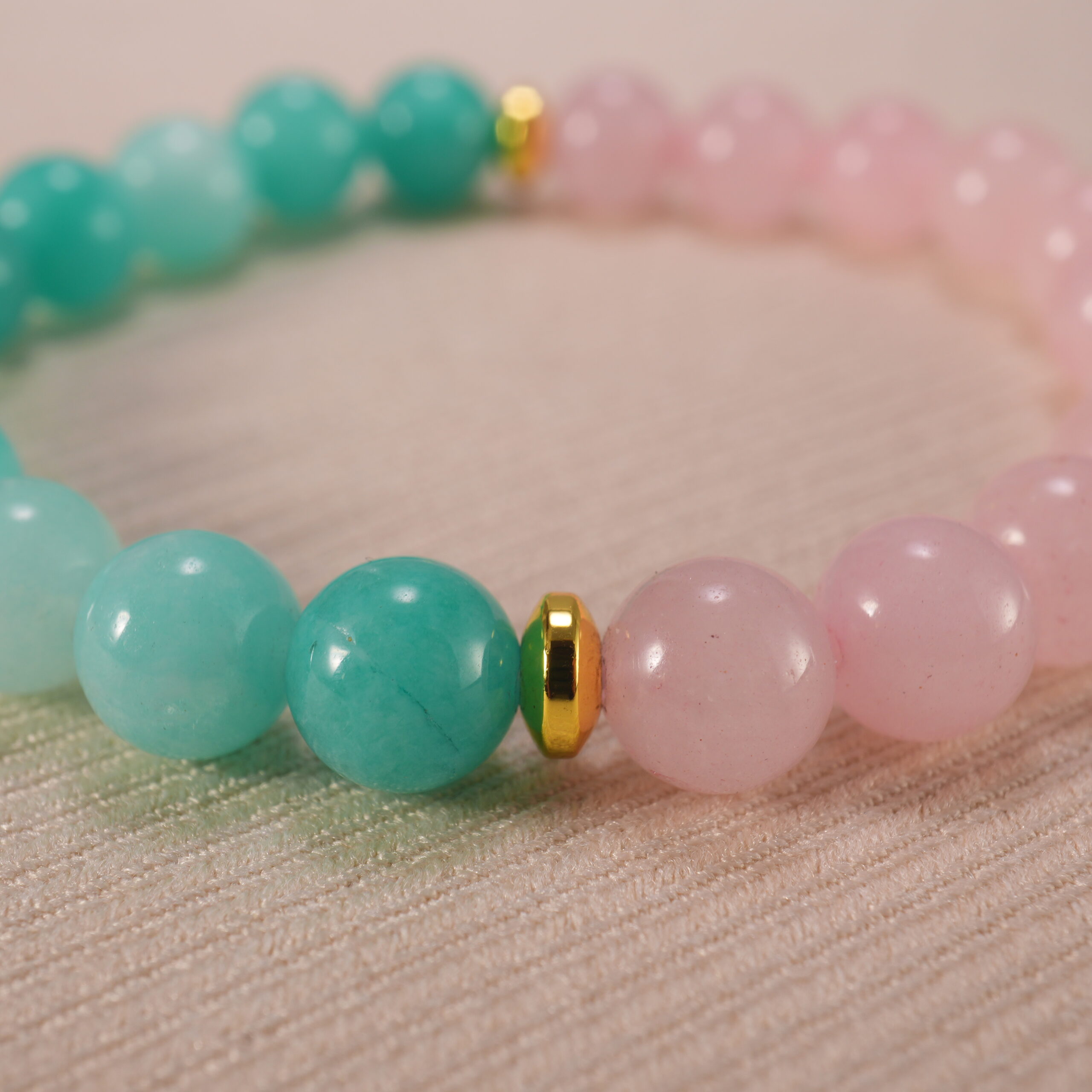 Stacked Bracelets featuring Amethyst, Clear Quartz, Rose Stone, and Amazonite, blending calm, love, and clarity. Handcrafted in soft, uplifting tones to support emotional healing, communication, and peace. A gentle crystal stack perfect for daily wear, self-care, or gifting.