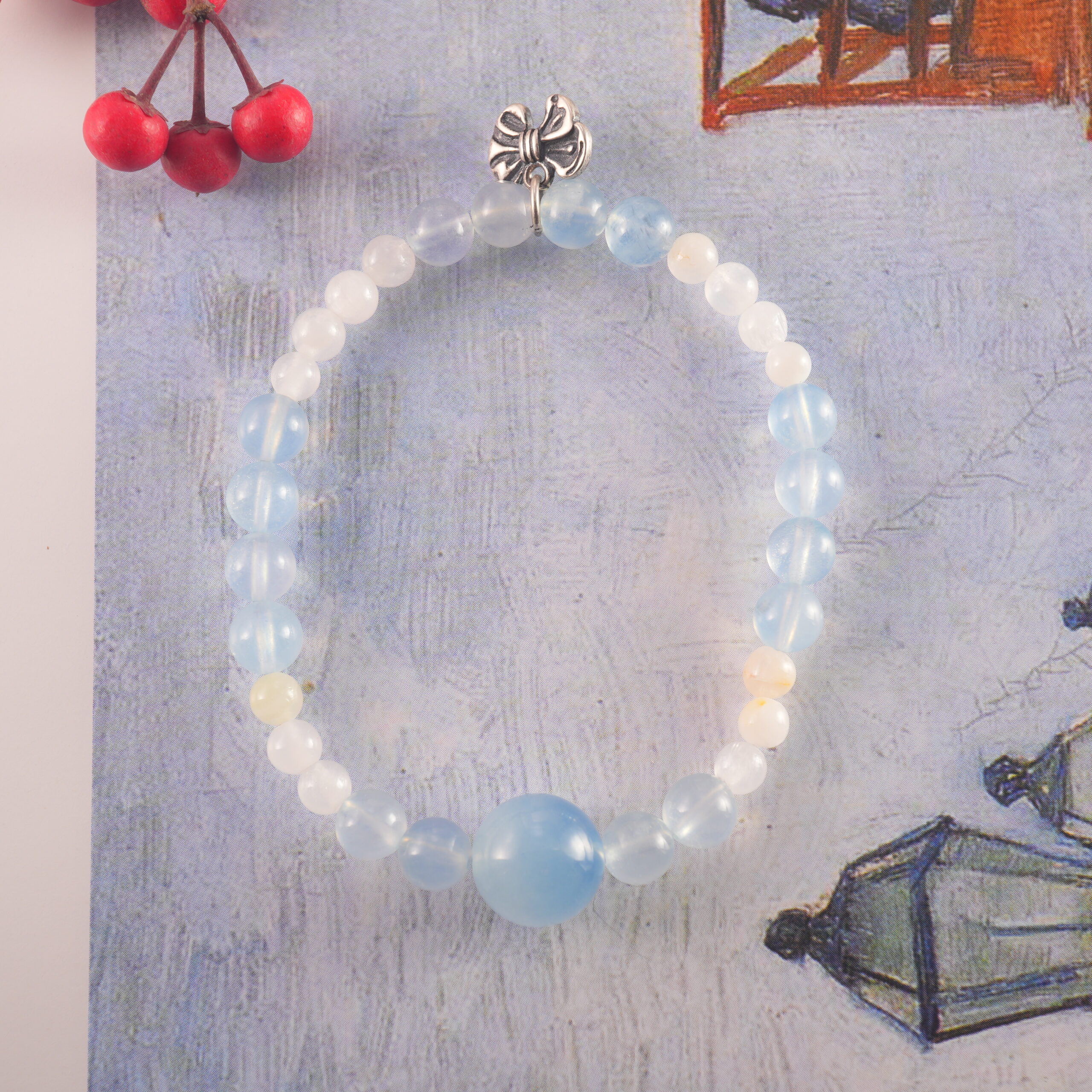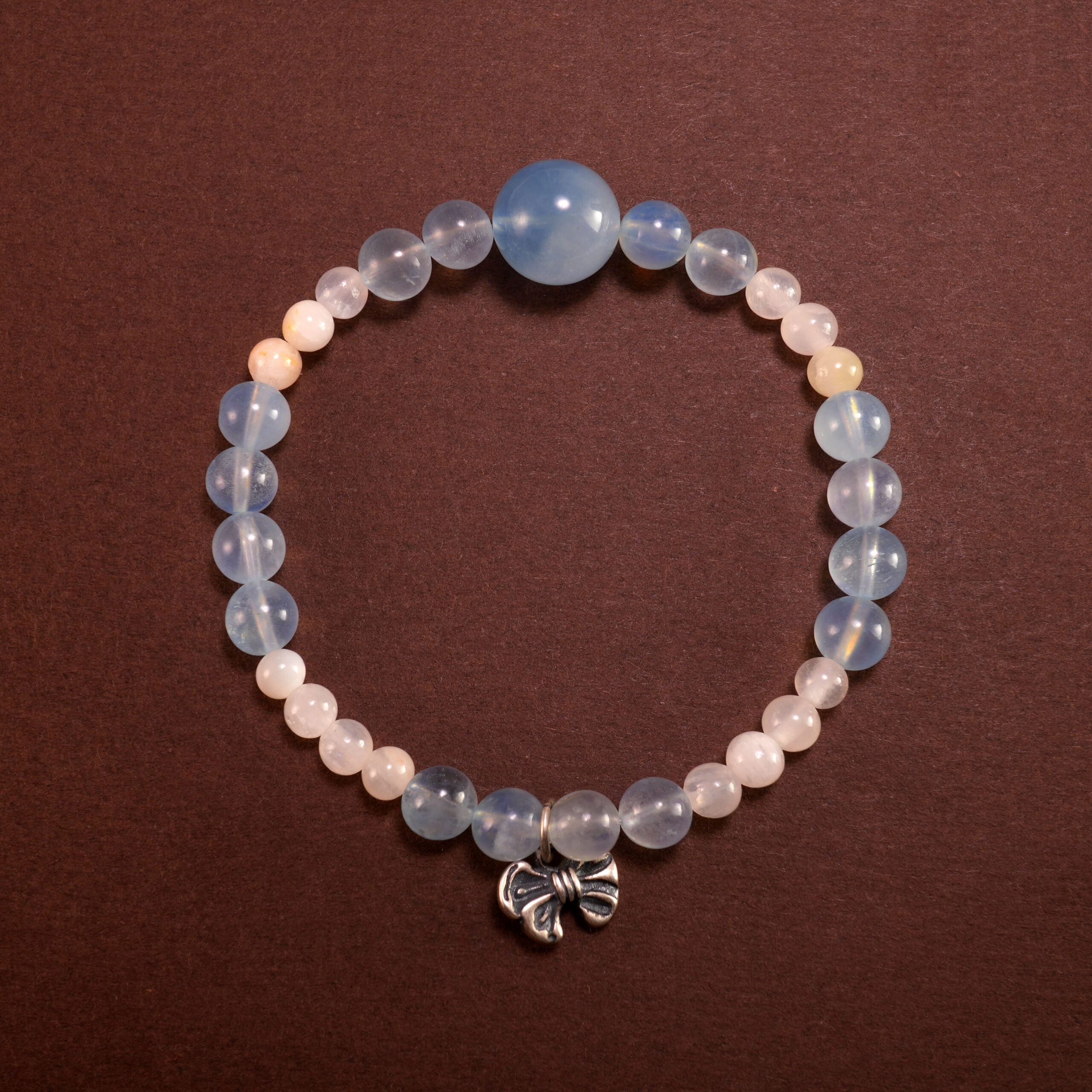 Aquamarine & Chalcedony Bracelet with Bow Charm