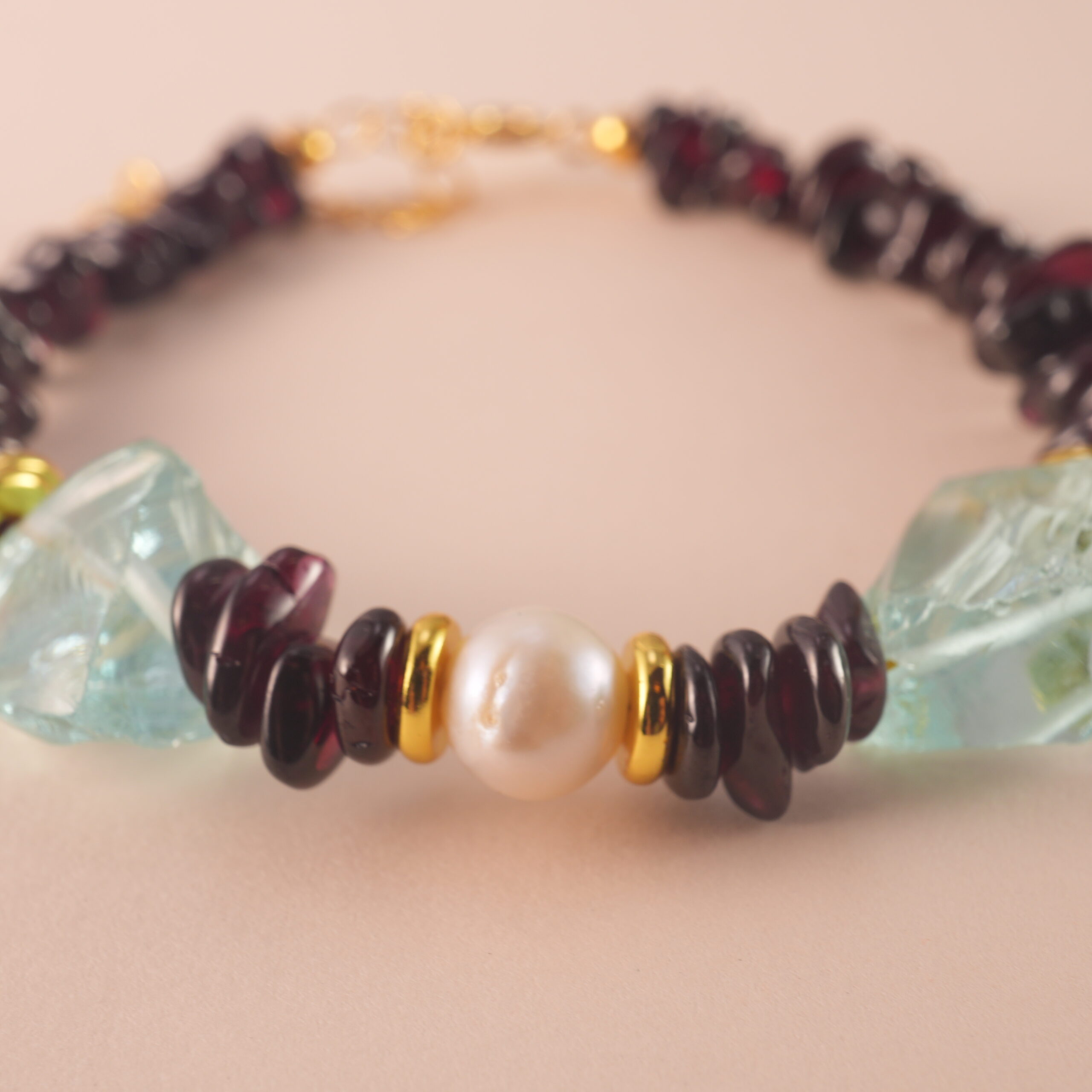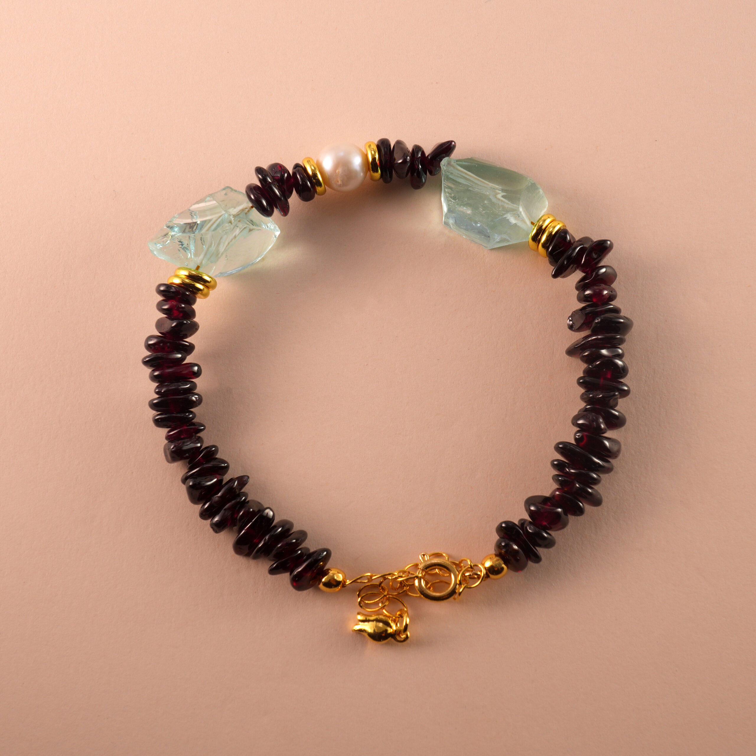 Aquarius Bracelet – Garnet, Pearl & Aquamarine Jewelry