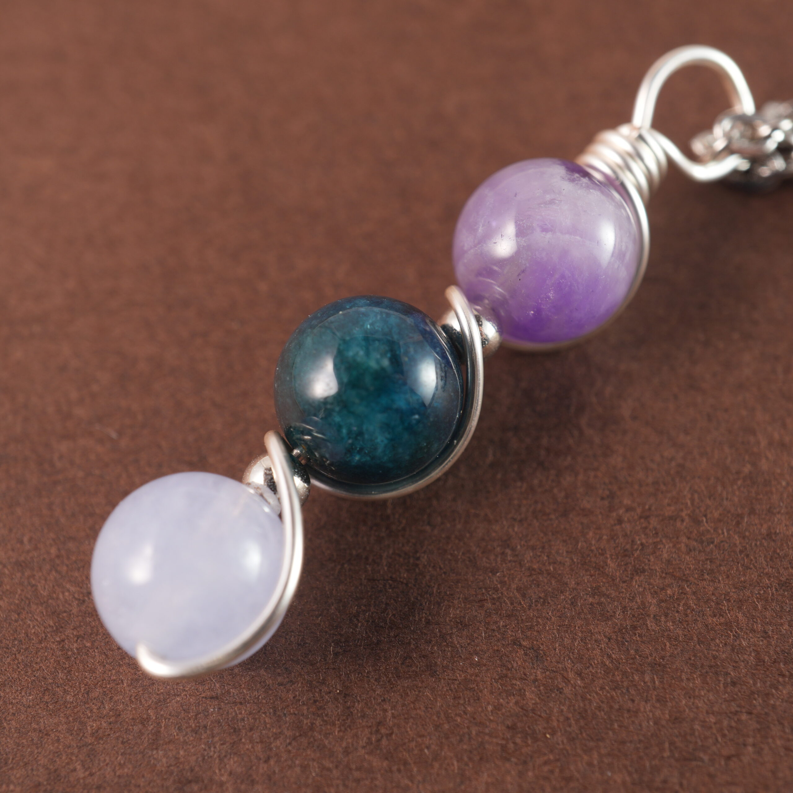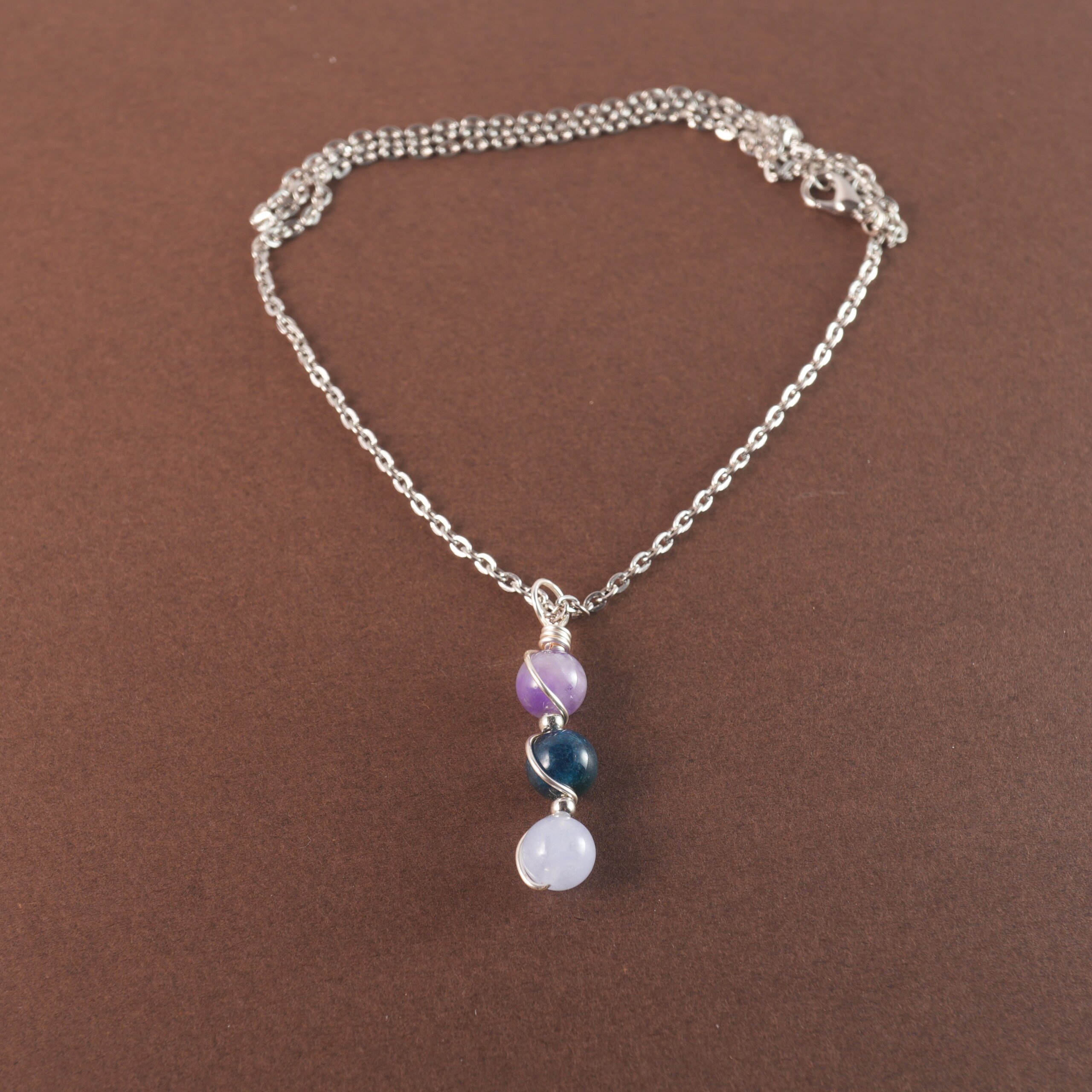 - Custom-designed Aquarius zodiac necklace made with Amethyst, Aquamarine, and Blue Apatite