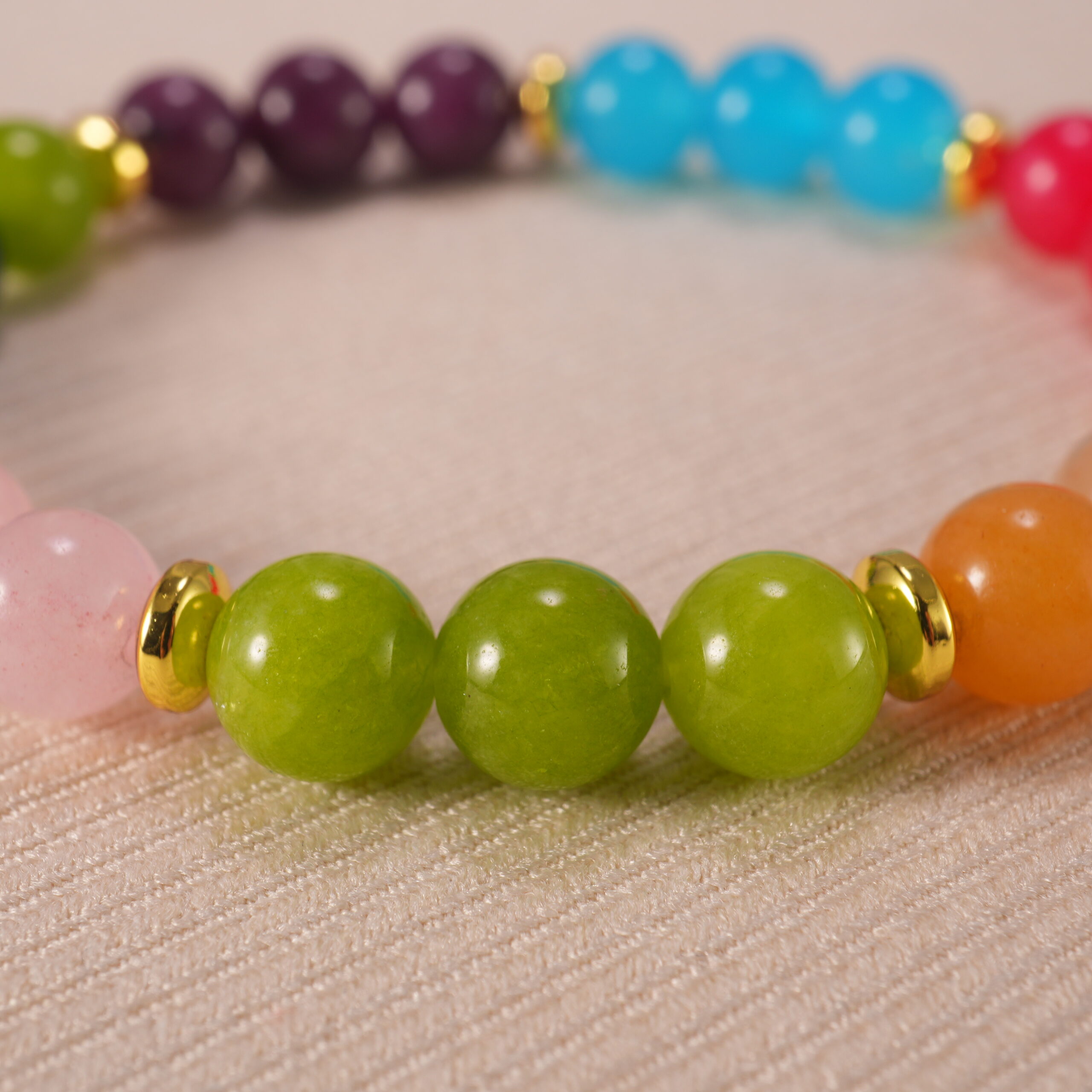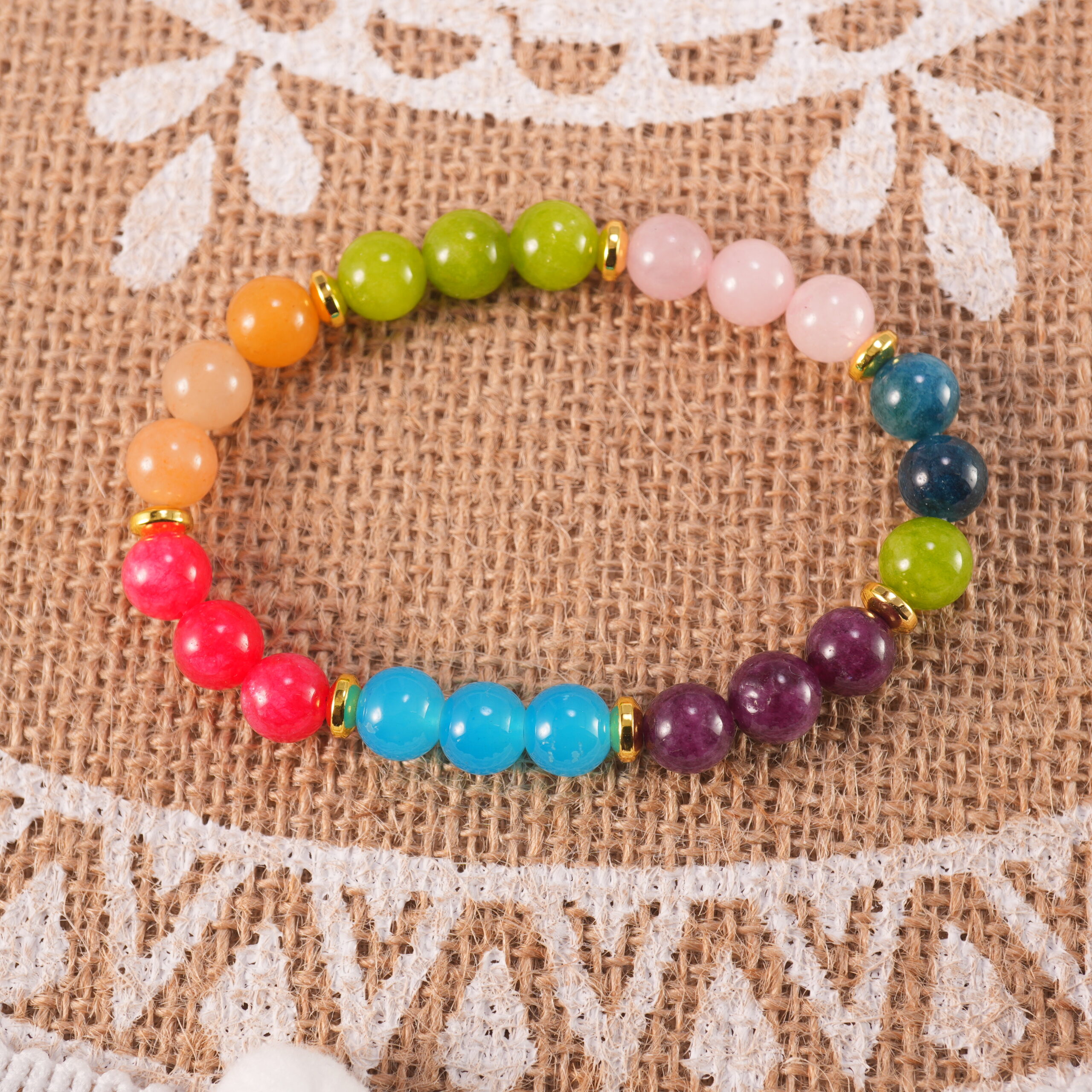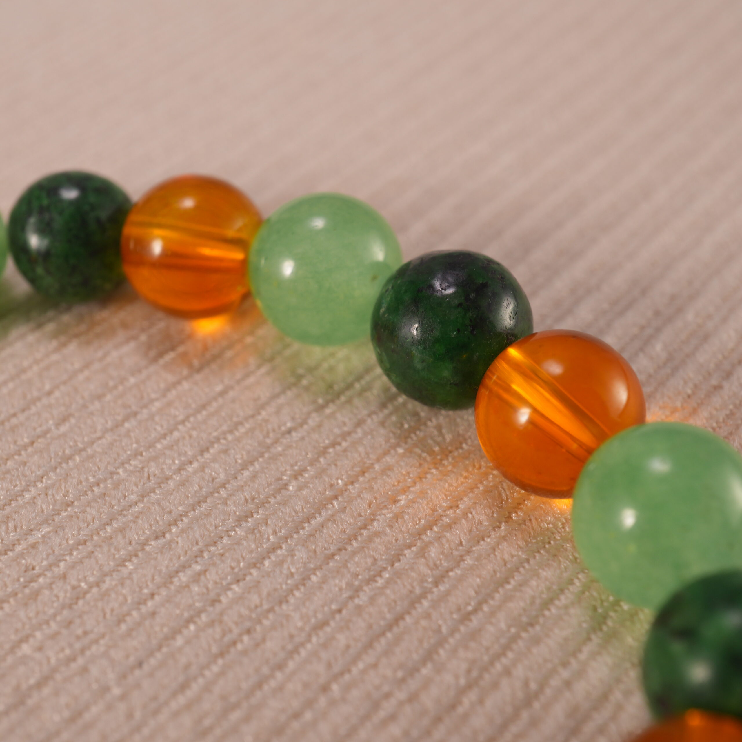 - Multi-gemstone bracelet stack with aventurine, citrine, and colorful beaded accents