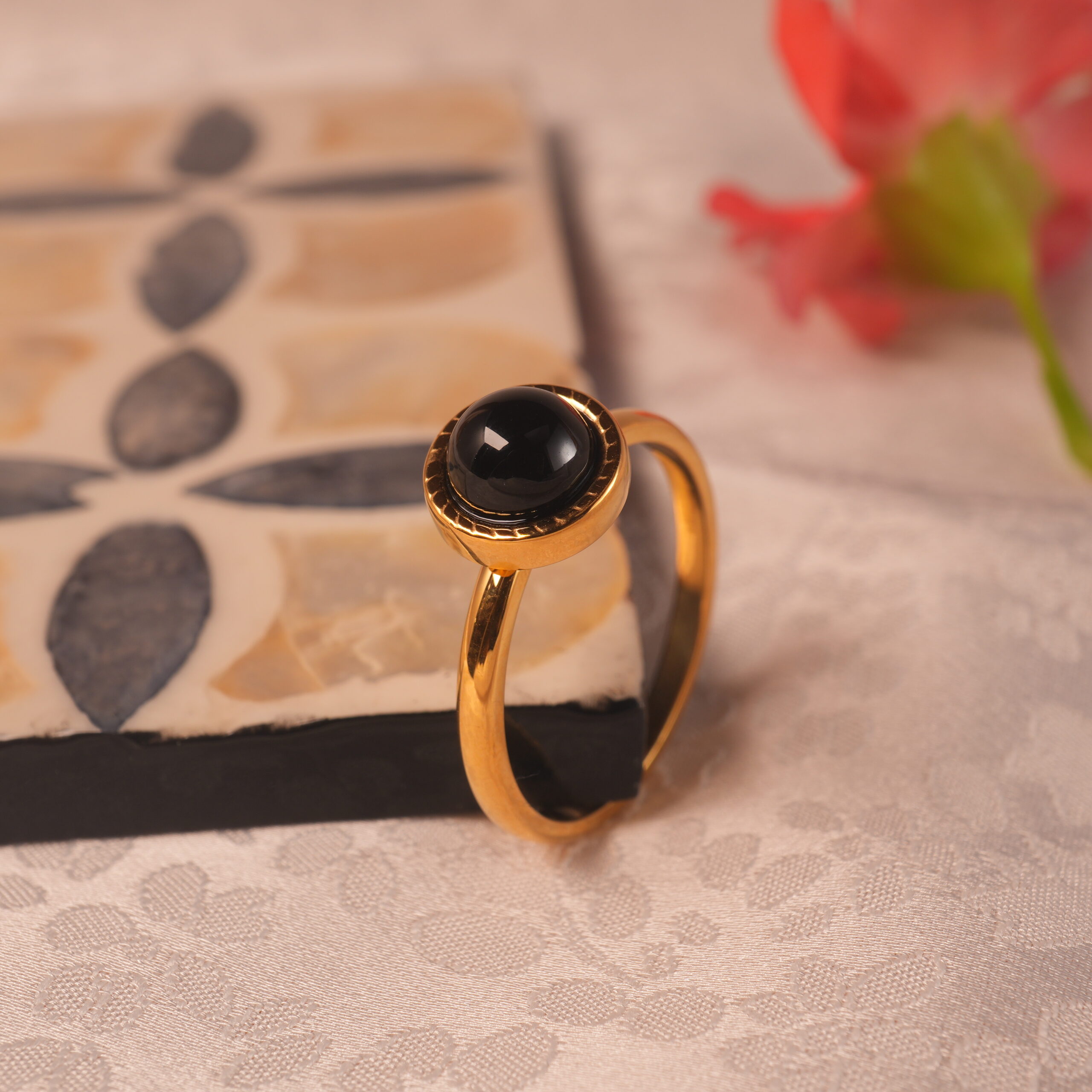 A sleek ring with black tourmaline, symbolizing protection, grounding, and inner strength. Absorbing negativity and reducing stress, it brings clarity, balance, and timeless style, making it perfect for both daily wear and special occasions.