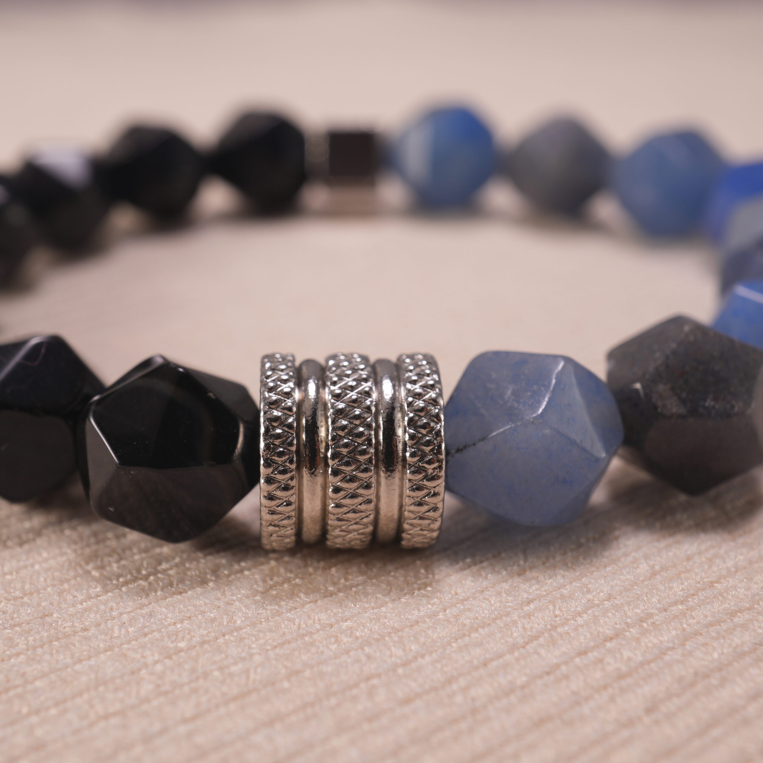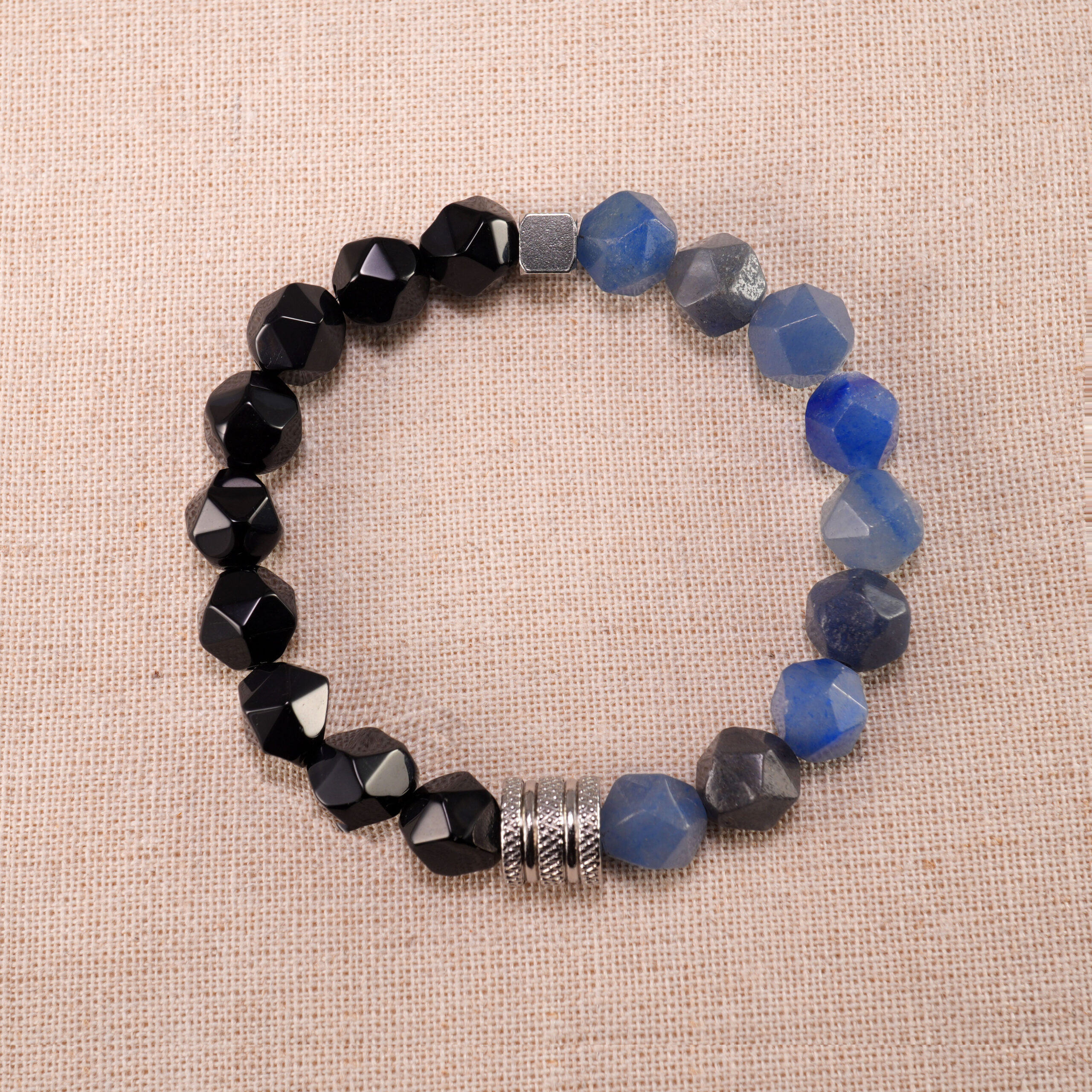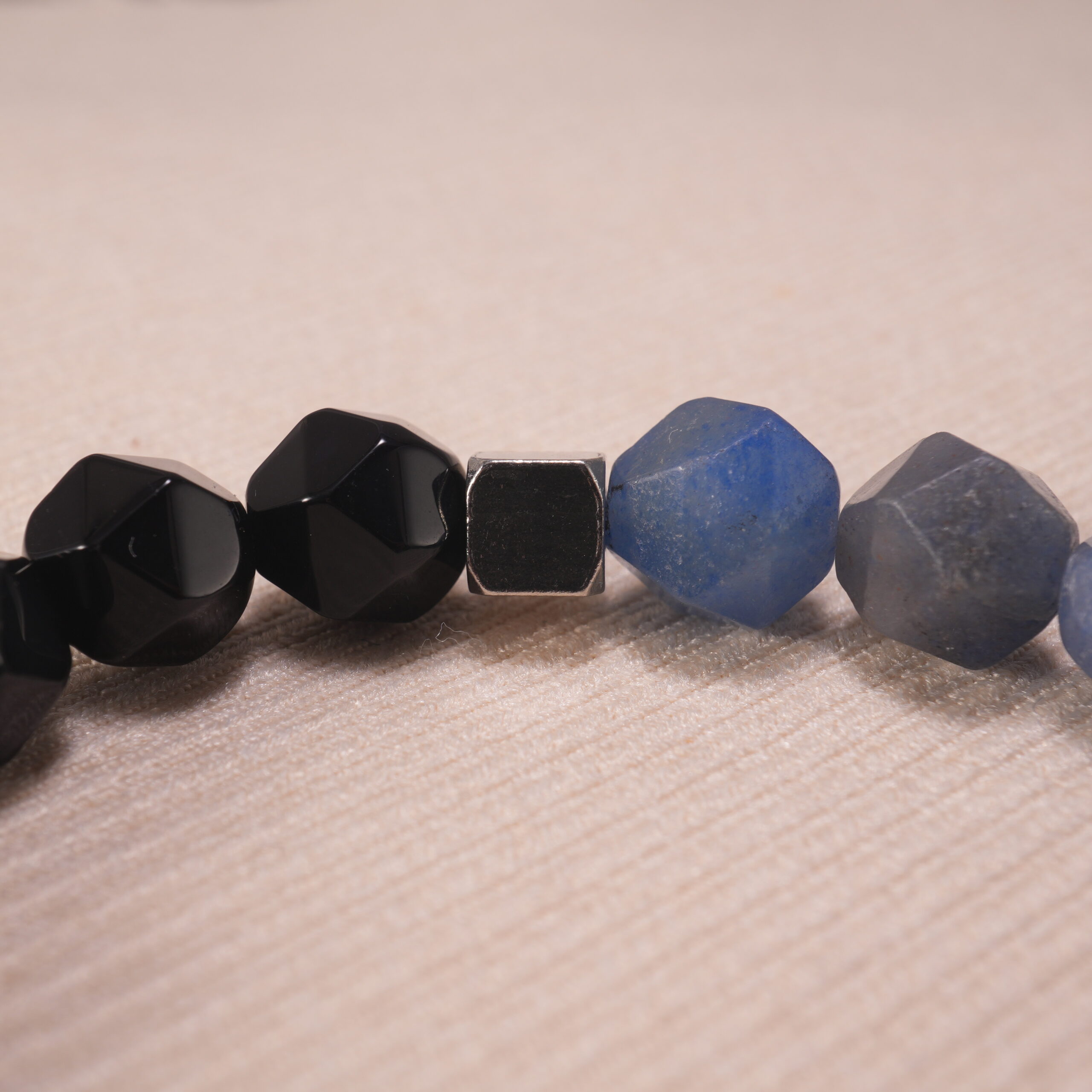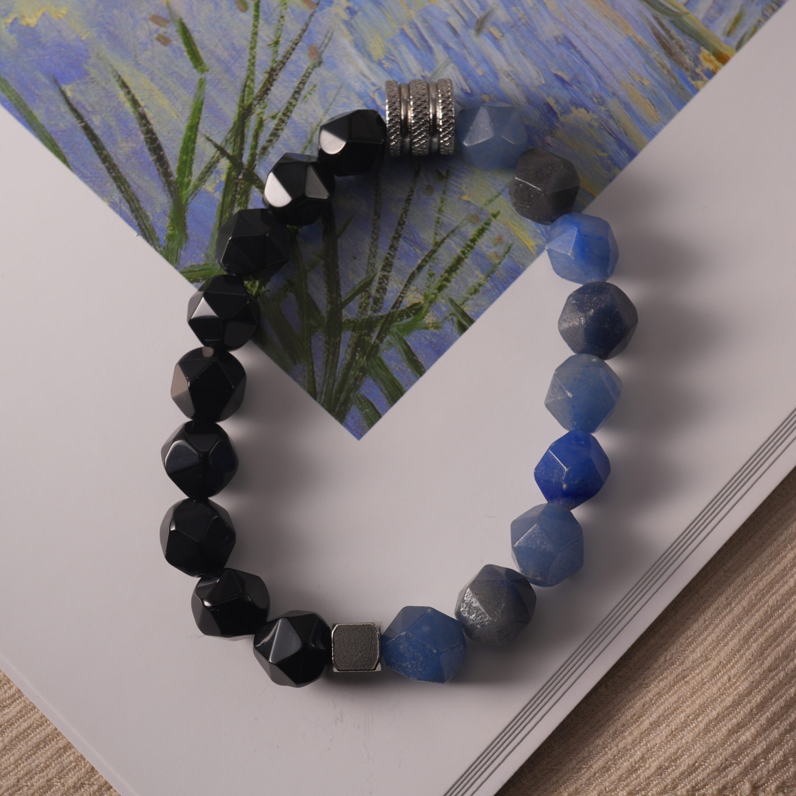 This 8mm Blue Aventurine & Obsidian men’s bracelet blends calming energy with strong protection. Designed in minimalist style and available in S, M, L with a stretch cord, it’s a grounding piece that brings clarity and strength to your daily life.