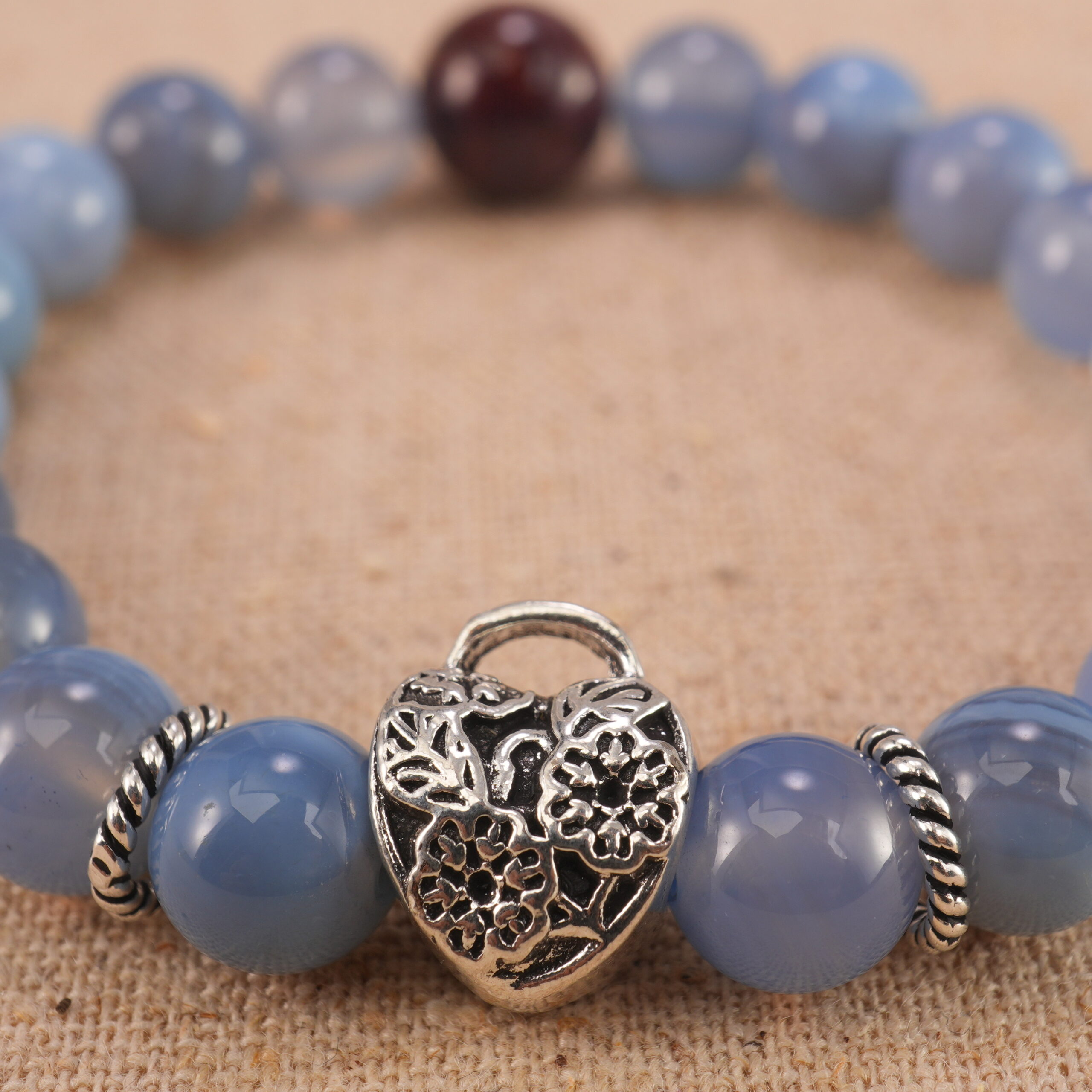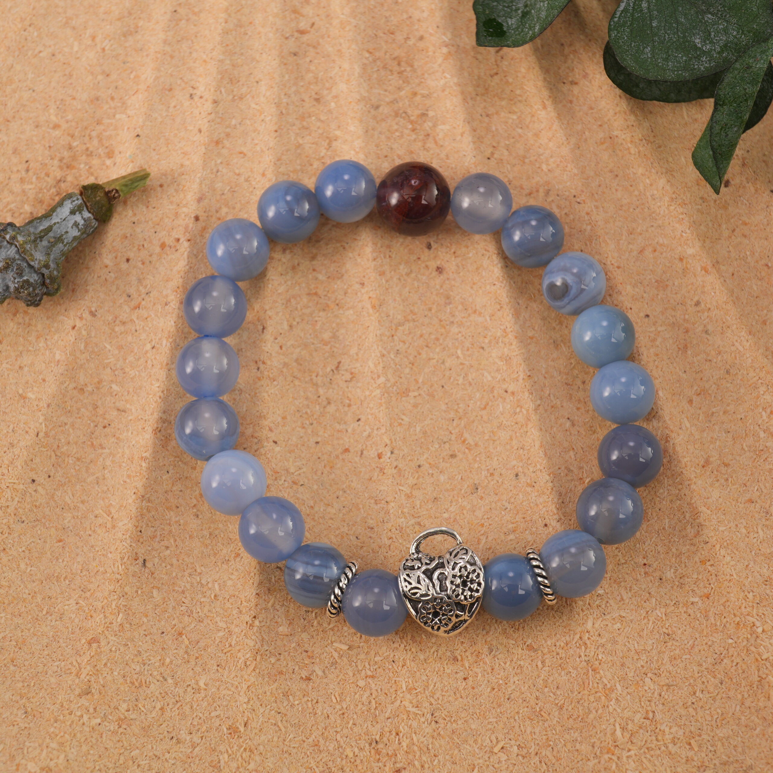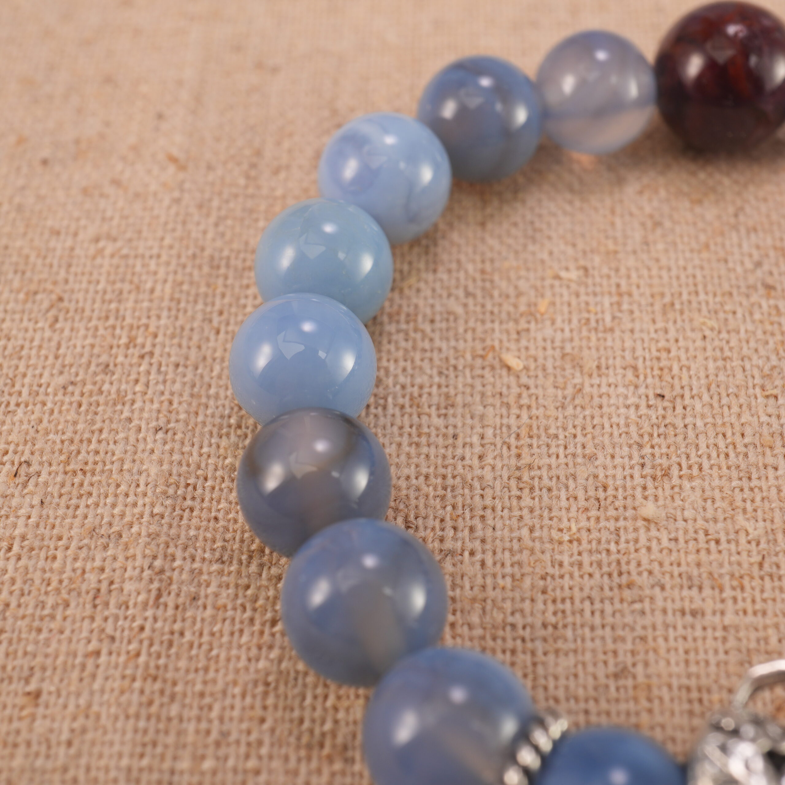 - Genuine blue-banded agate beads that promote clear expression