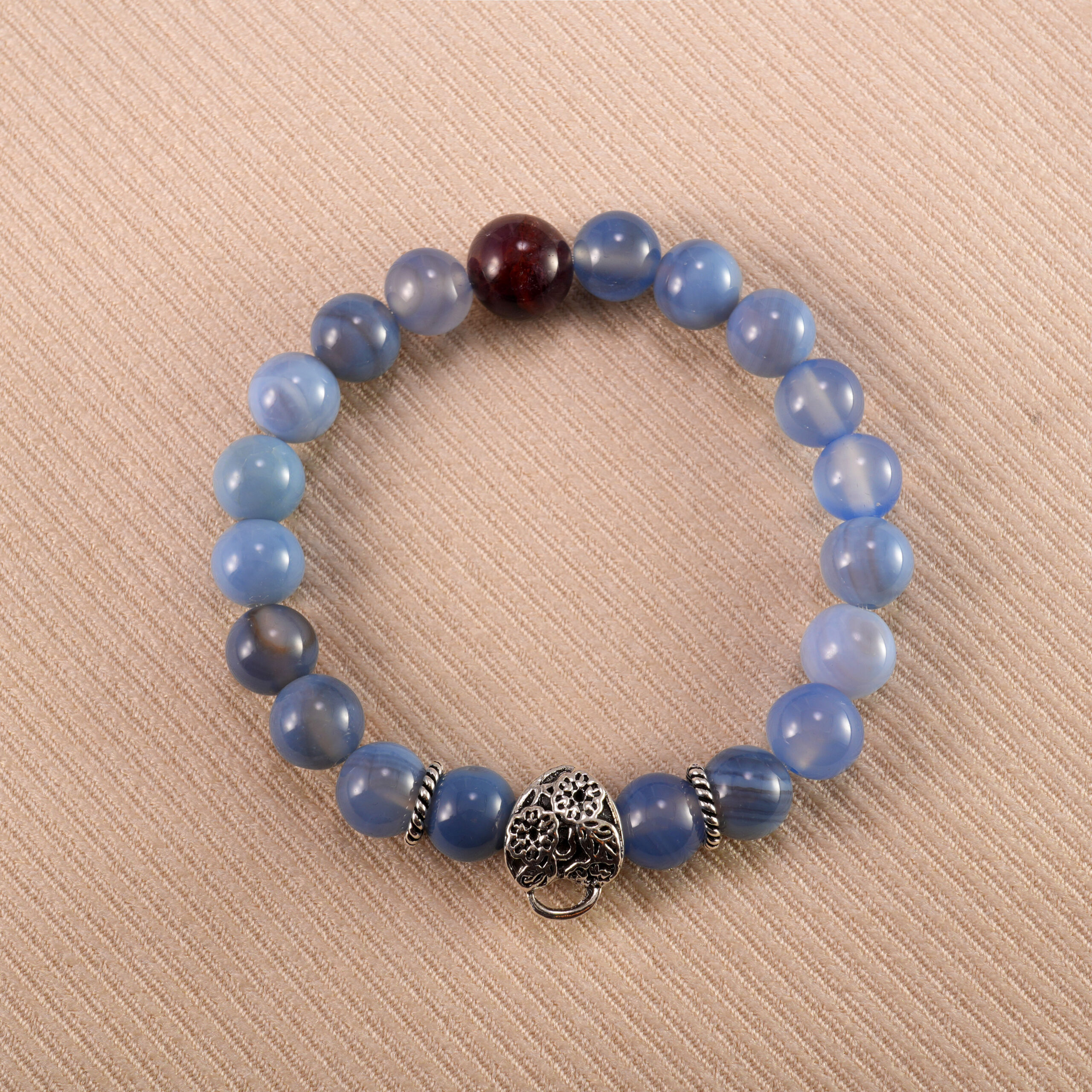 Be the first to review “Blue Flow – Banded Agate Beaded Bracelet with Silver Accents” Cancel reply