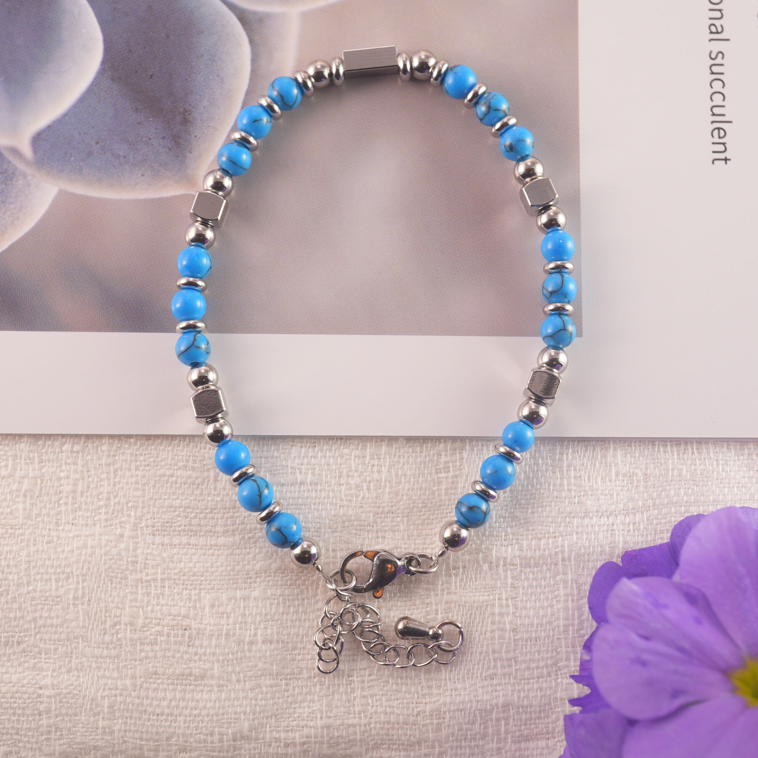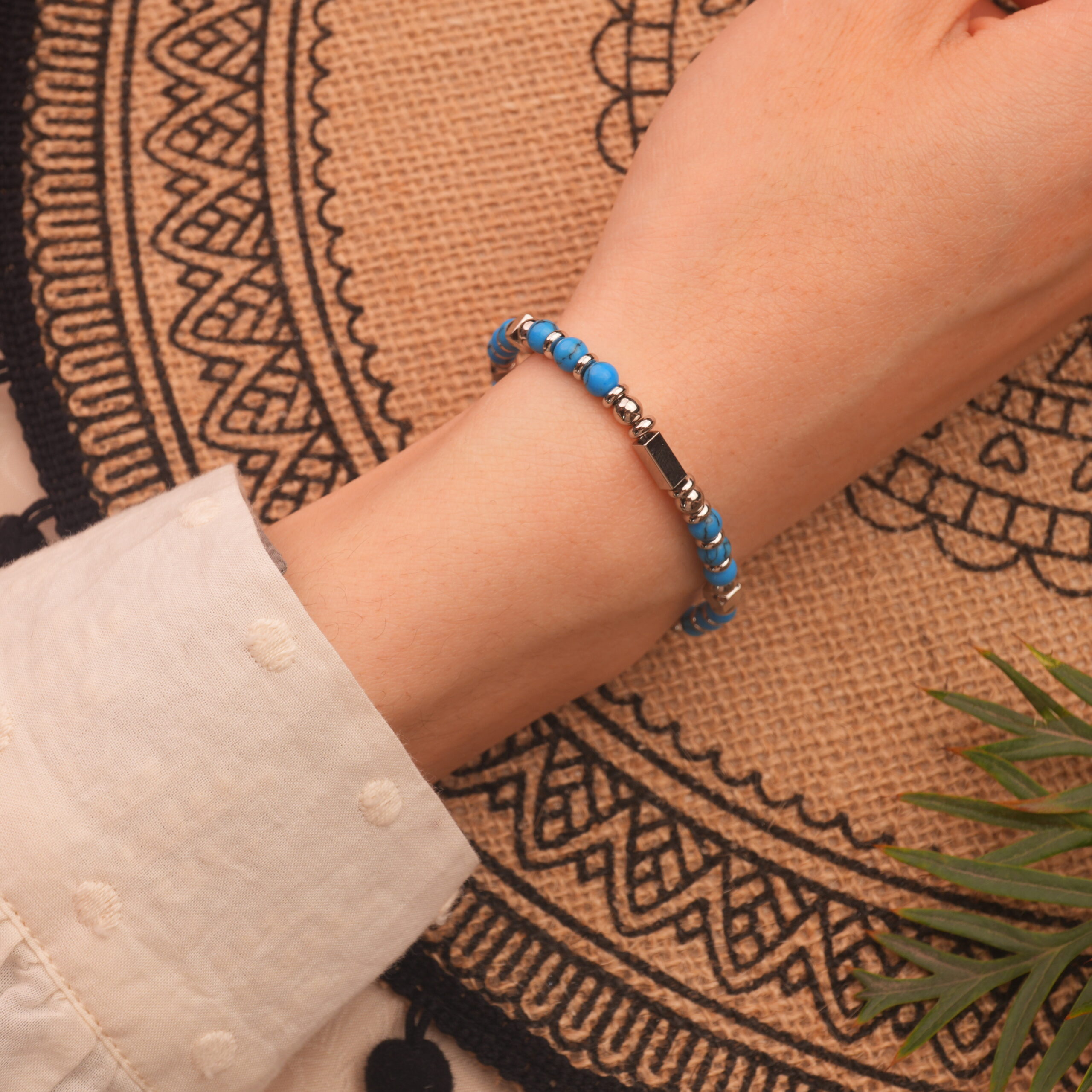 • Clean the bracelet with a soft cloth to preserve the shine of the turquoise stones.