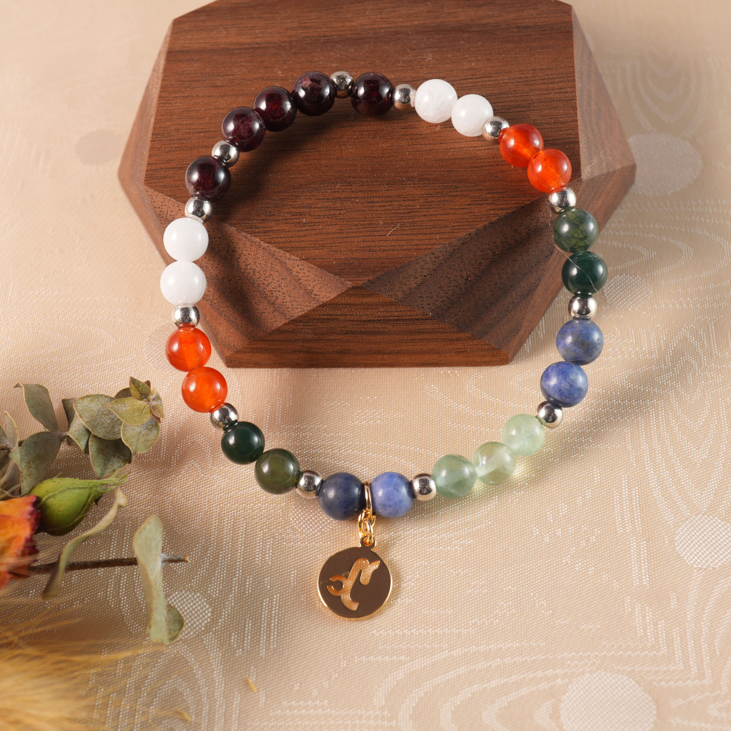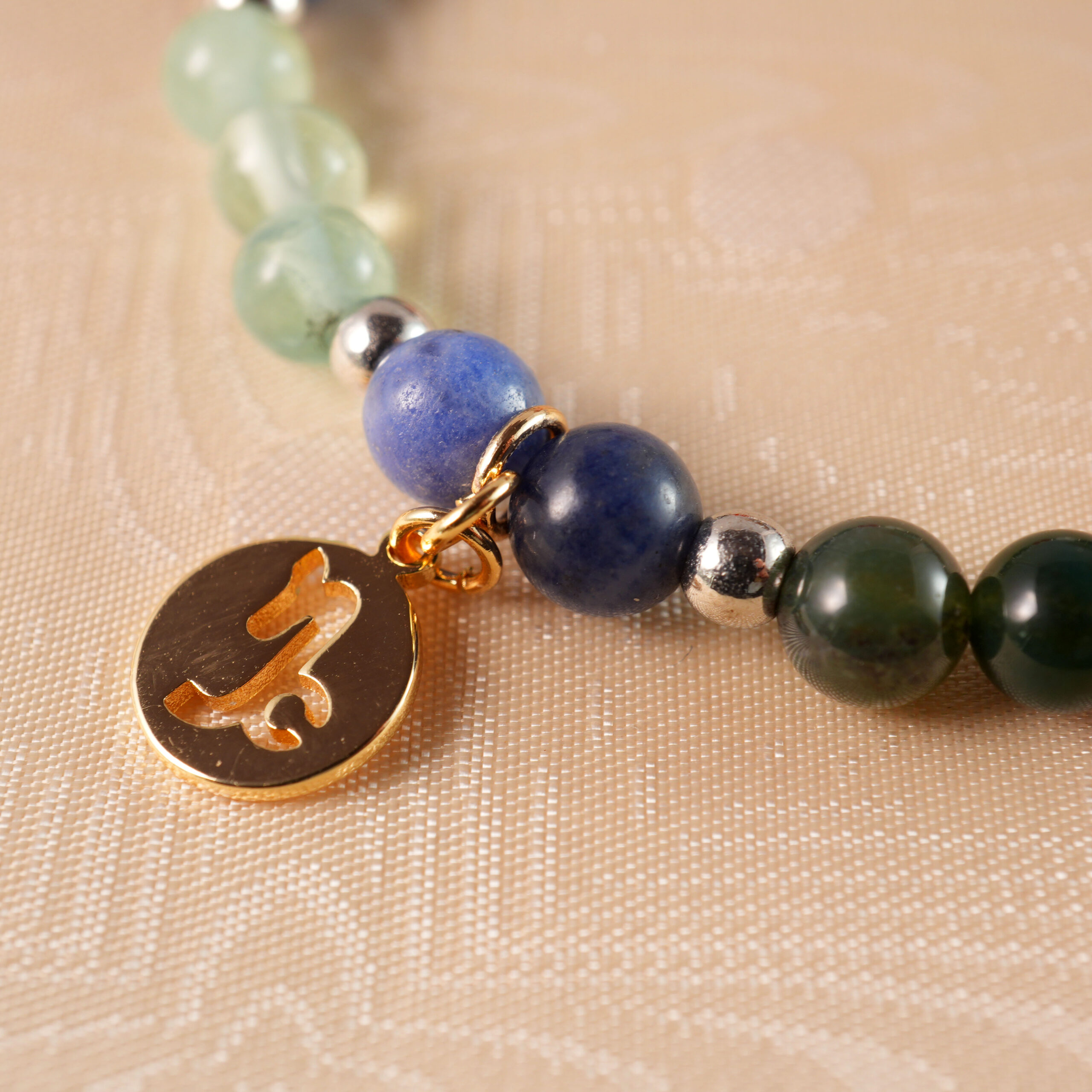 This Capricorn bracelet features blue lace agate, prehnite, red agate, and white chalcedony. It’s designed to support resilience, emotional balance, and goal-focused energy—perfect for Capricorns who value structure, stability, and spiritual growth.