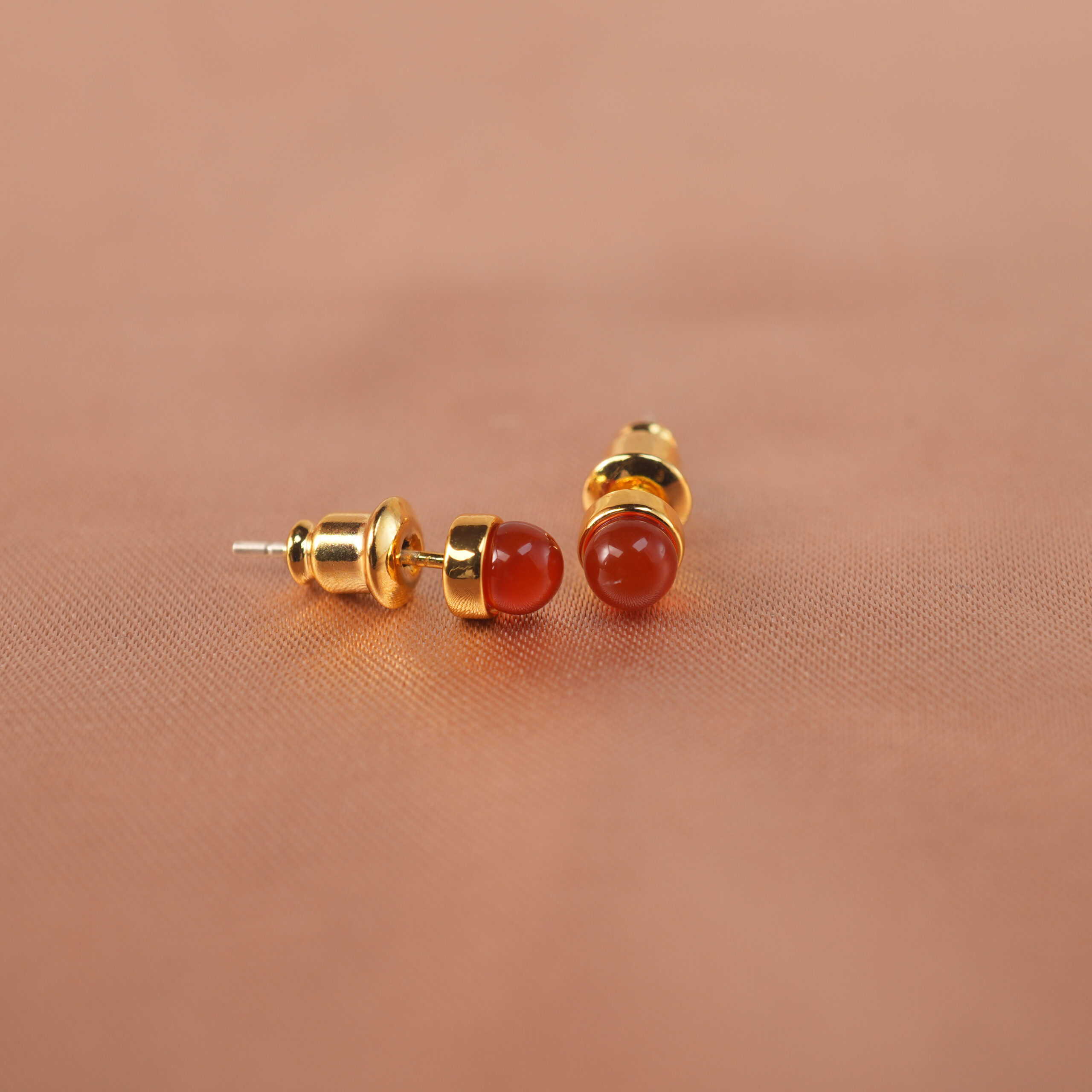 Add a spark of vitality to your look with these 18K gold plated carnelian stud earrings. Hand-set with radiant carnelian stones—also known as red agate—these studs blend simplicity with energetic benefits. Bold yet minimalist, they energize your day with confidence and passion.