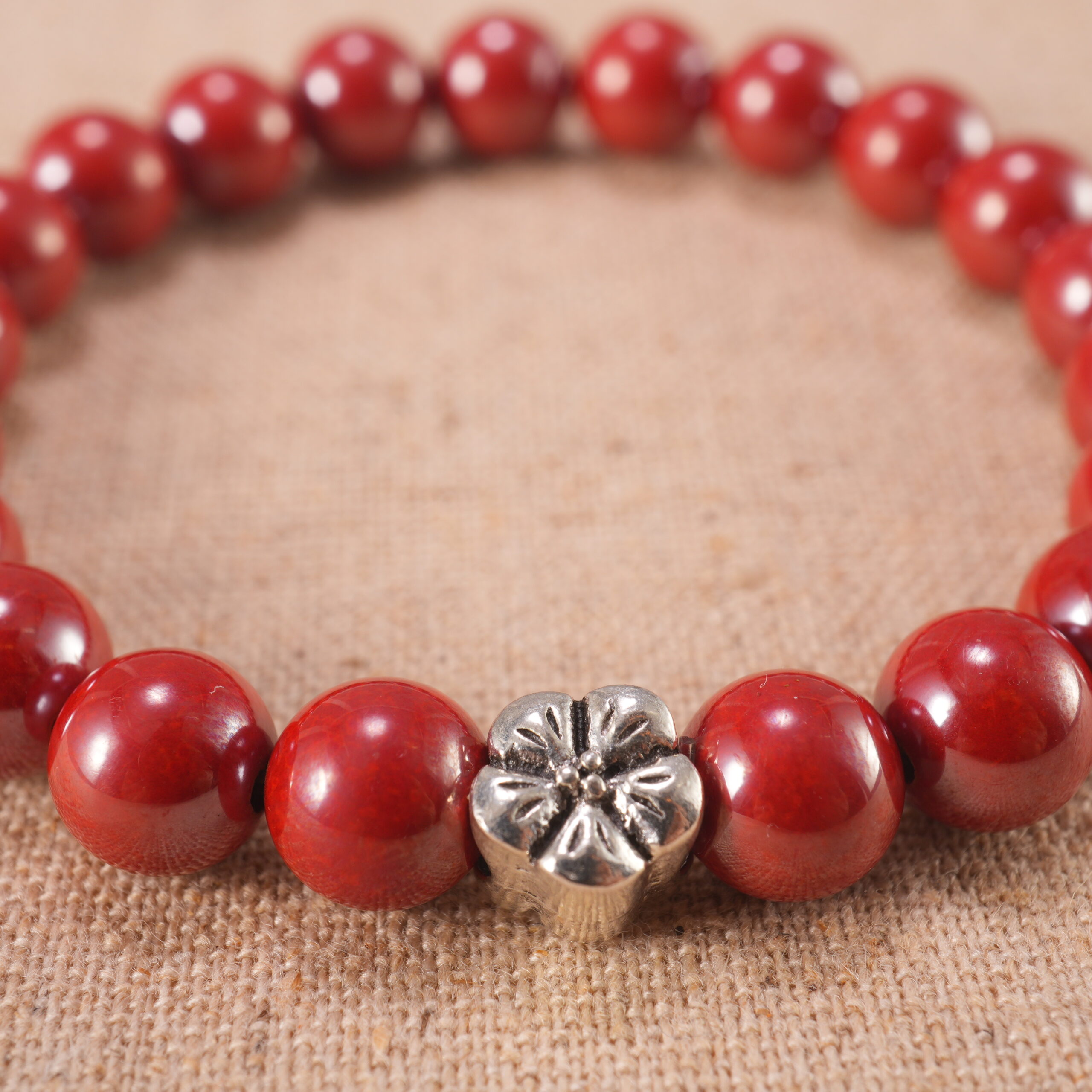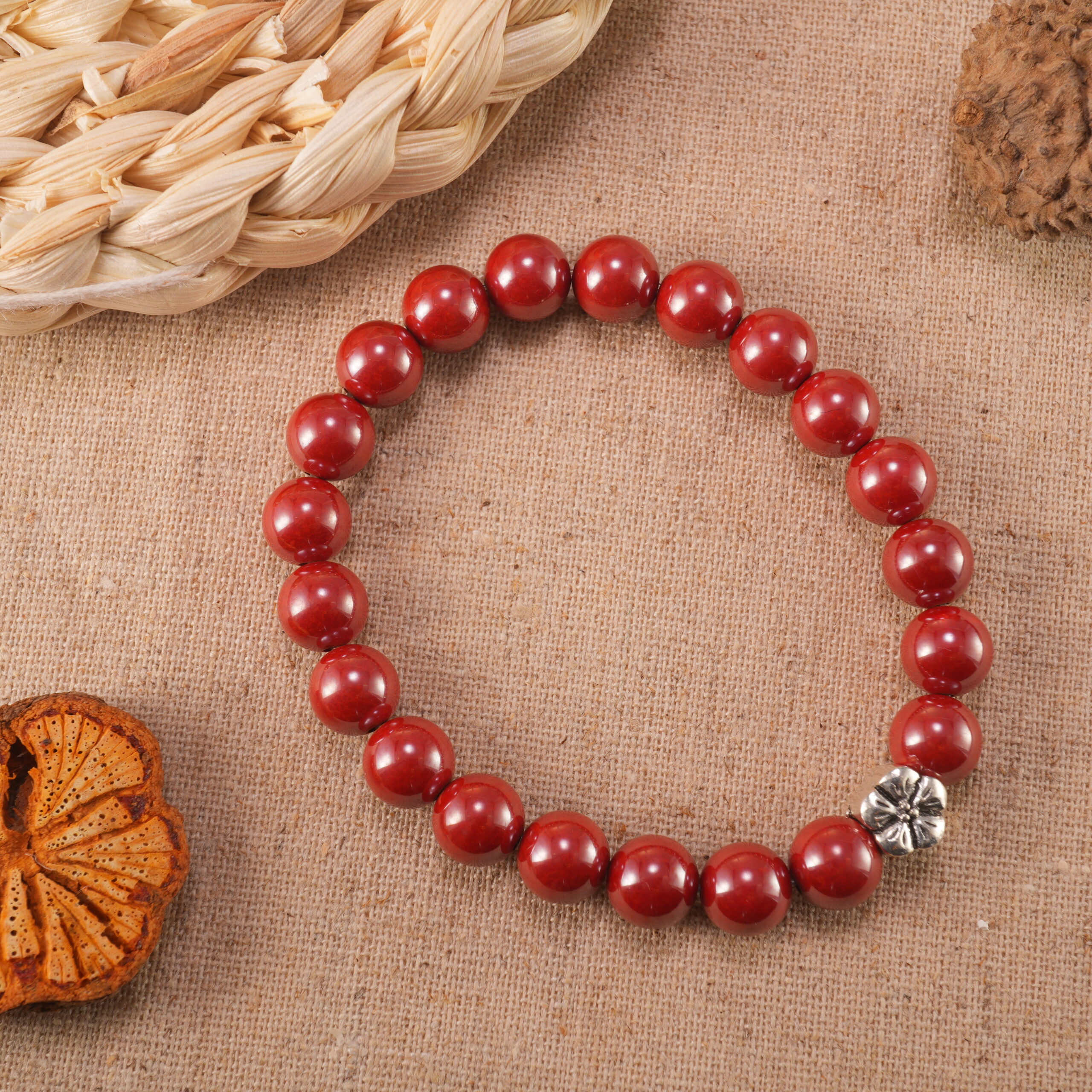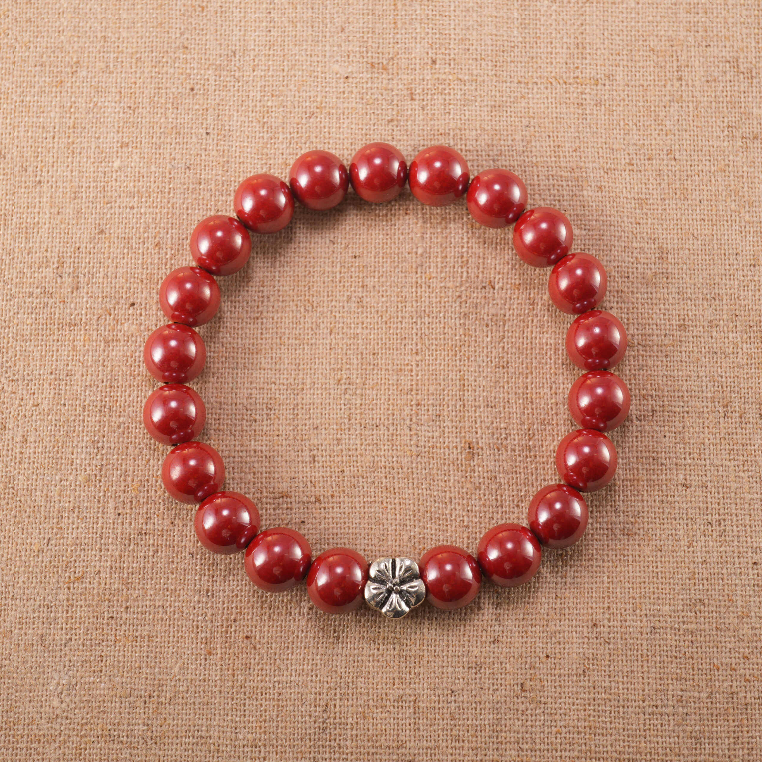 Wealth & Elegance – Handmade Cinnabar Flower Bead Bracelet