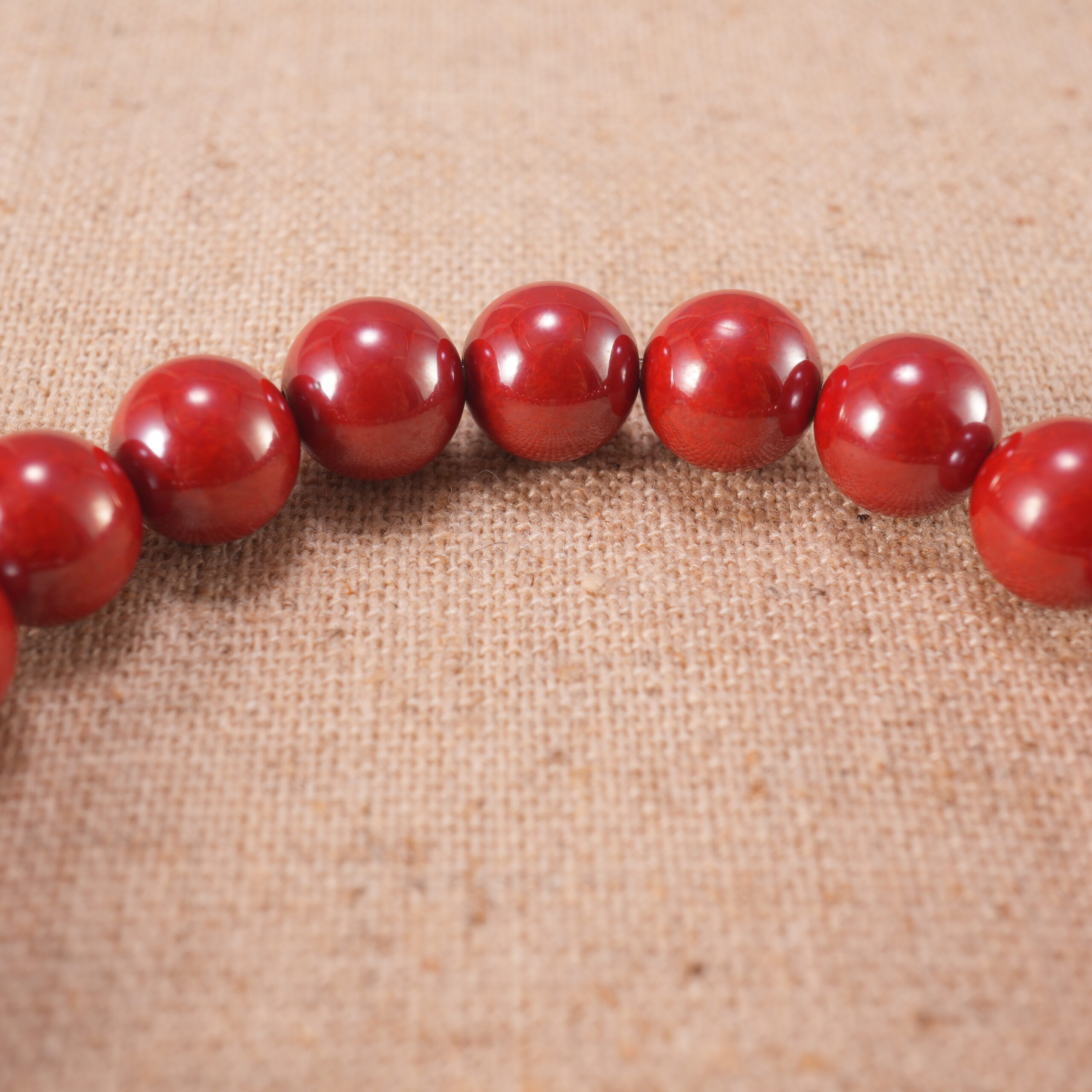 • Hand-strung 8mm cinnabar beads in rich imperial red