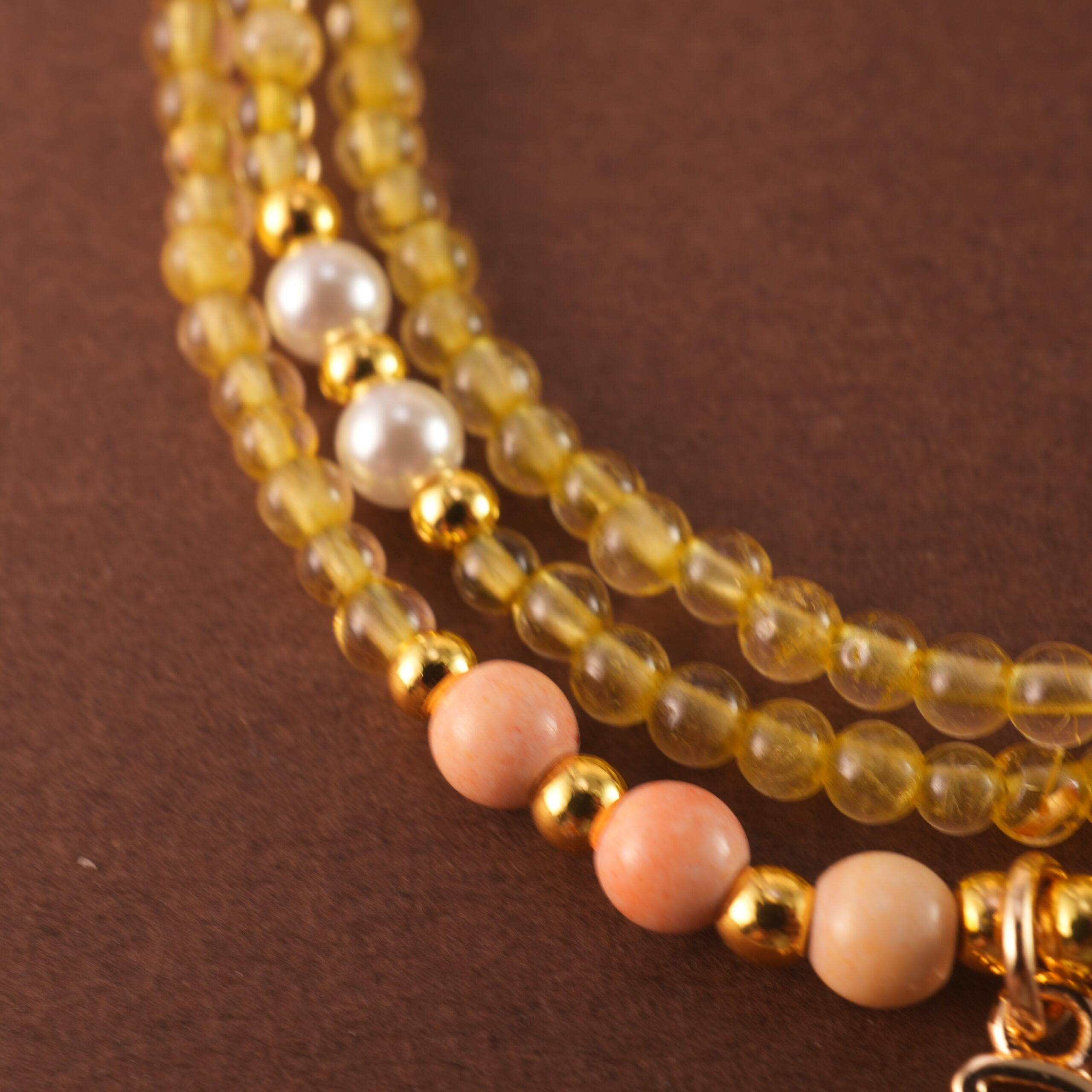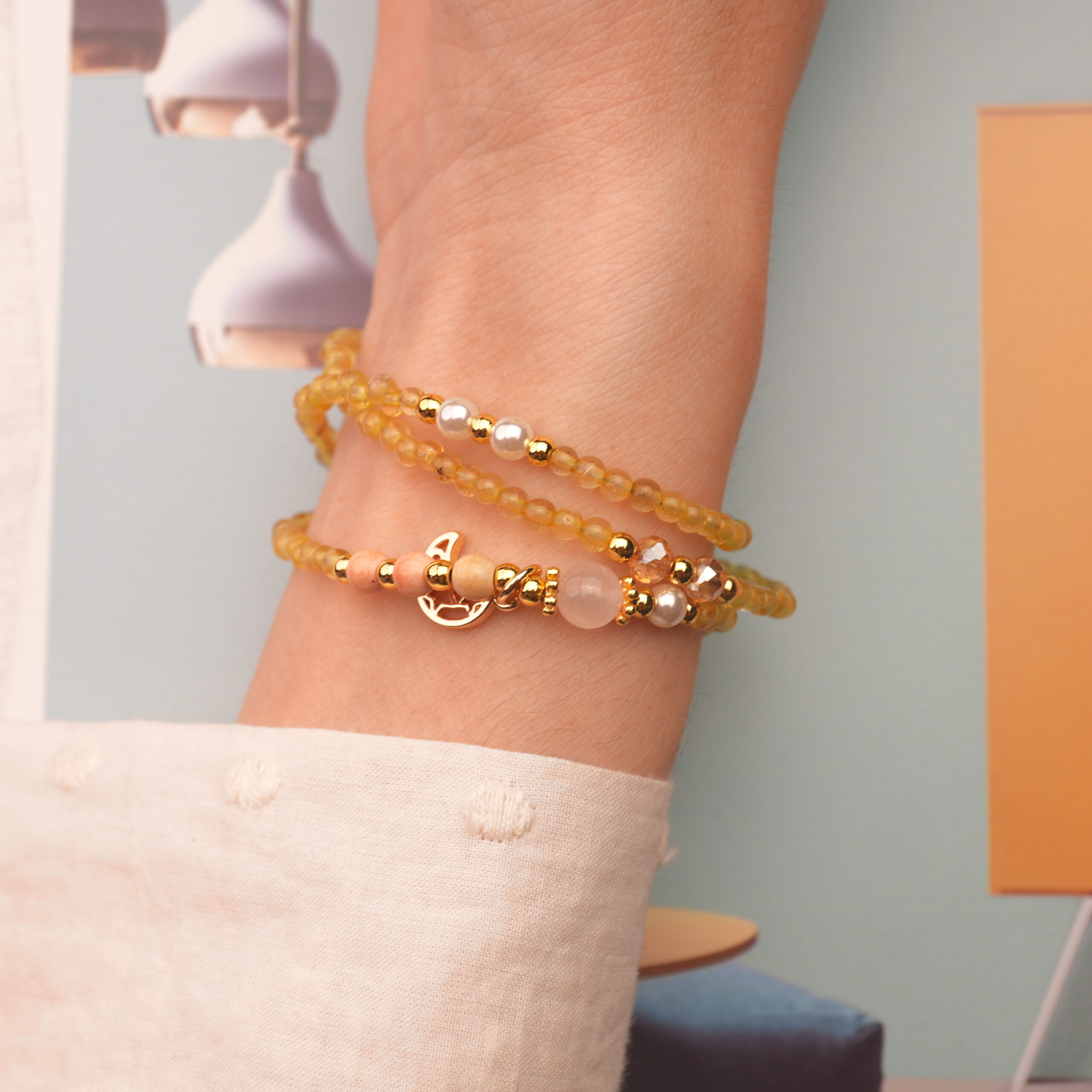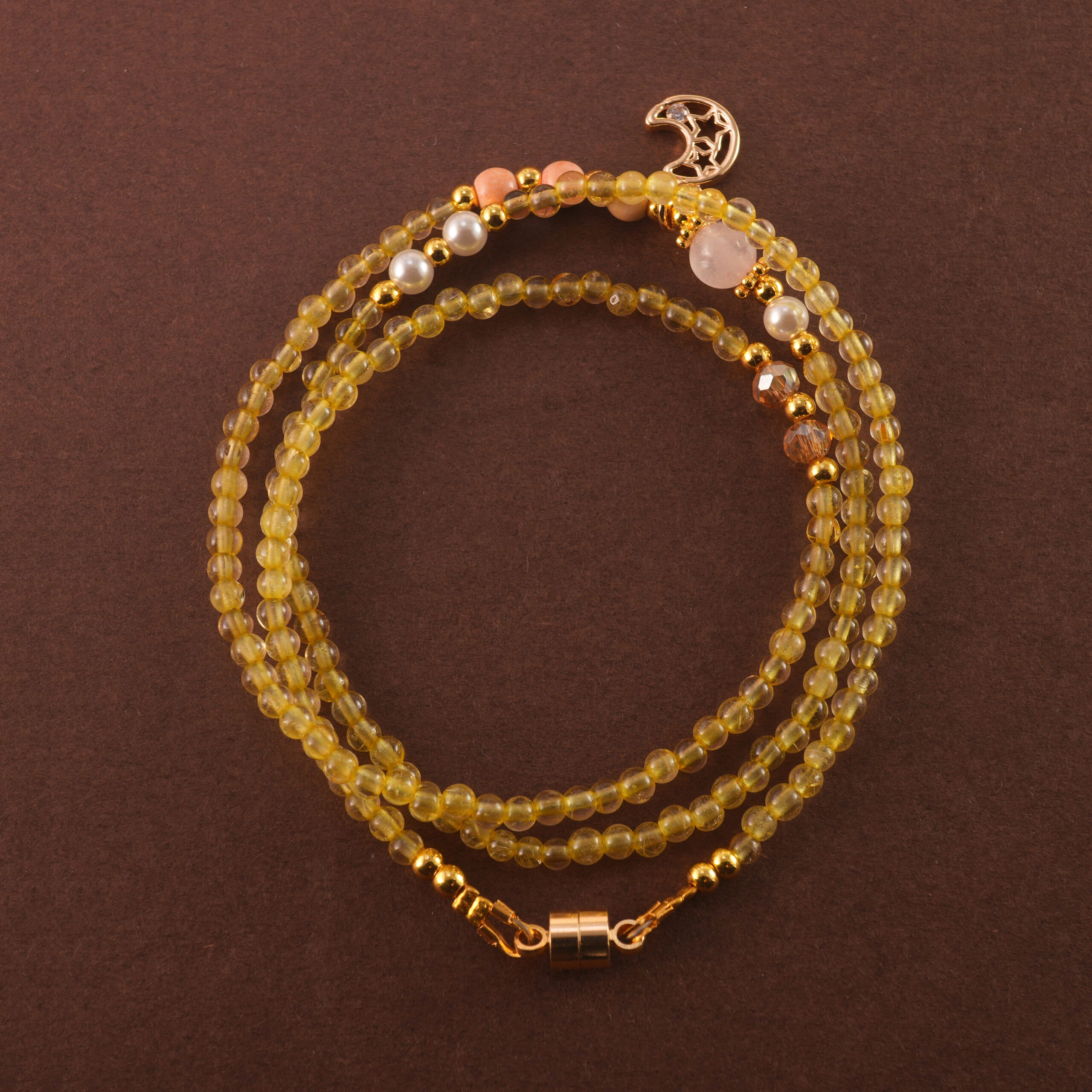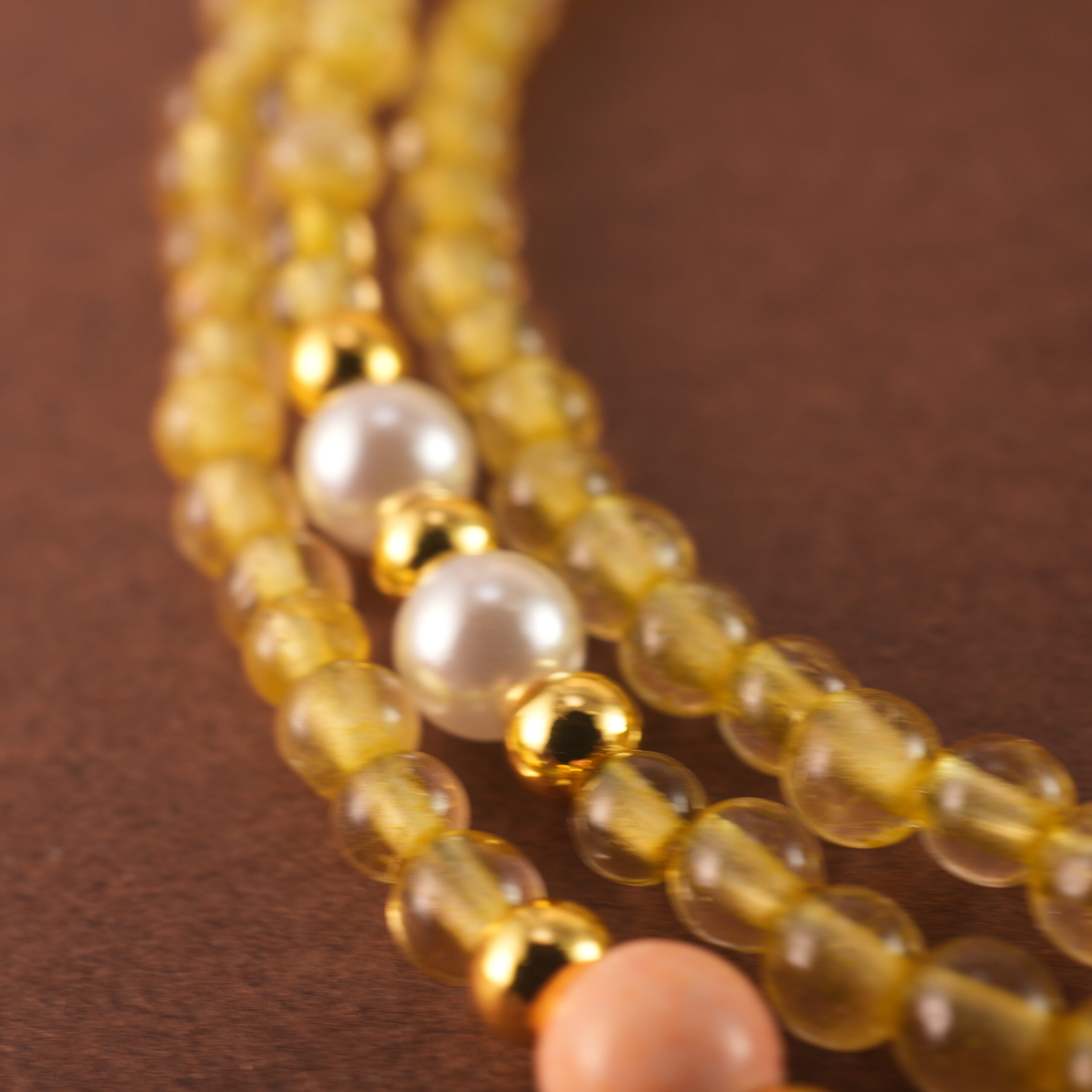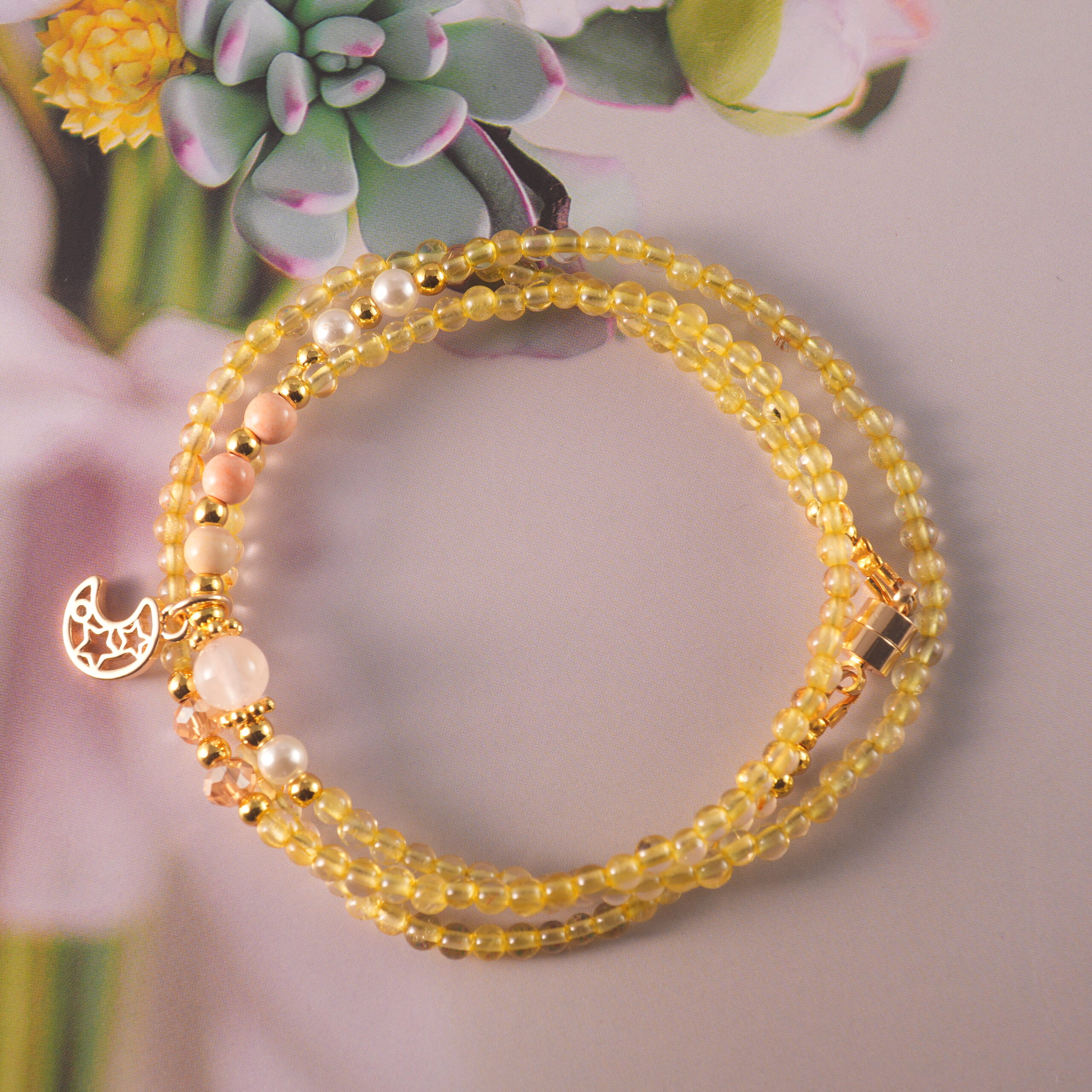 A bright and uplifting wrap bracelet crafted from golden citrine and white chalcedony—wear it around your wrist or as a necklace to attract wealth, joy, and energetic clarity.