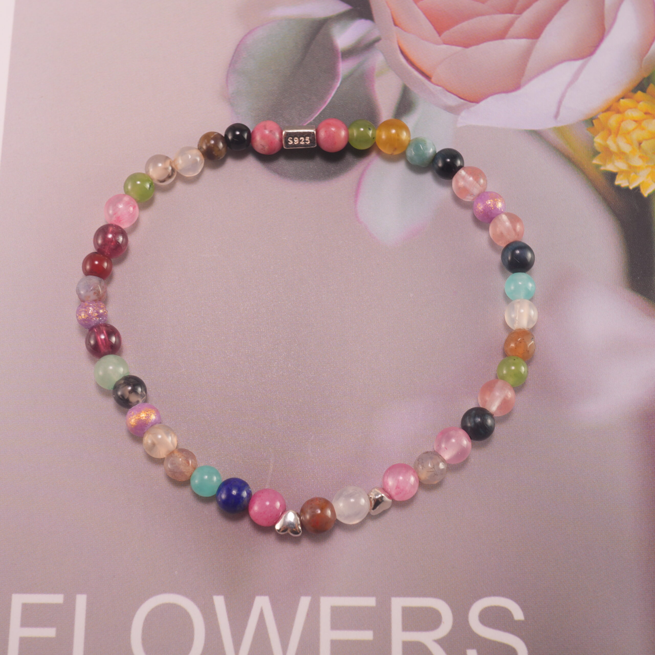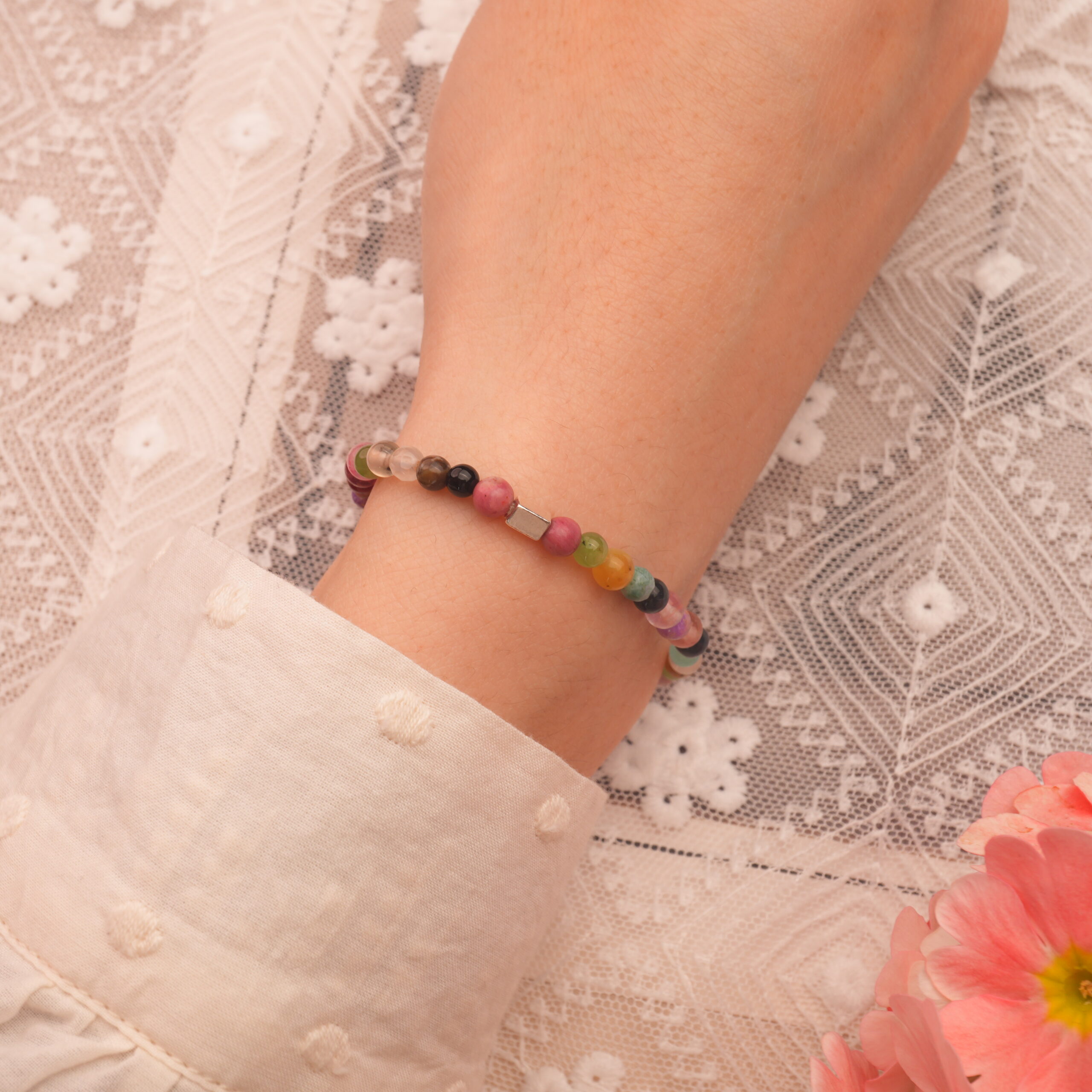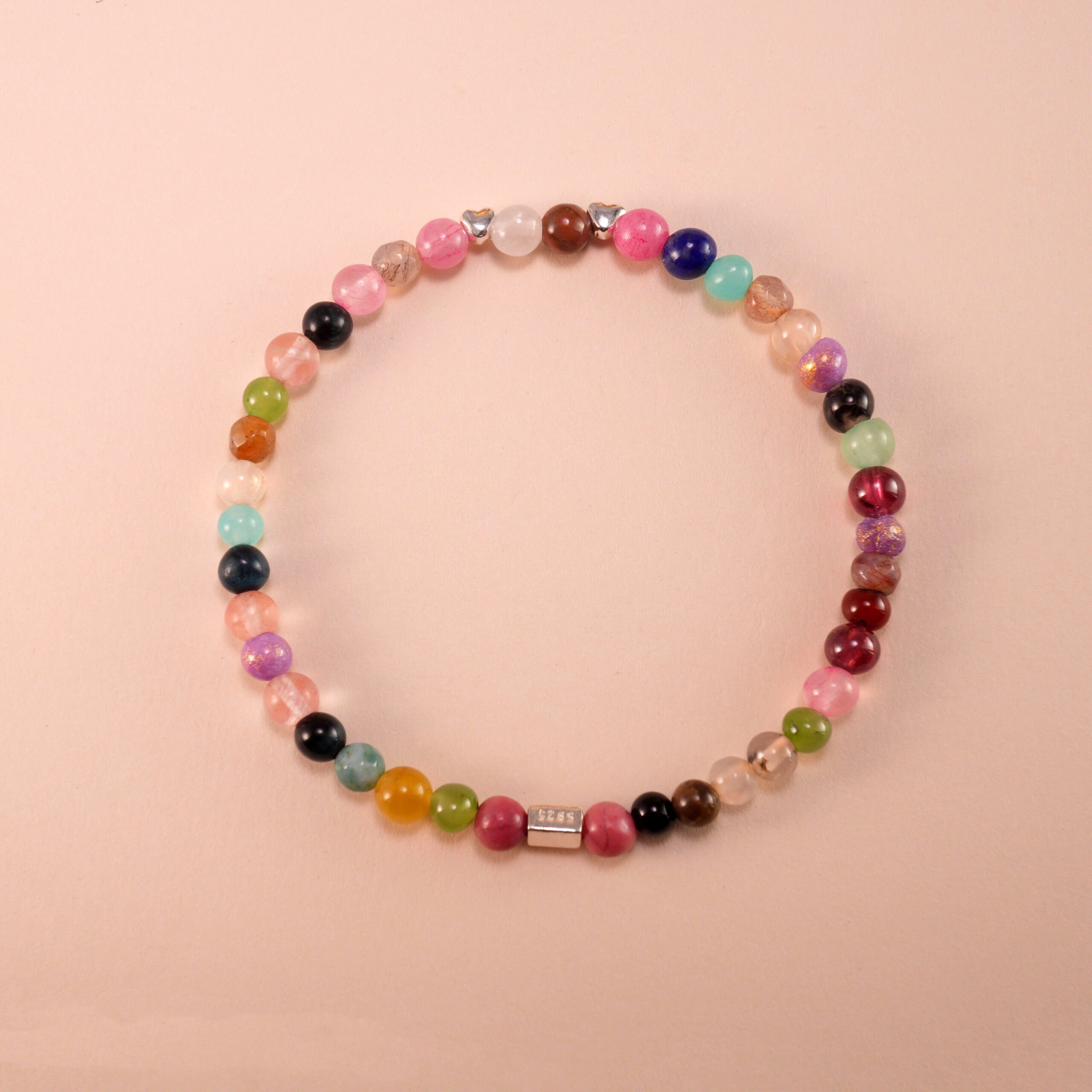 This vibrant multi gemstone bracelet features a colorful blend of Garnet, Amethyst, Obsidian, and other natural crystals. Each stone offers unique energy—protection, passion, and clarity—making it a powerful and stylish accessory for everyday wear.