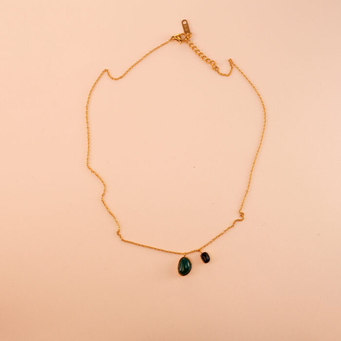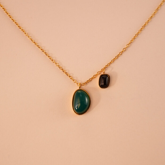 Be the first to review “Good Fortune Double Pendant – Green & Black Agate Necklace”