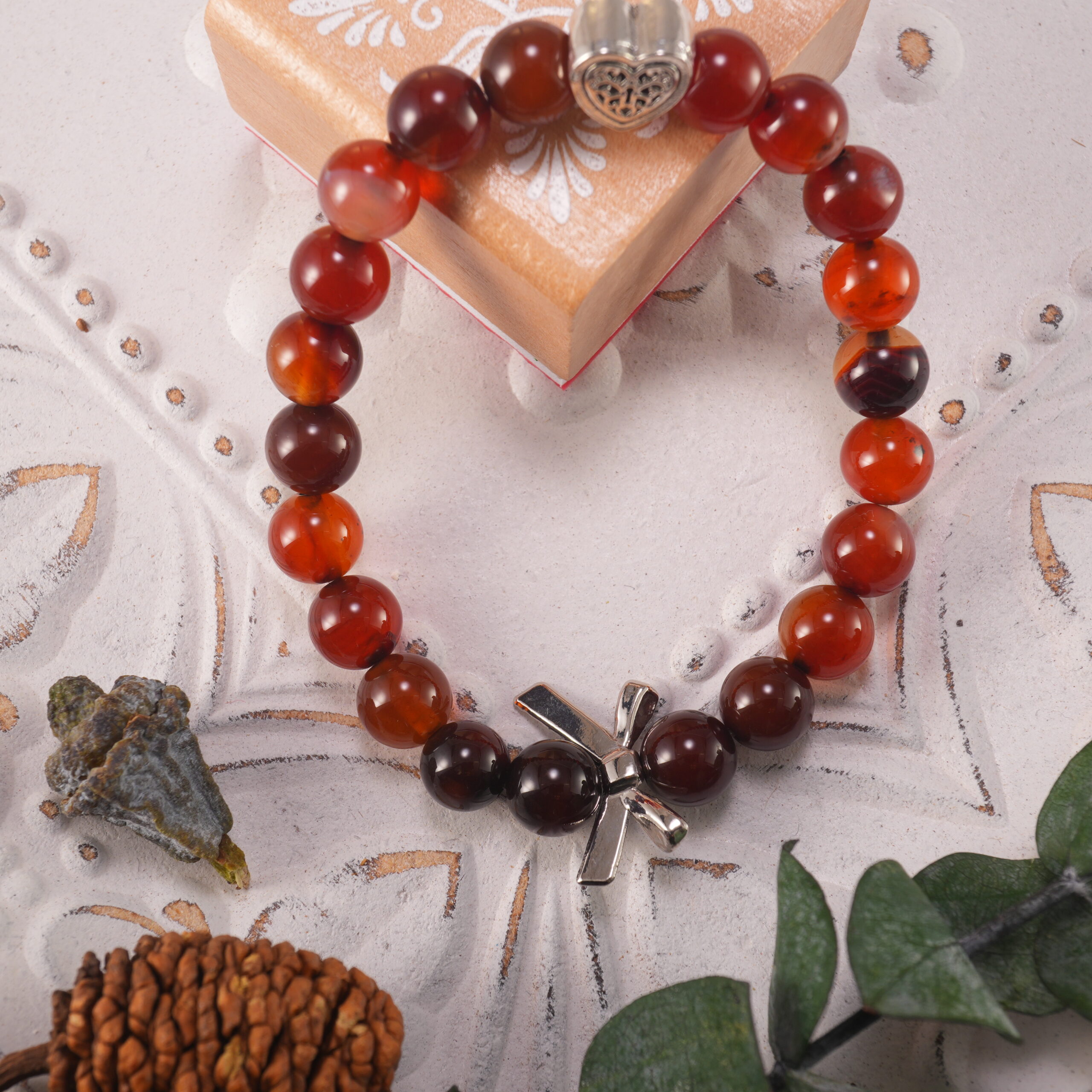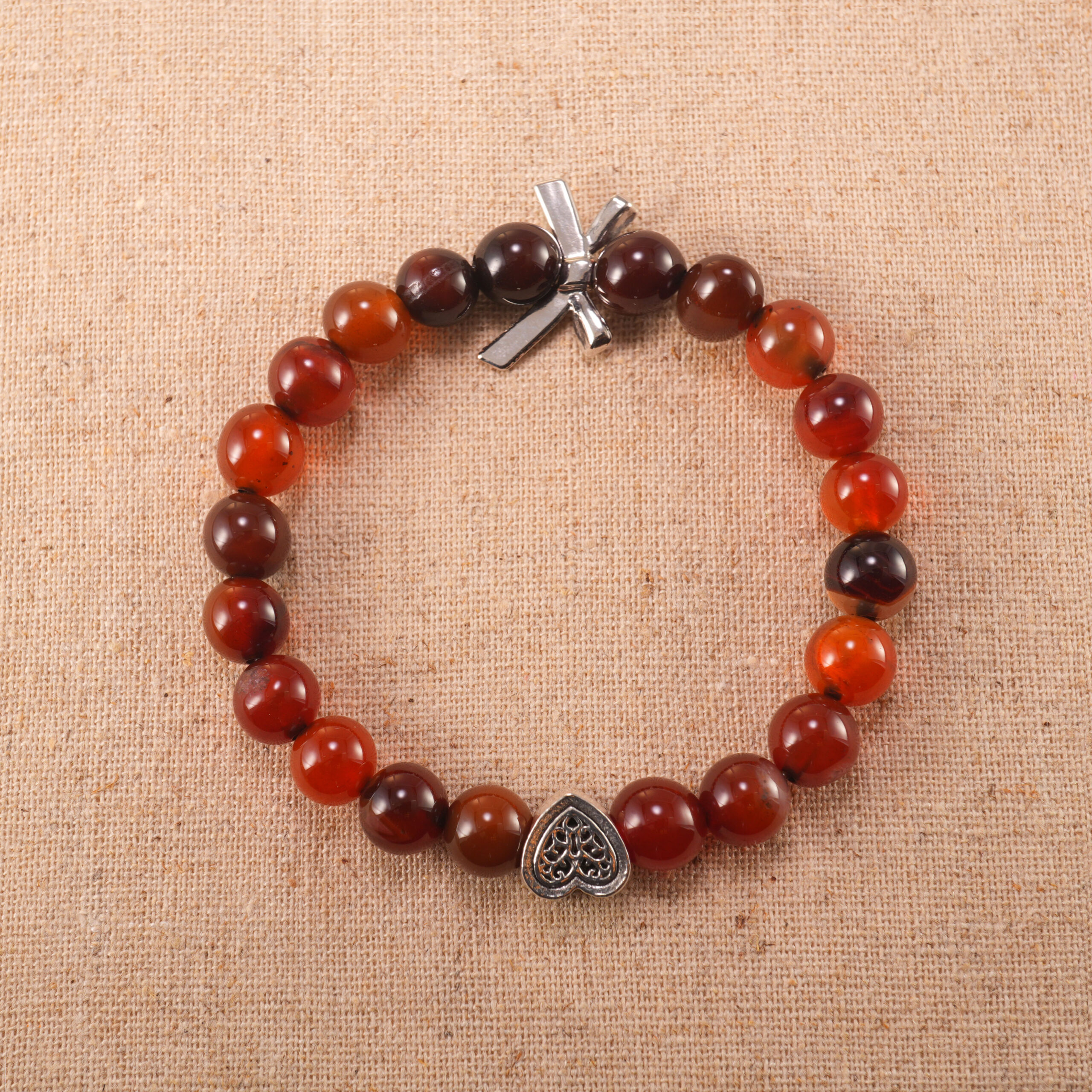 A handcrafted 8mm red agate bracelet with a heart-shaped charm—infusing energy, emotional balance, and elegant charm into your everyday look.