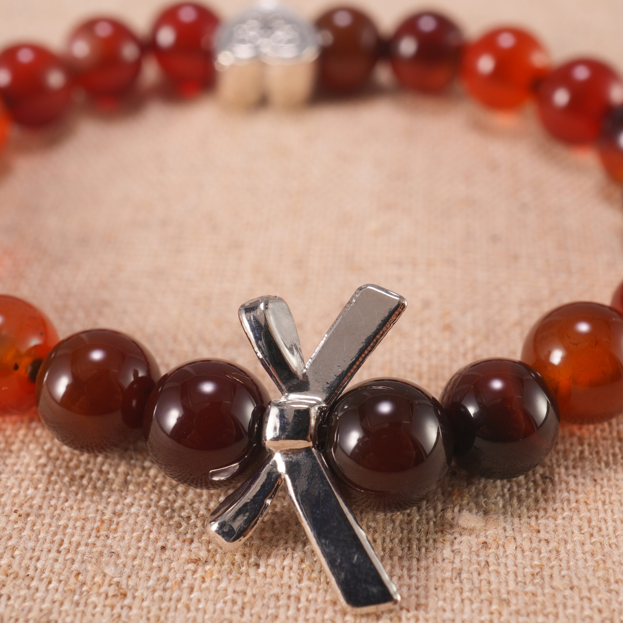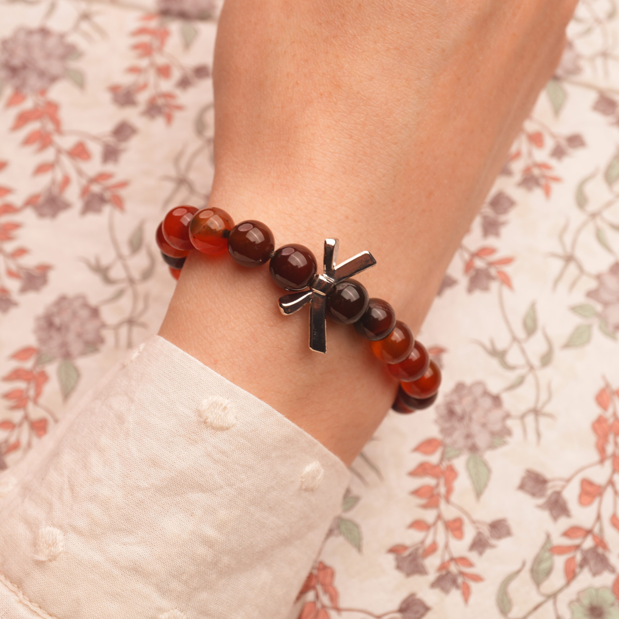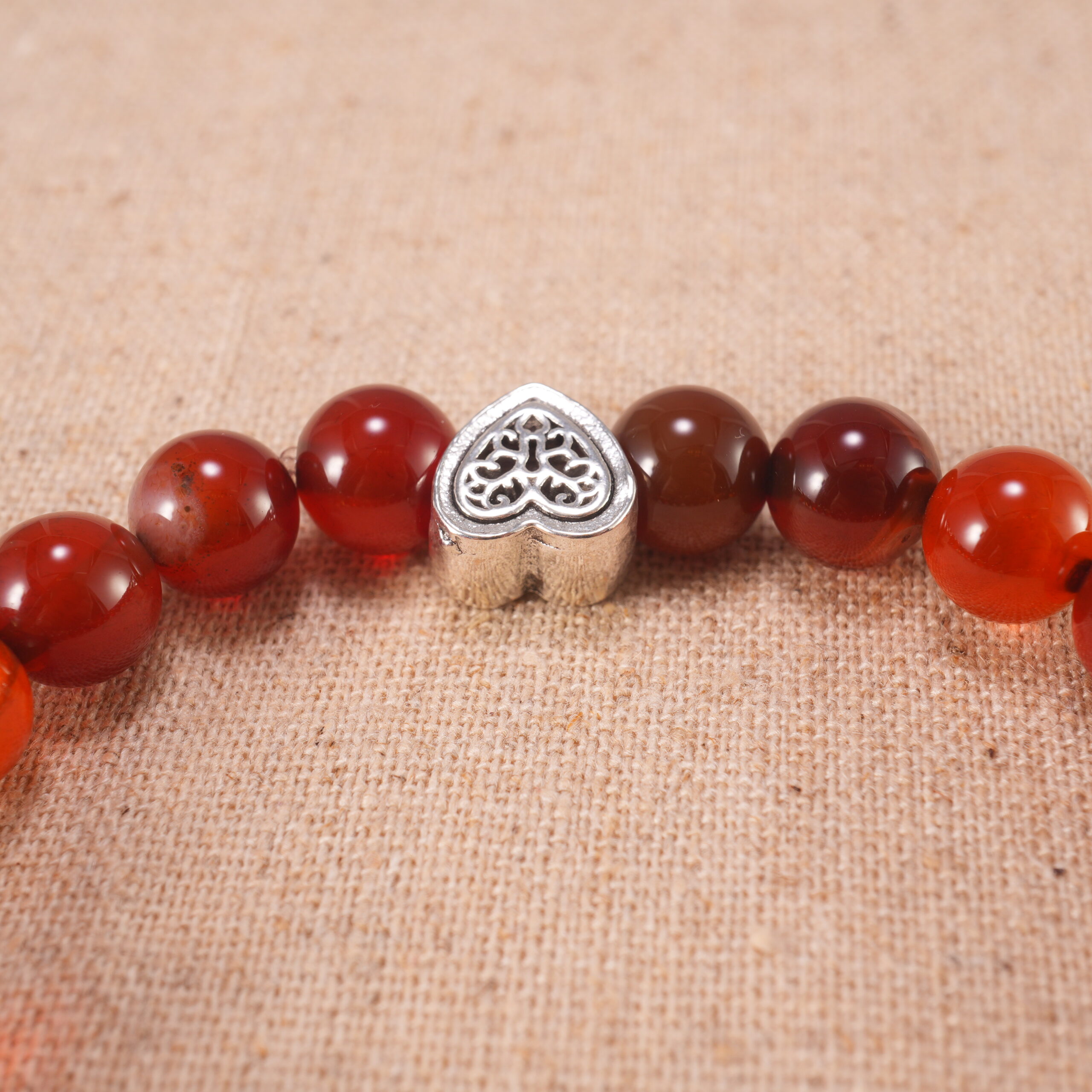 Boost Your Vitality – Floral Red Agate 8mm Heart Bracelet