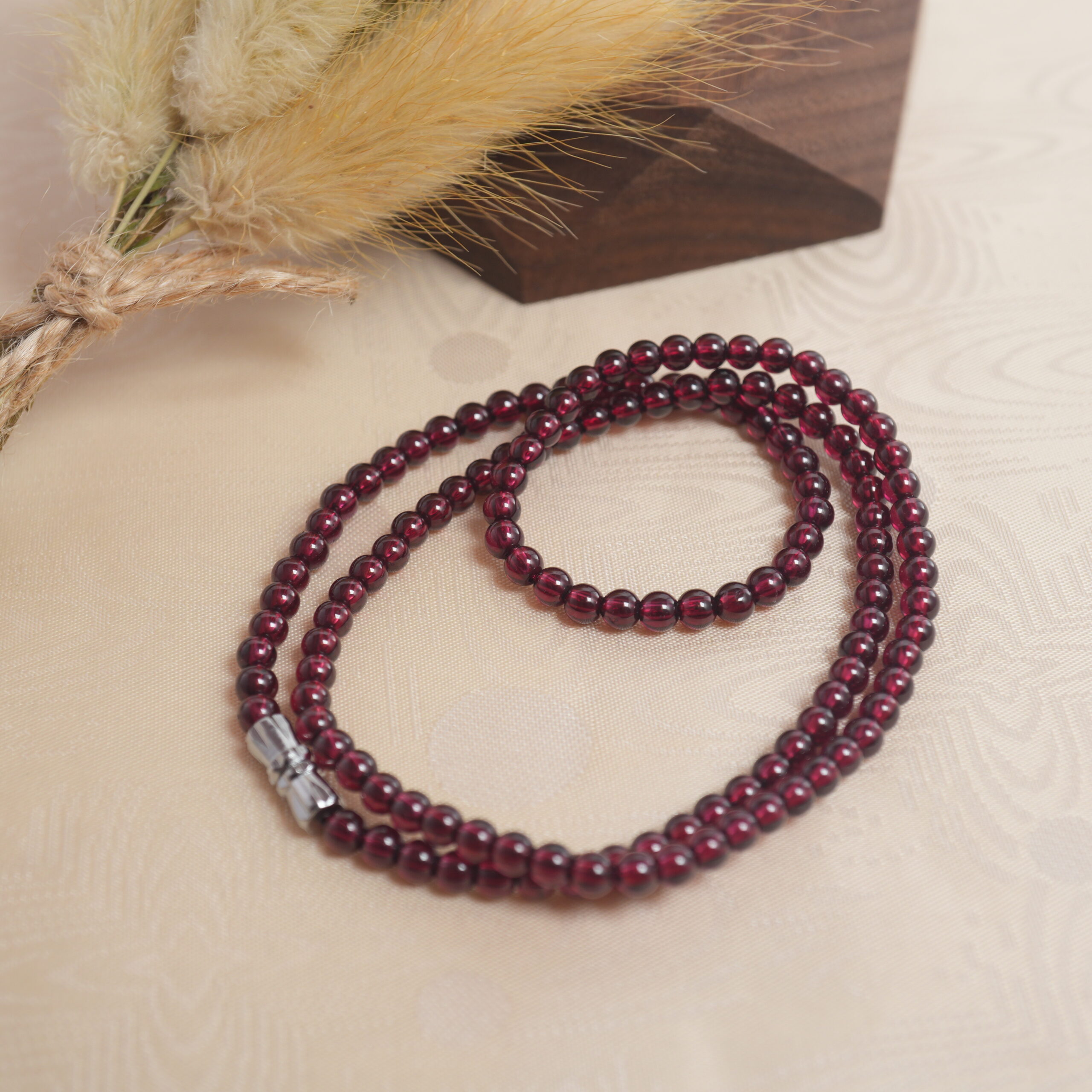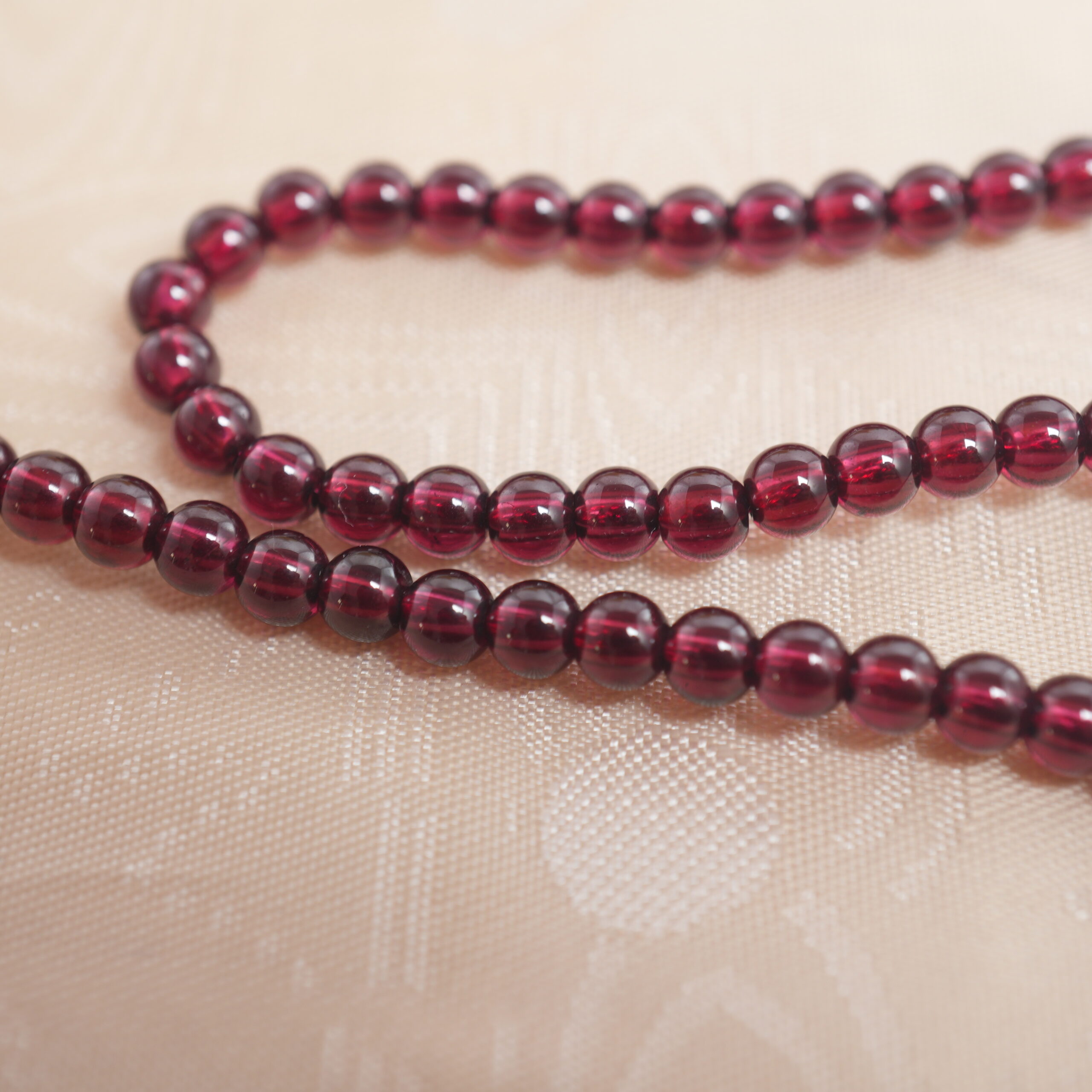 - Genuine garnet round beads strung on a durable cord