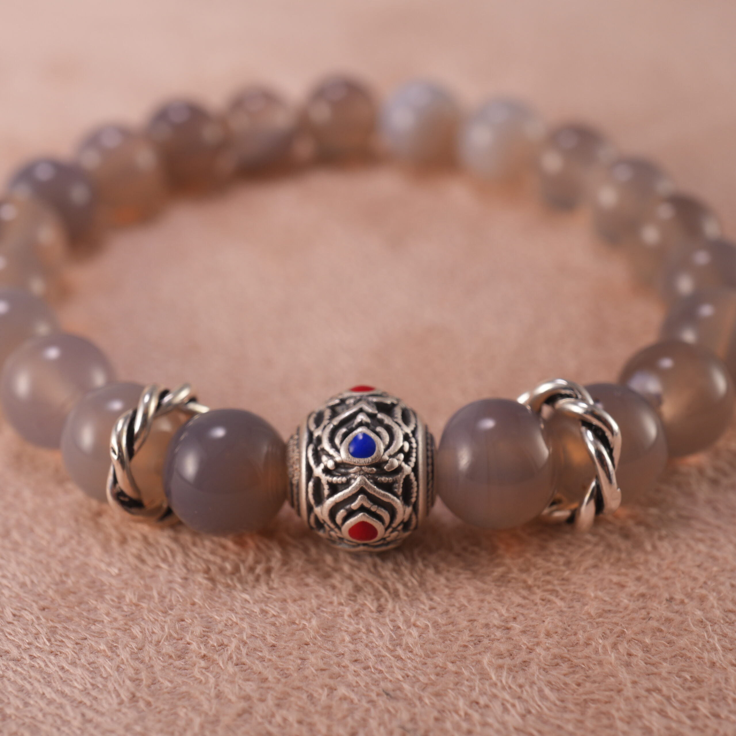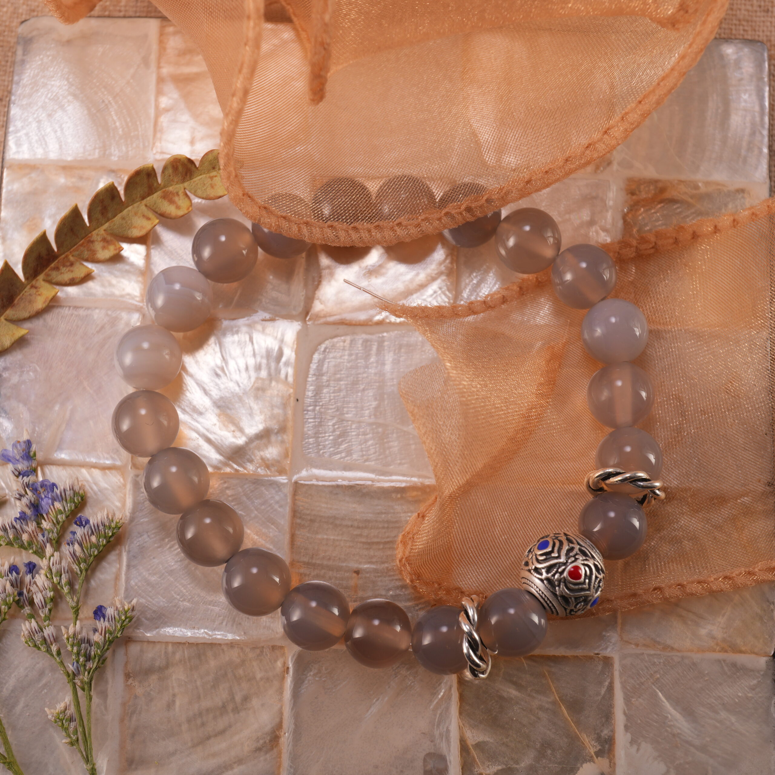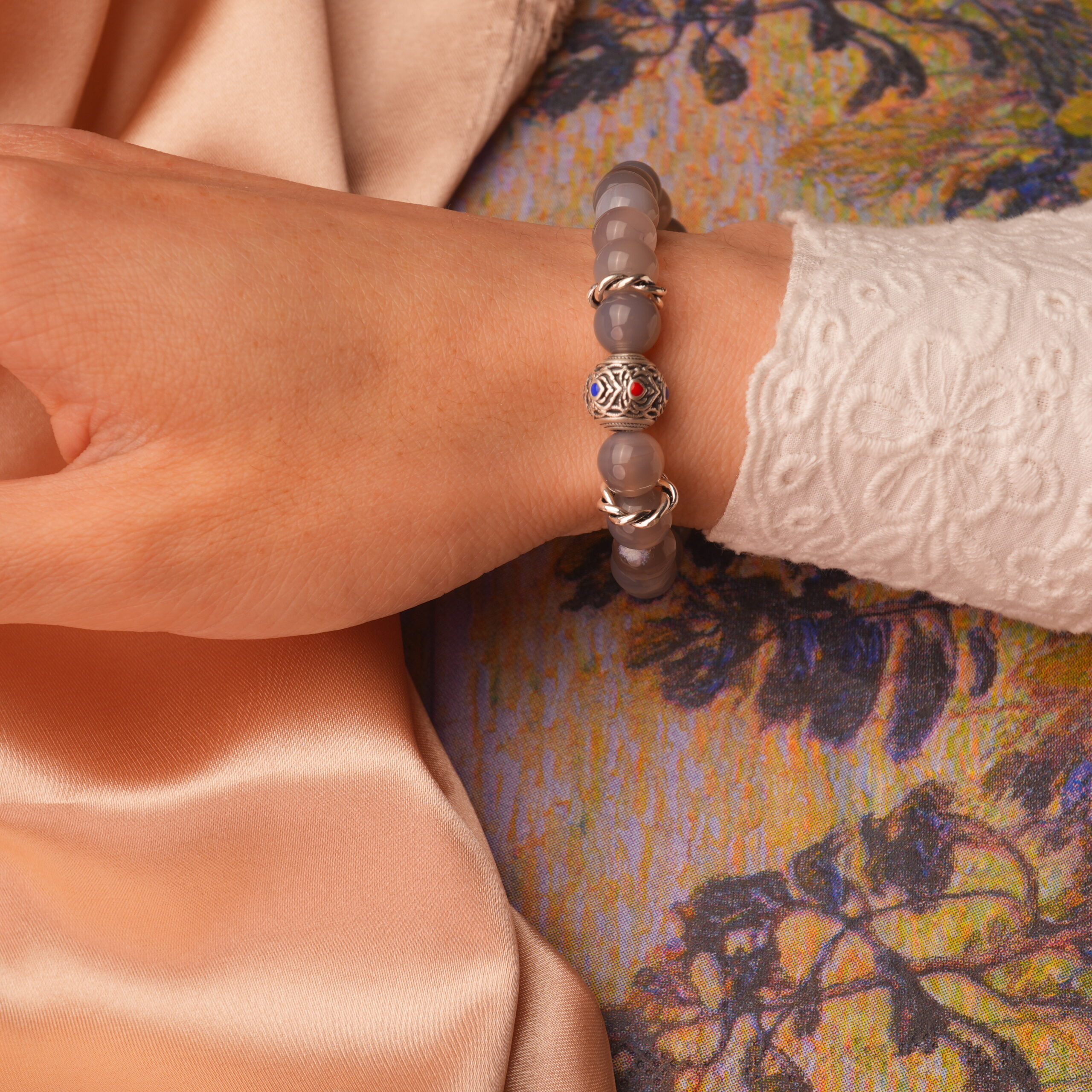 This handmade 8mm gray agate gemstone bracelet promotes calm, clarity, and emotional balance. A minimalist piece of agate jewelry designed to support inner peace and mindfulness in everyday life.