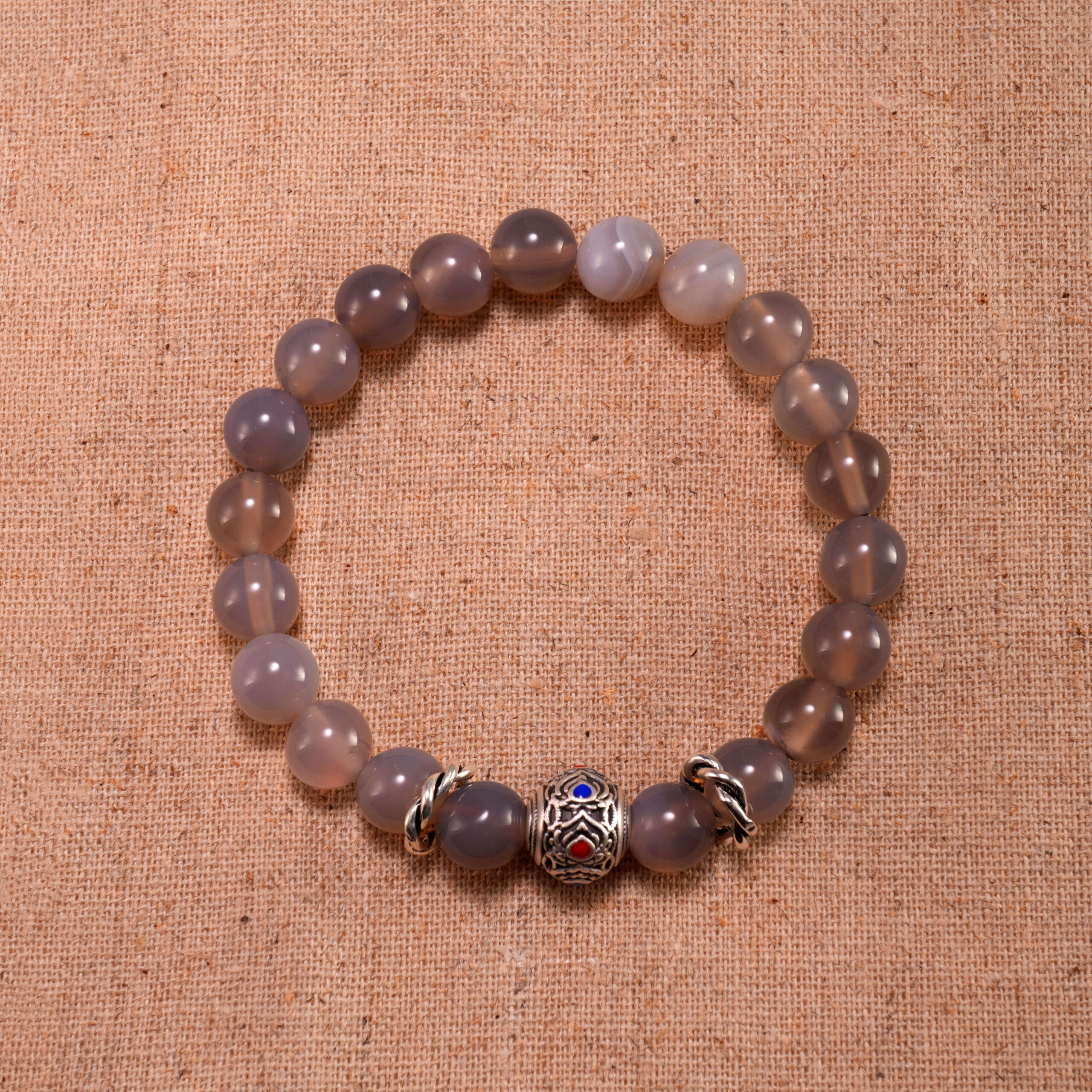 Gray Agate 8mm Gemstone Bracelet for Calm & Clarity