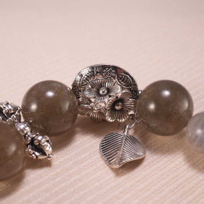 Be the first to review “Sleep Aid – Gray Moonstone & Azeztulite Quartz 15mm Bracelet”