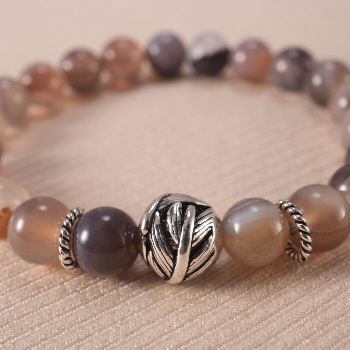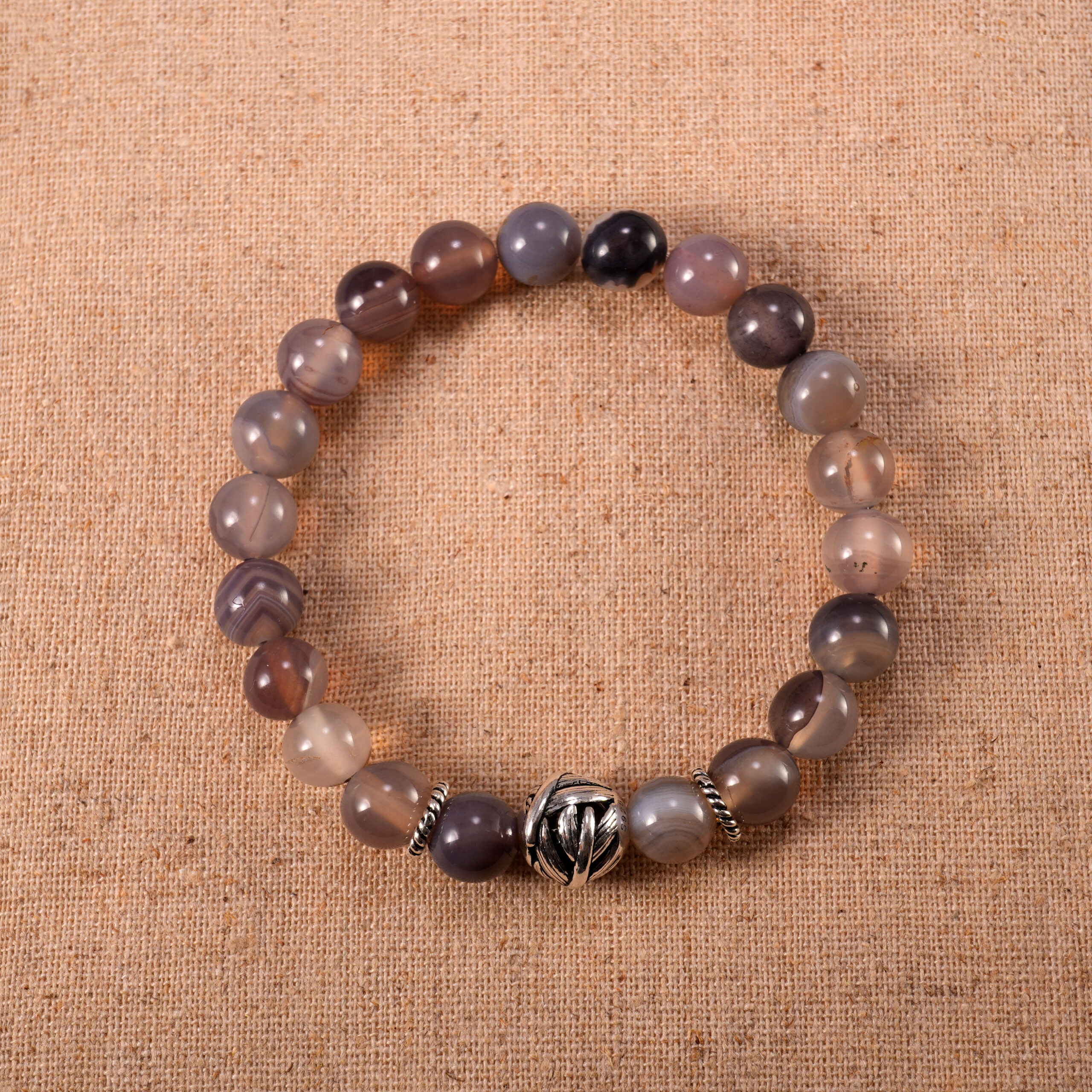 Made with 8mm gray agate beads, this handmade bracelet brings calm, stability, balance, and tranquility to your day. The sleek, minimalist design makes it a perfect accessory for any occasion. Agate, a powerful grounding stone, works to harmonize, soothe, and restore your energy.