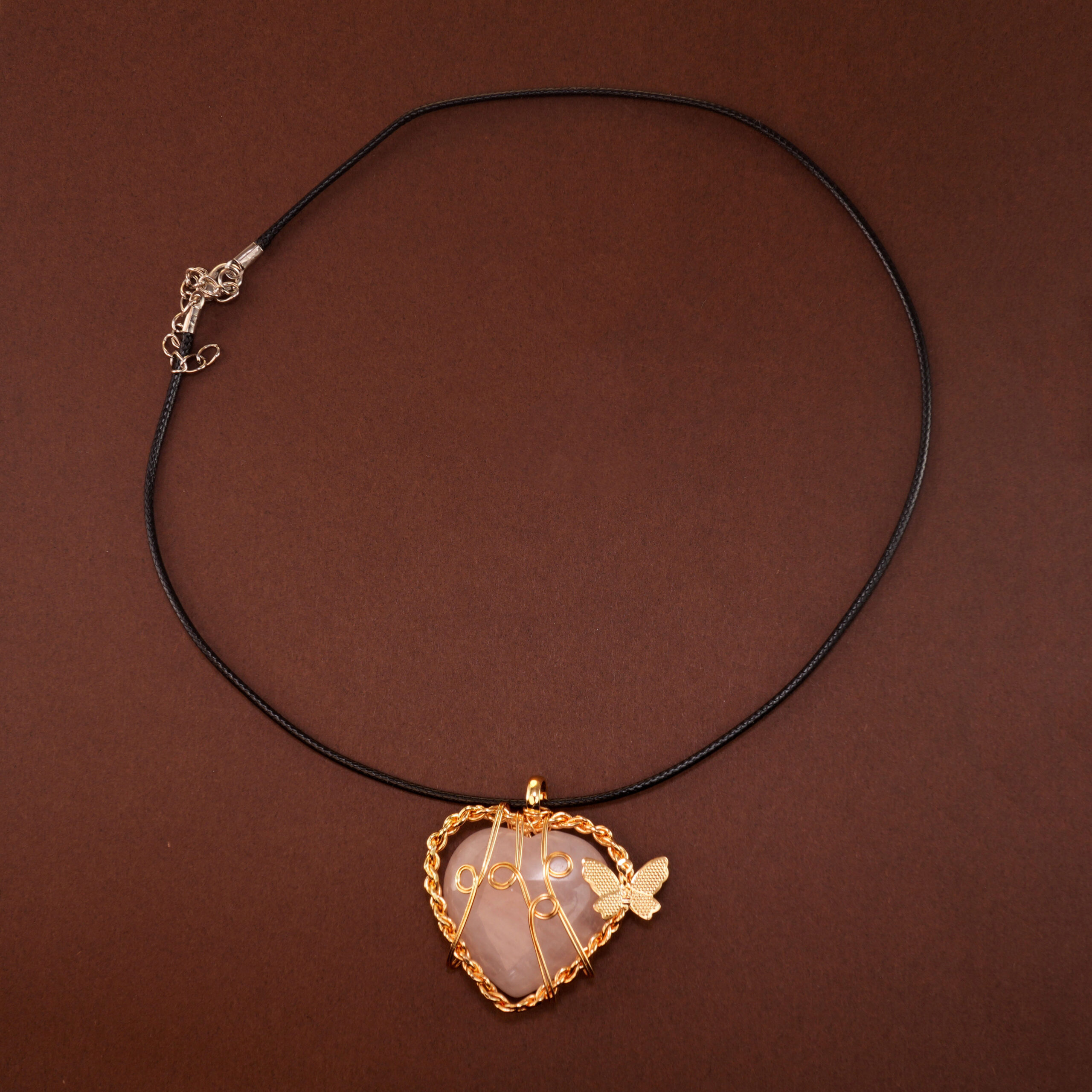 Handmade Heart-Shaped Rose Quartz Pendant Necklace