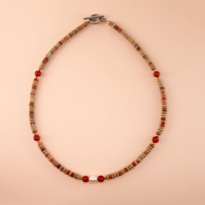 Be the first to review “Handmade Landscape Stone, Red Agate & Pearl Necklace” Cancel reply
