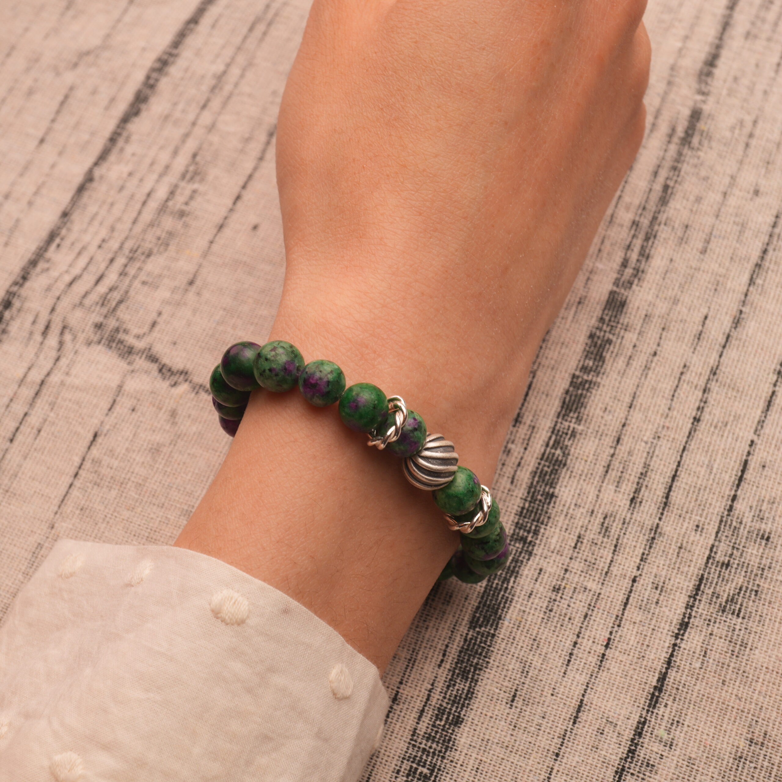 Handcrafted with genuine Ruby and Green Jasper, this bracelet is designed to bring good luck, emotional healing, and stability. Ruby boosts vitality, passion, and love, while Green Jasper offers grounding, protection, and balance, making it the perfect combination for those seeking both inner strength and good fortune.