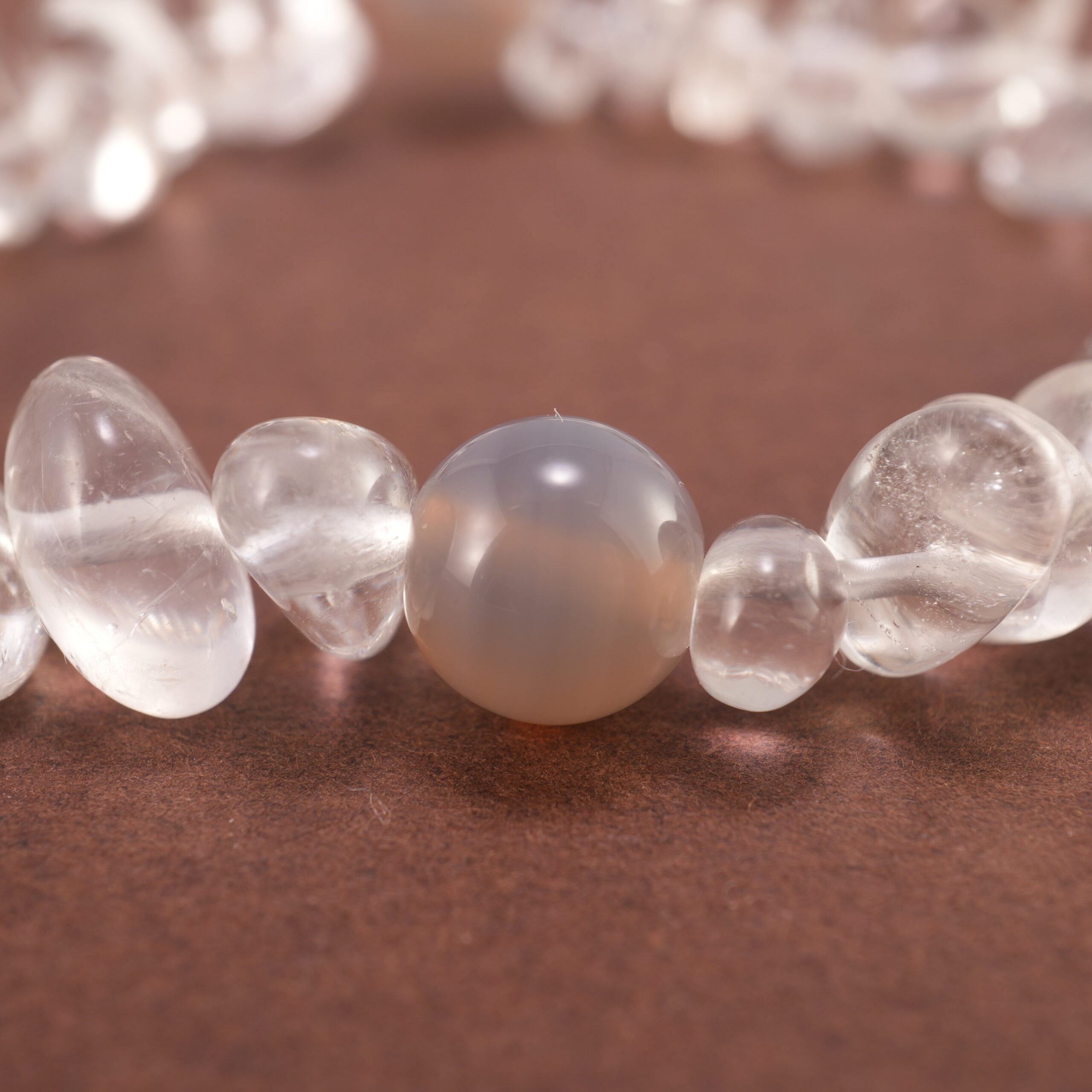 This unique handmade bracelet combines raw clear quartz and smooth gray agate beads in a freeform design. It offers a modern minimalist style while promoting calm, clarity, emotional balance, and healing. Perfect for everyday wear or layering with other bracelets.