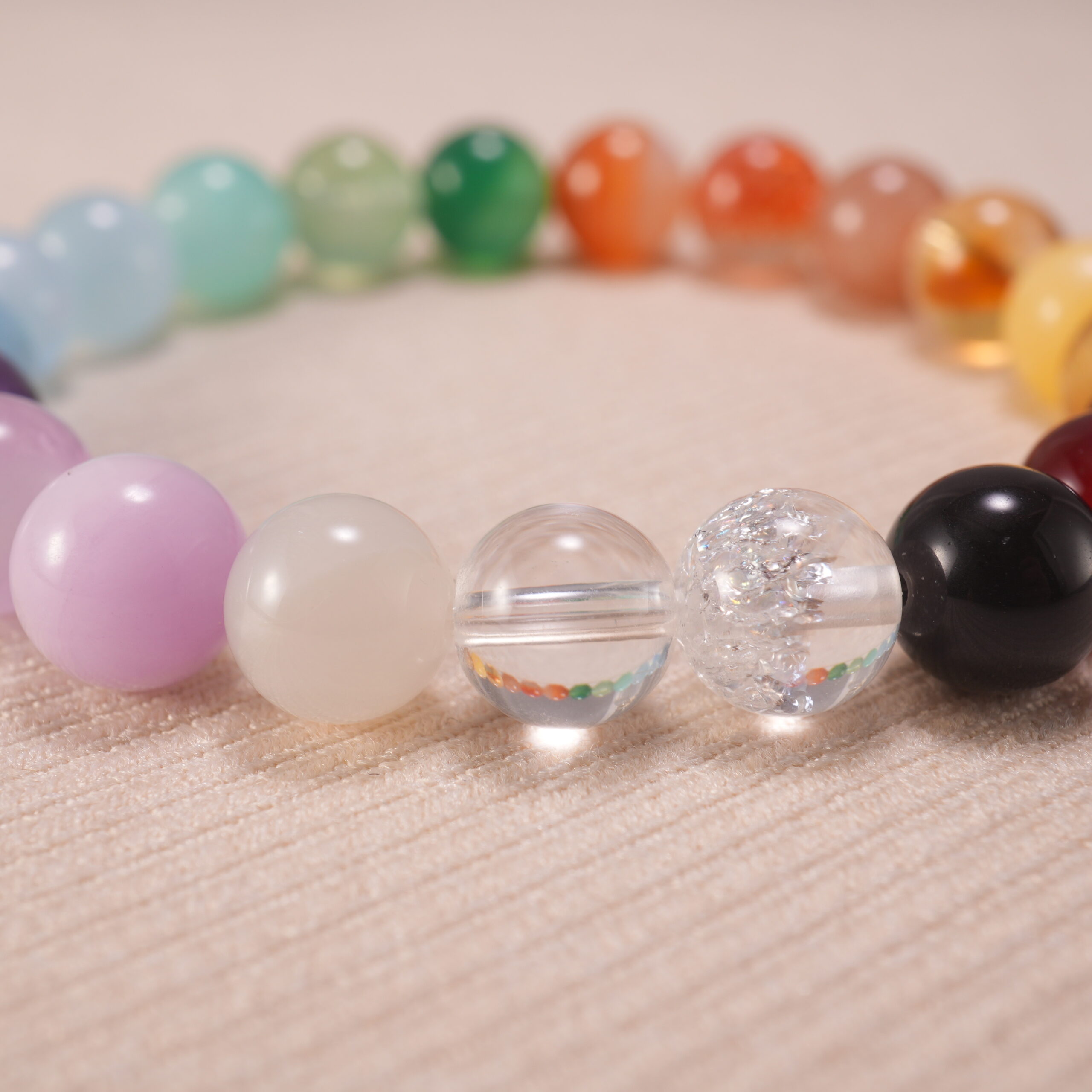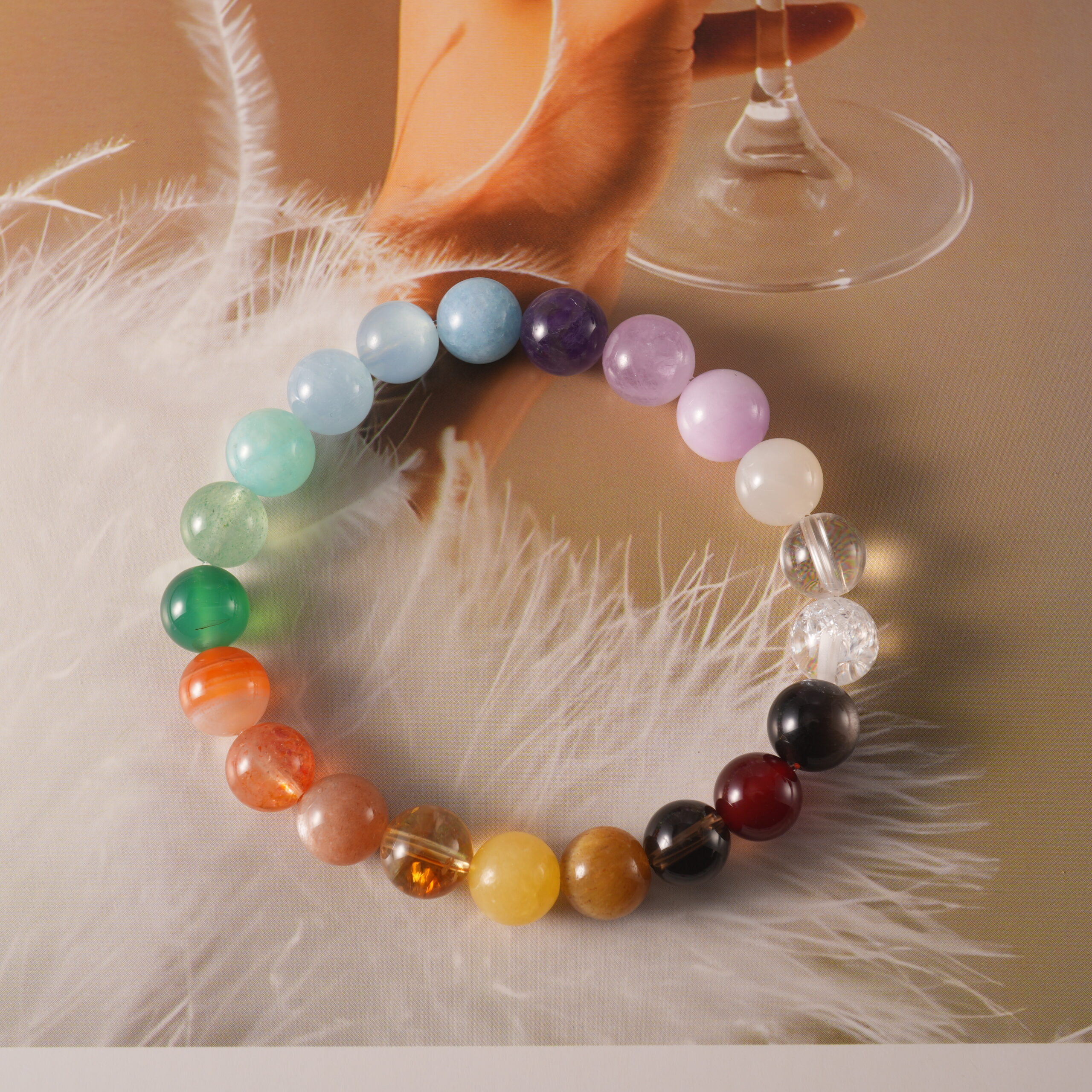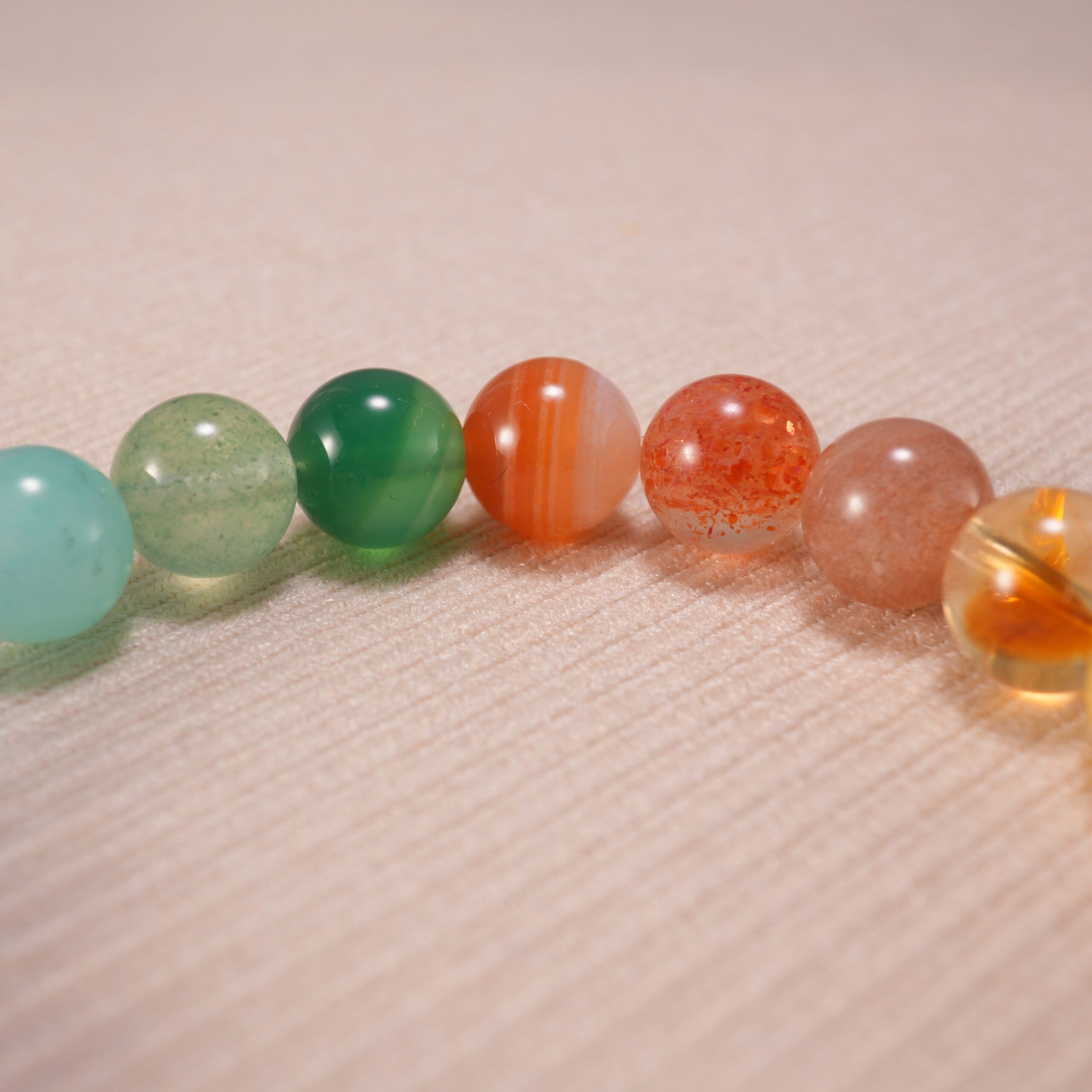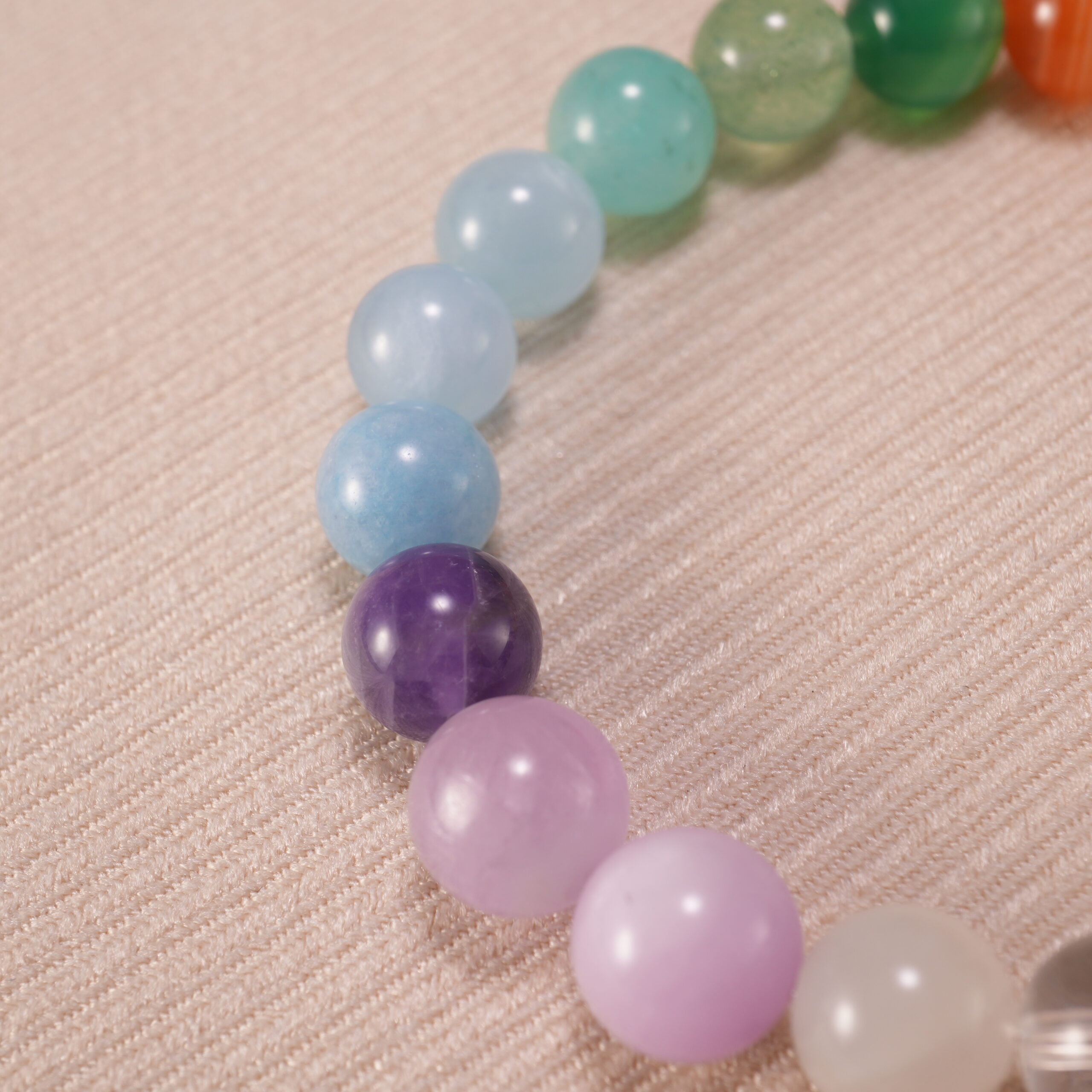 This bracelet is designed to balance and align all seven chakras, each stone supporting specific energies: