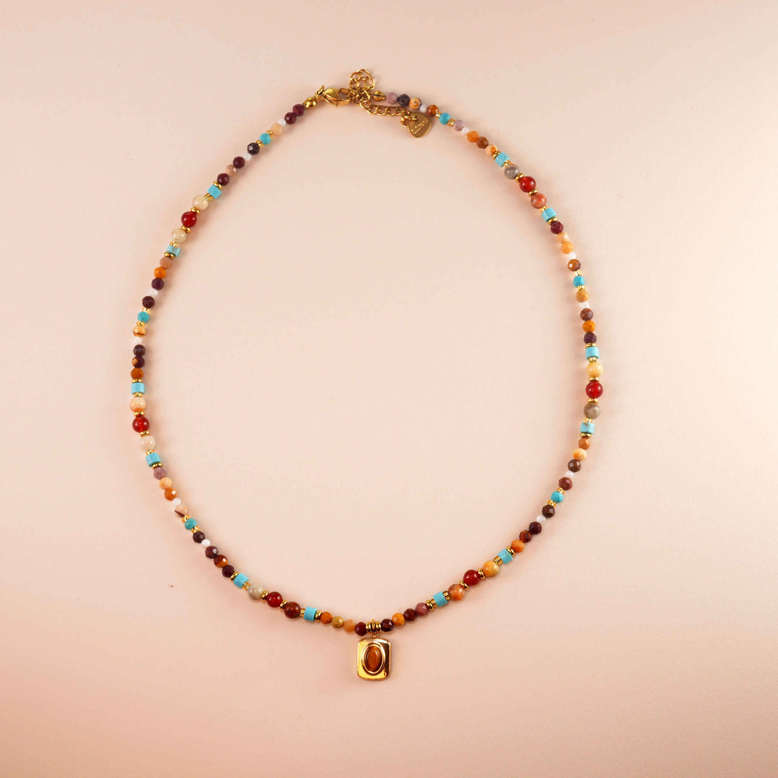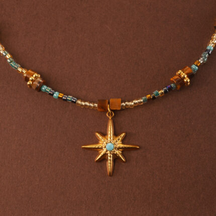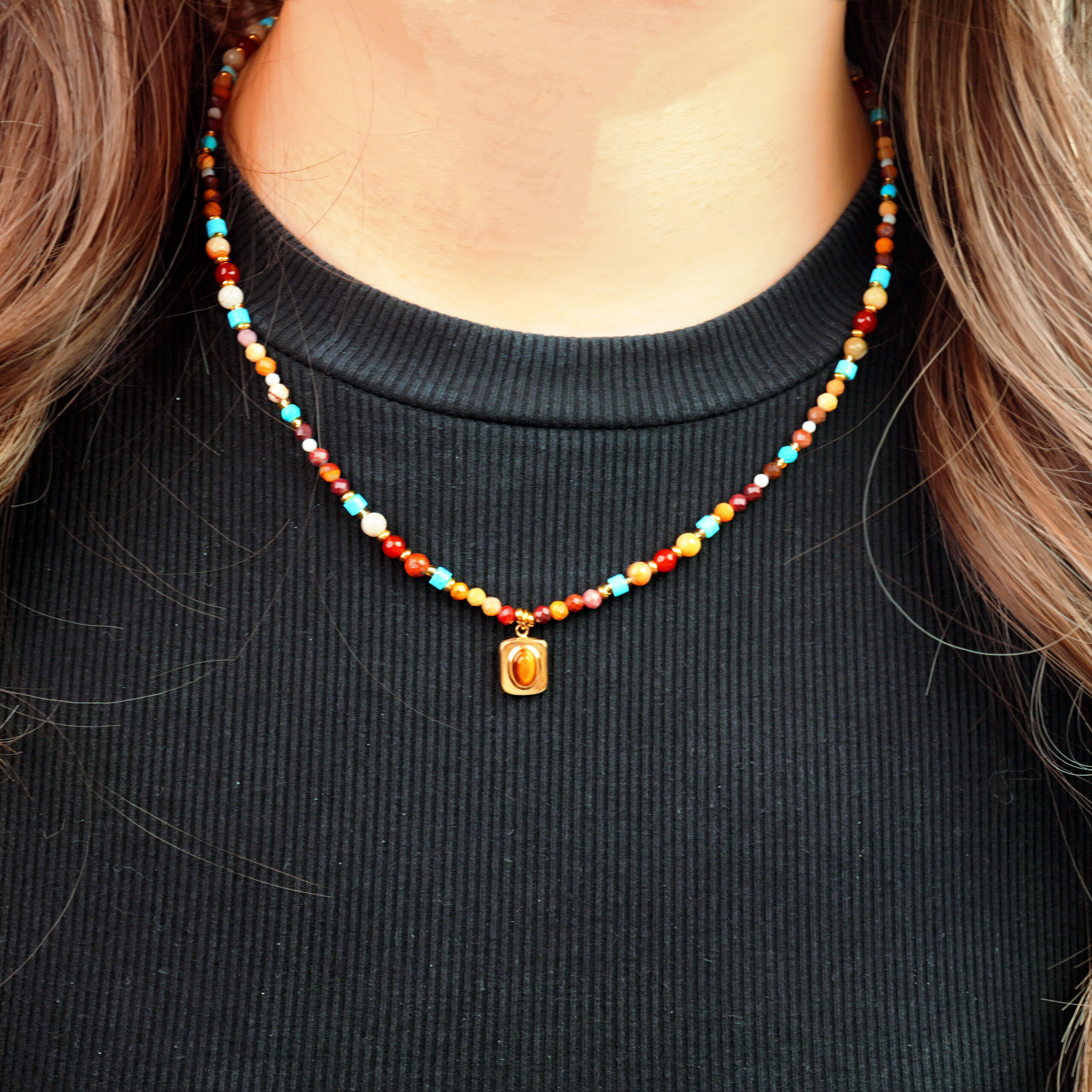 This exquisite vintage-inspired necklace blends the grounding power of Tiger Eye, the soothing properties of Agate, and the healing energy of Turquoise. The simple, dainty design makes it a perfect accessory for both casual and formal occasions while offering vitality and good luck to the wearer.