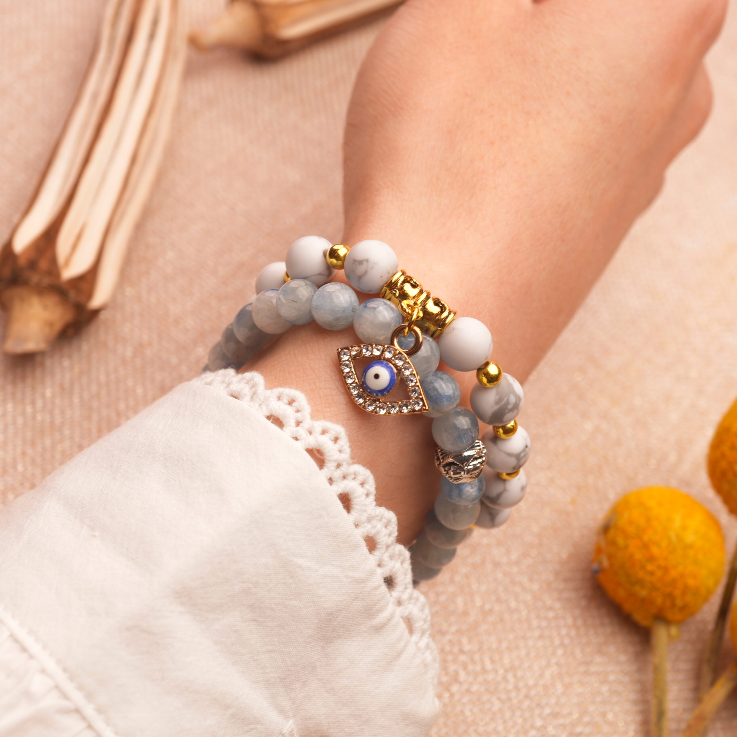 Categories: Agate, Communication, Howlite, Kyanite, Stacking Bracelets, Vitality