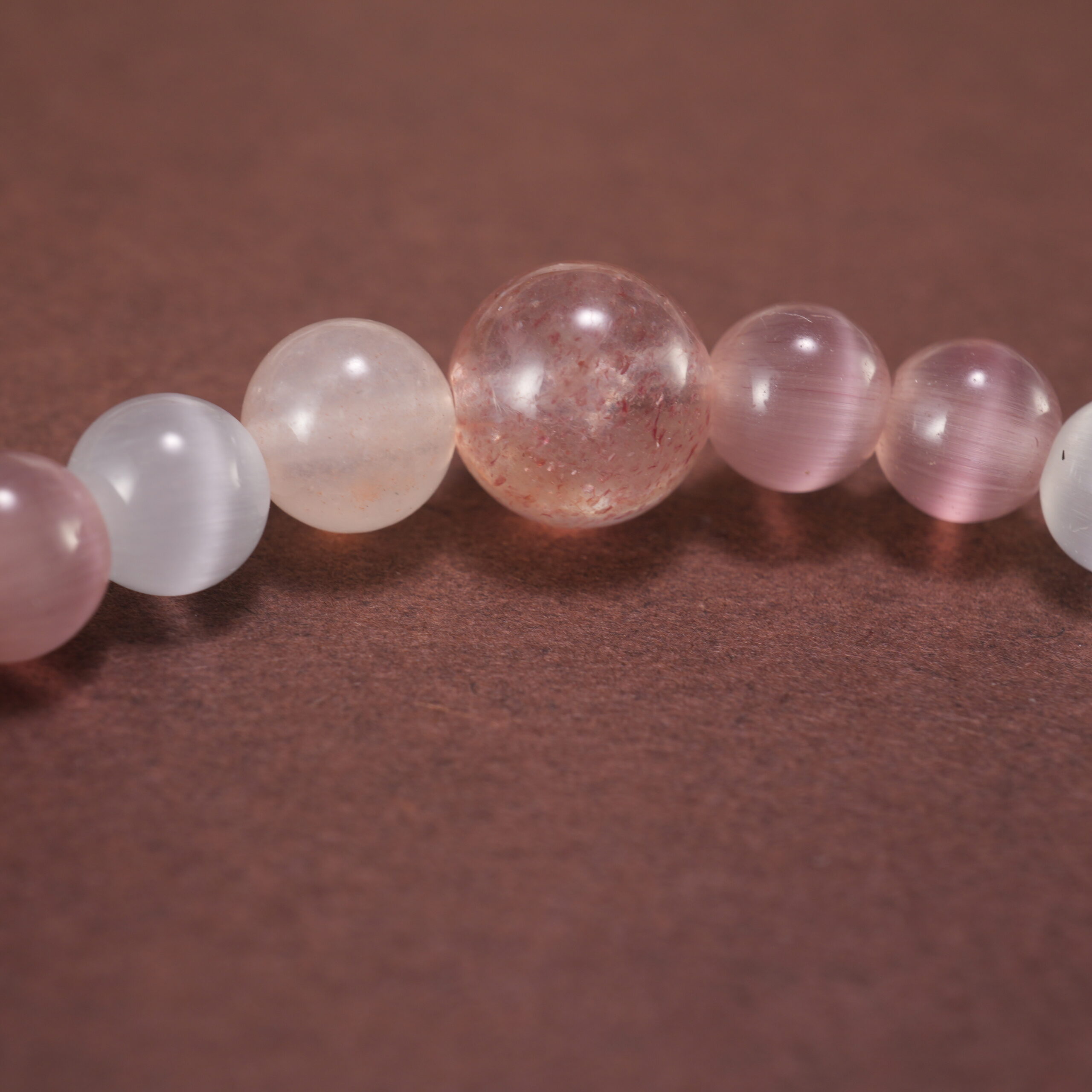 Stacked Bracelets featuring Kyanite, Cat’s Eye, and Strawberry Quartz, combining intuition, emotional clarity, and gentle love. Handcrafted in soft, luminous tones to bring balance, focus, and inner peace. A soothing crystal stack perfect for daily wear, reflection, or heartfelt gifting.