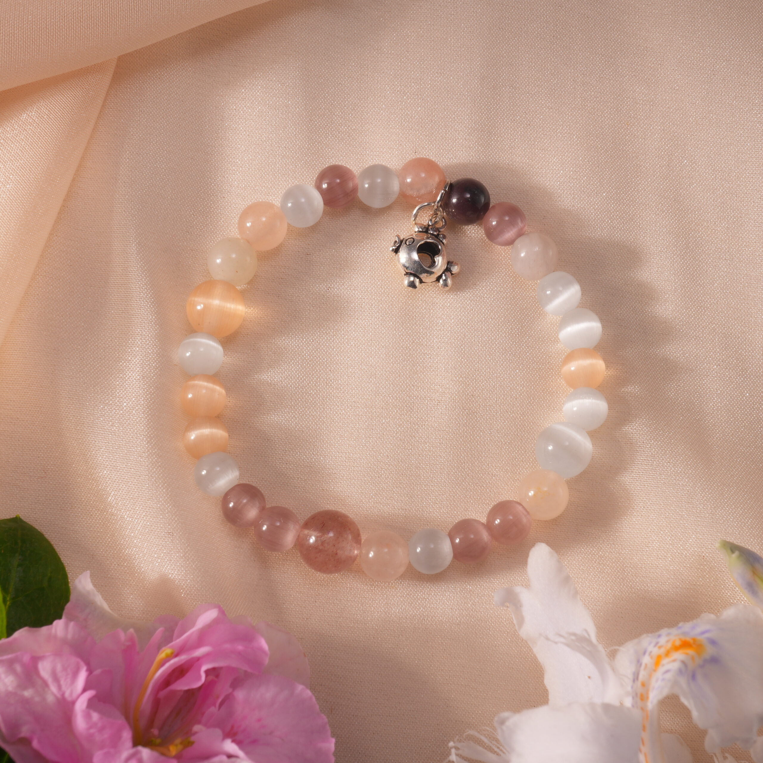 Kyanite & Strawberry Quartz Charm Bracelet Stack – Love & Communication