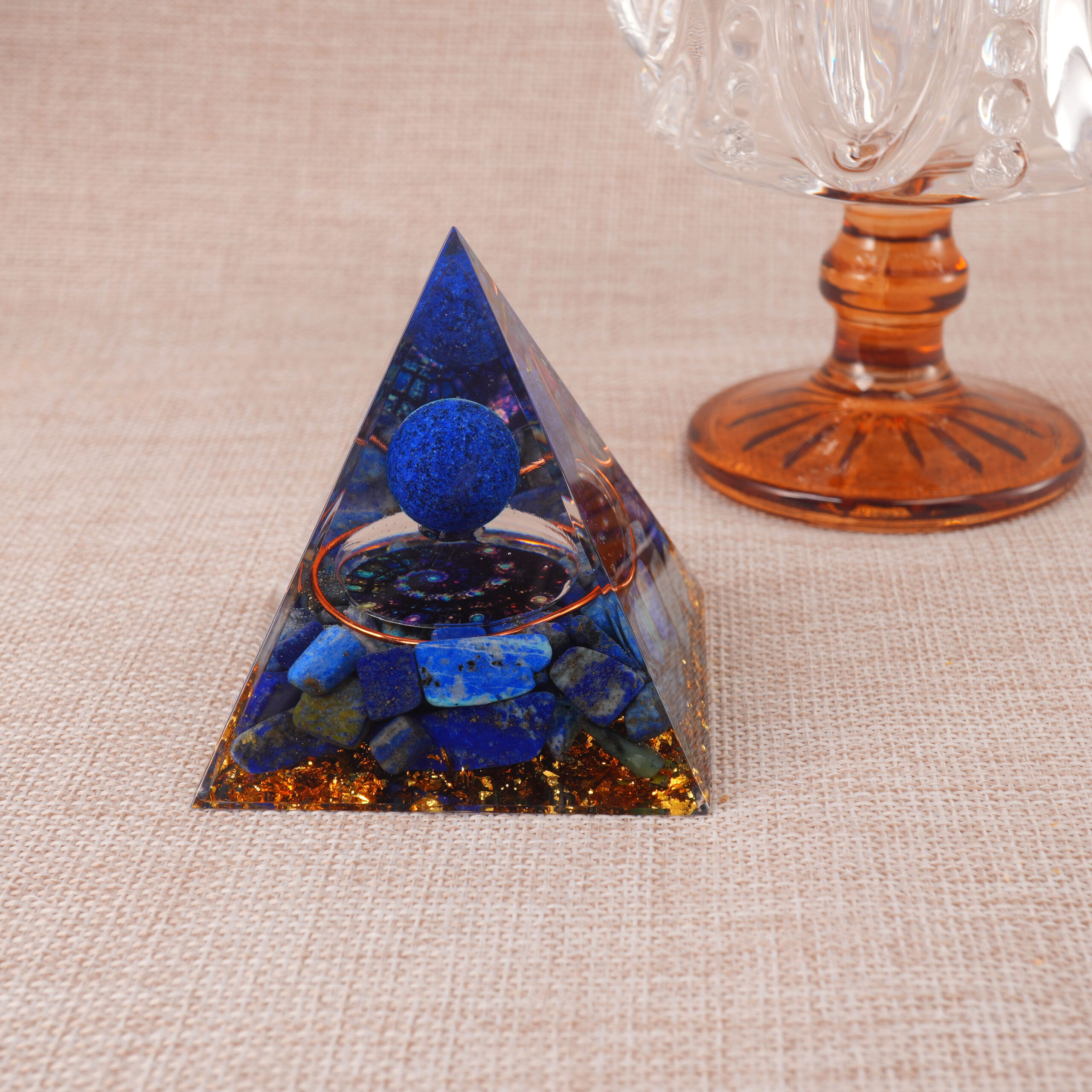 Experience the calming power of lapis lazuli in a sleek, handcrafted resin pyramid — a perfect blend of beauty, energy, and artistic design for your space.