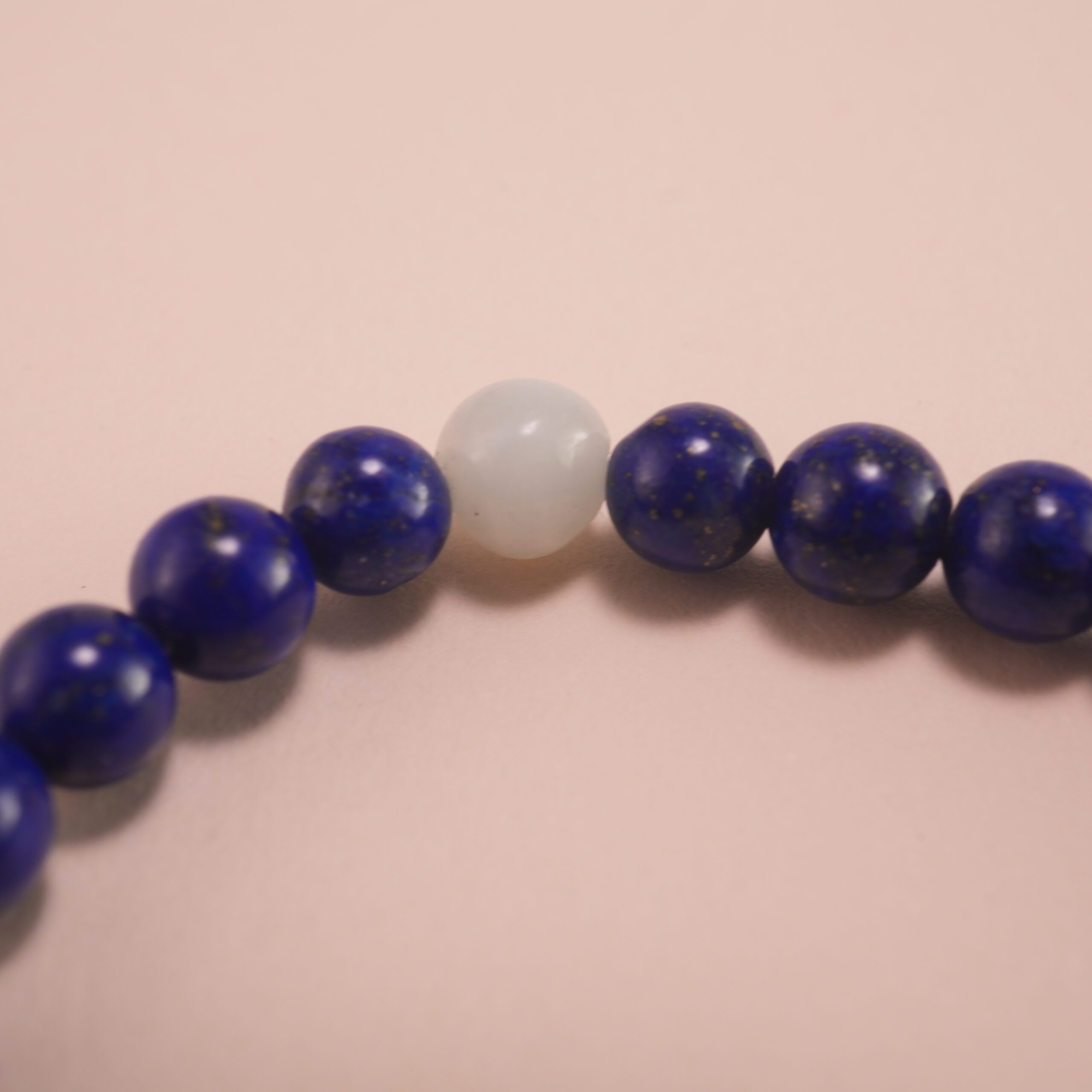 - Genuine lapis lazuli and white chalcedony beads
