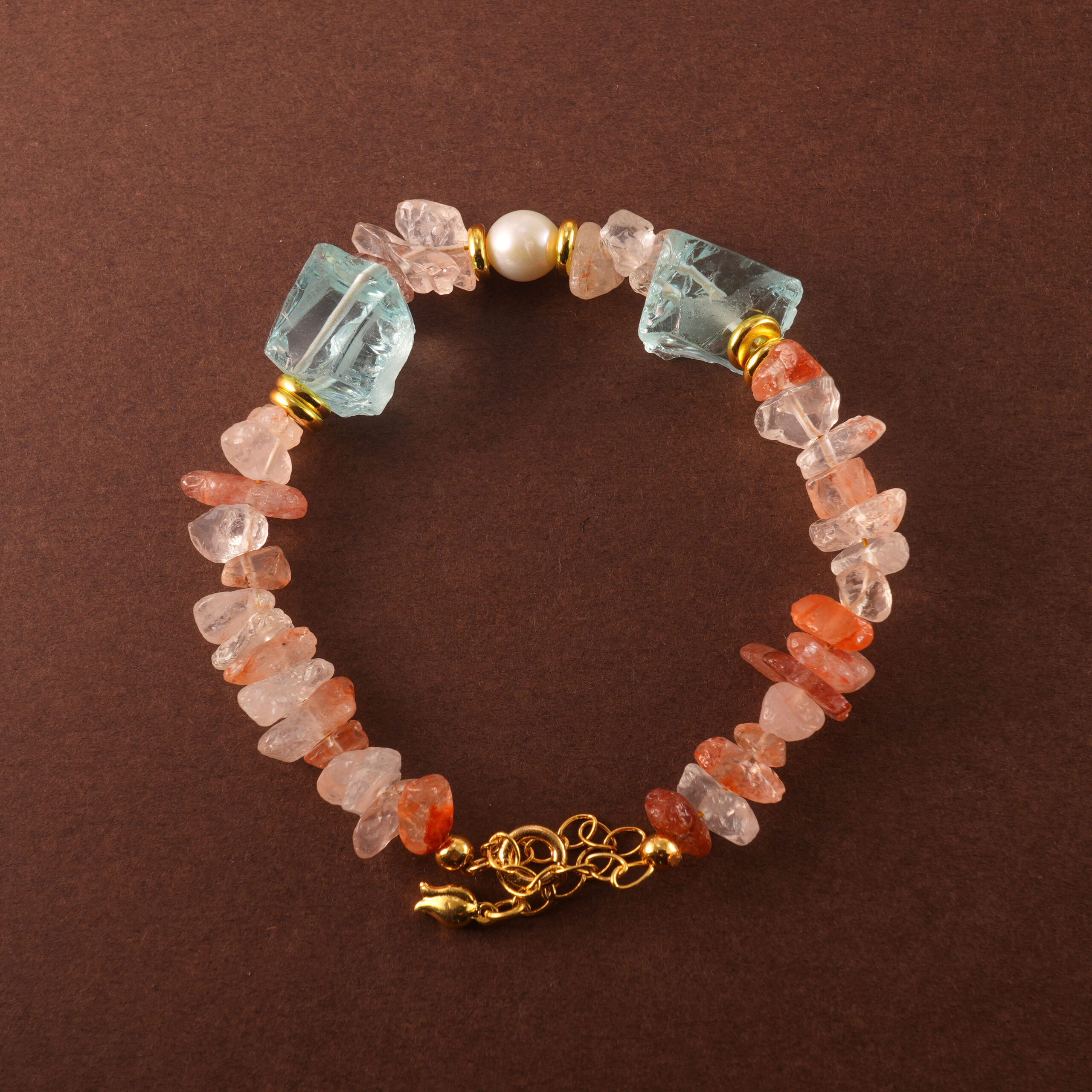 Leo Bracelet – Fire Quartz, Pearl & Aquamarine Zodiac Jewelry