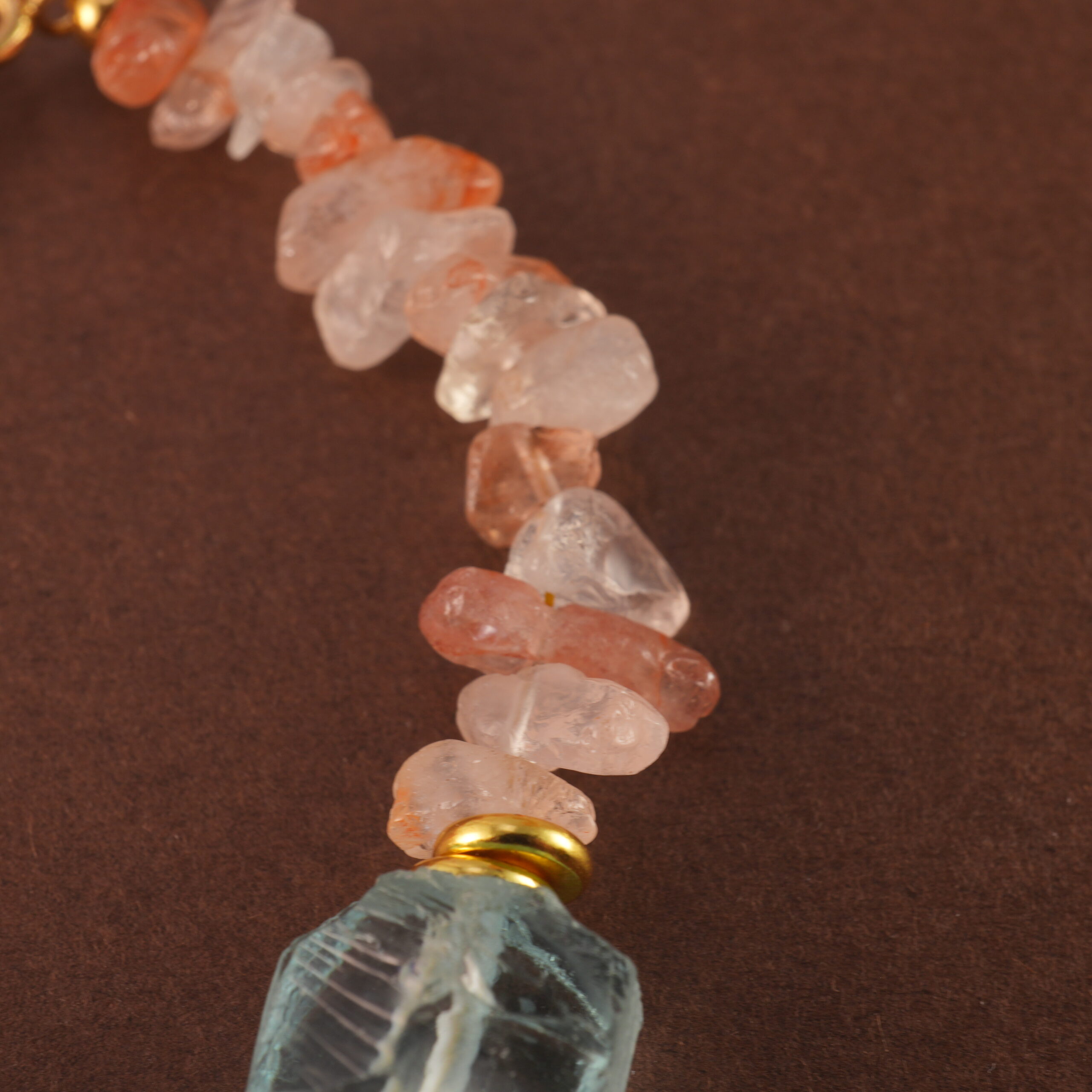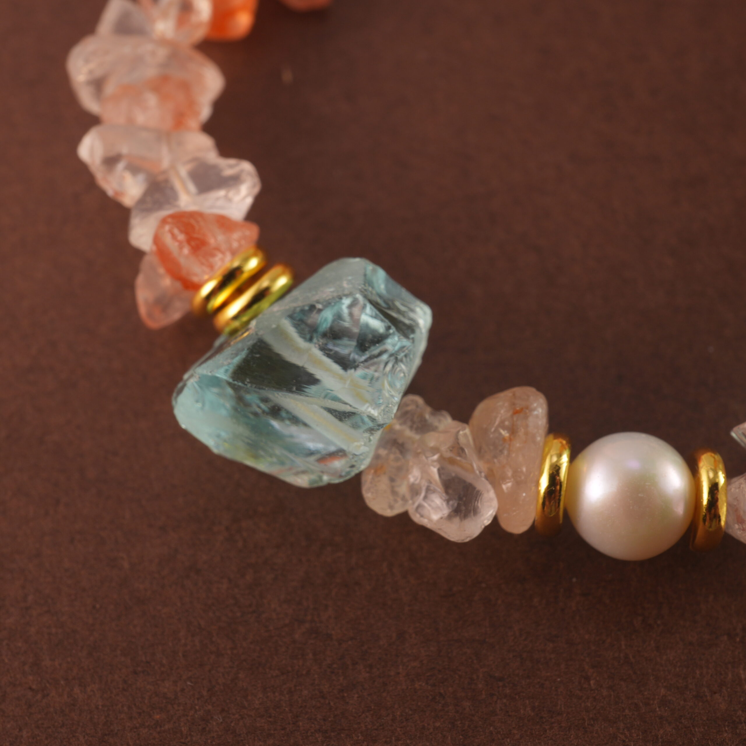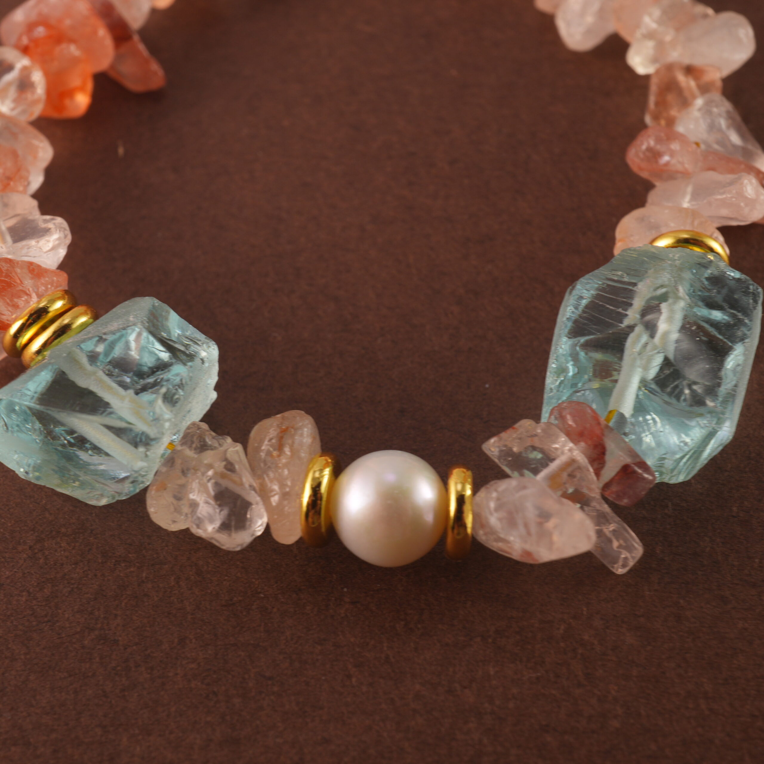 - Handmade with fire quartz, aquamarine, and natural freshwater pearls