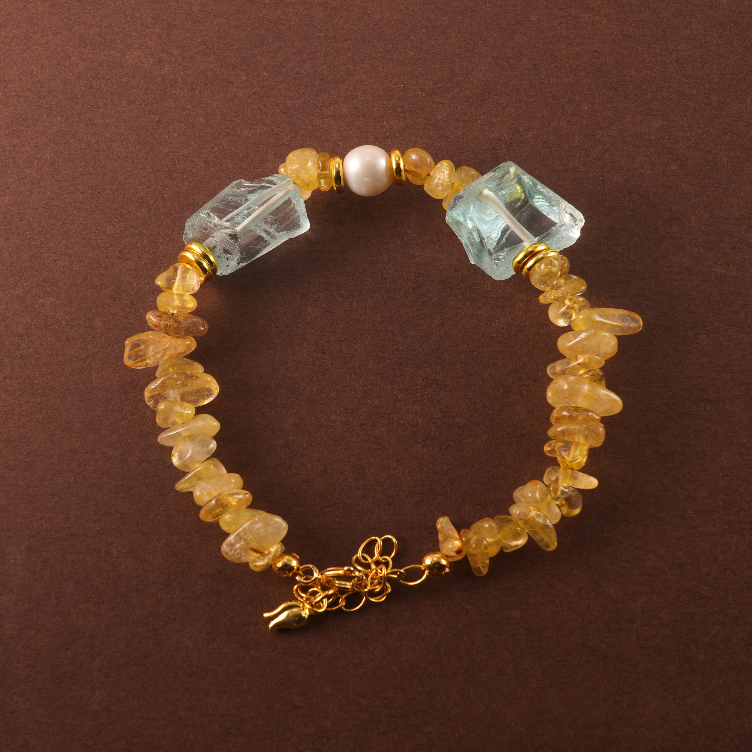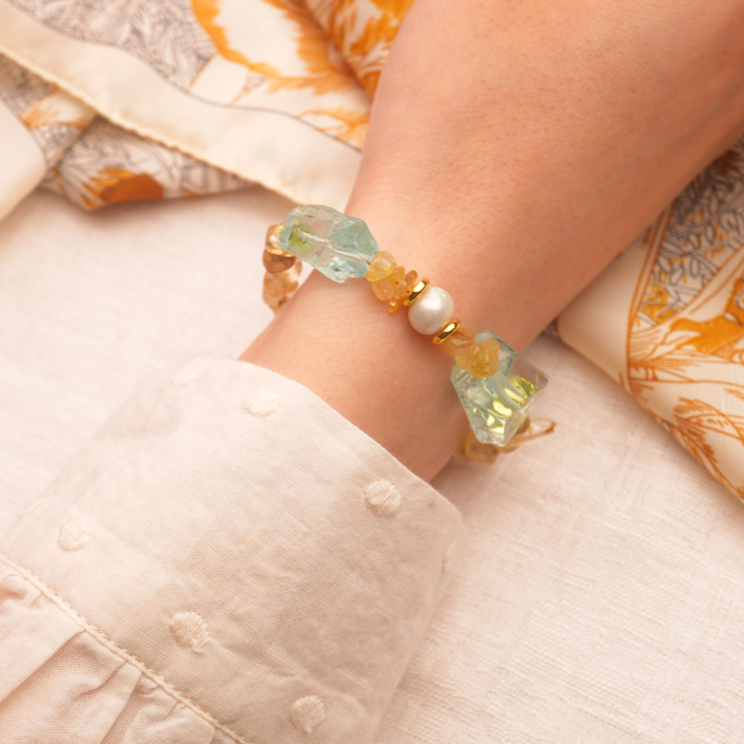 Libra Bracelet – Rutilated Quartz, Pearl & Aquamarine Jewelry