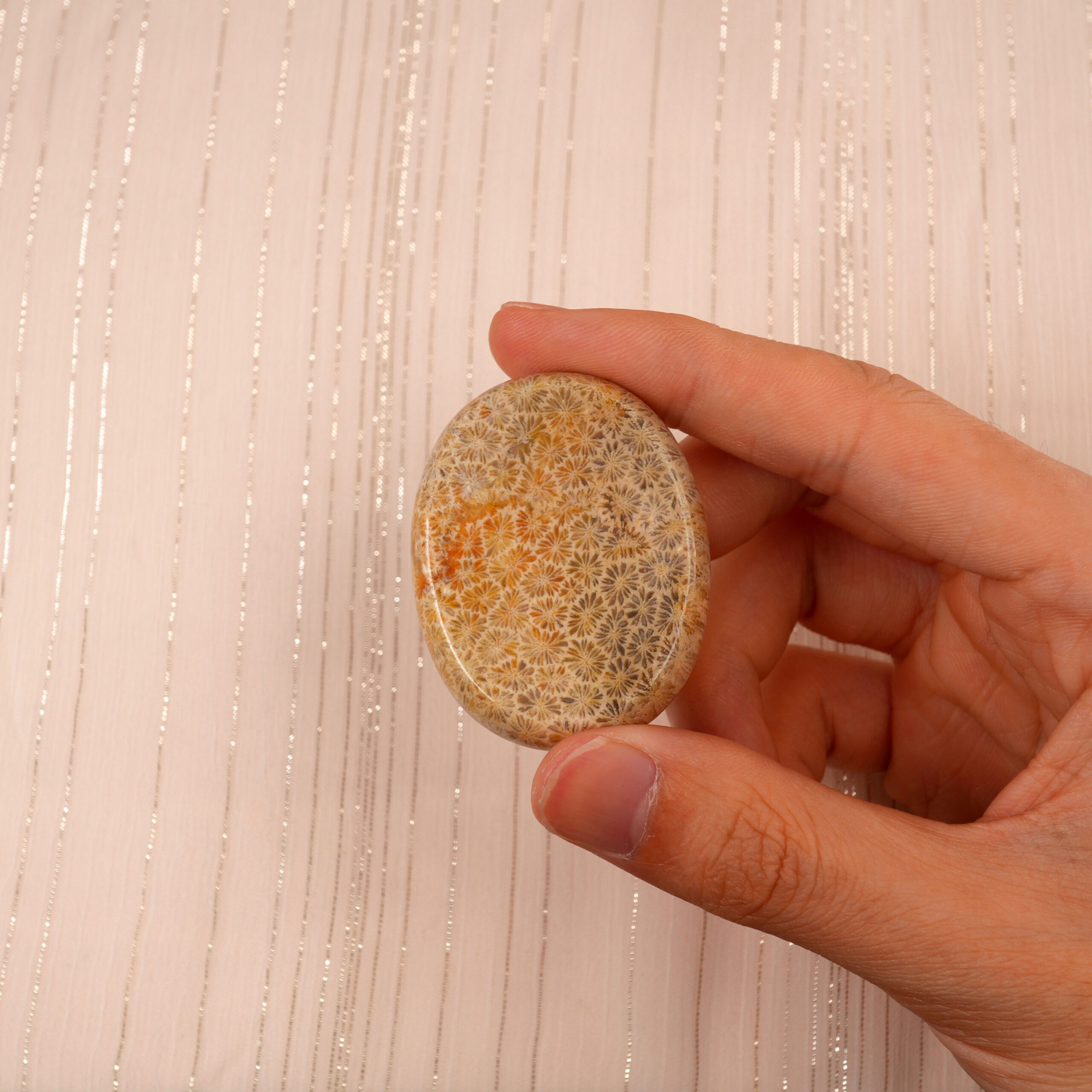 This natural Chrysanthemum Stone touchstone features delicate flower-like patterns formed over millions of years. Known as a stone of harmony and transformation, it supports emotional balance and calm. With its smooth surface and grounding energy, it’s ideal for meditation, reflection, or daily stress relief.