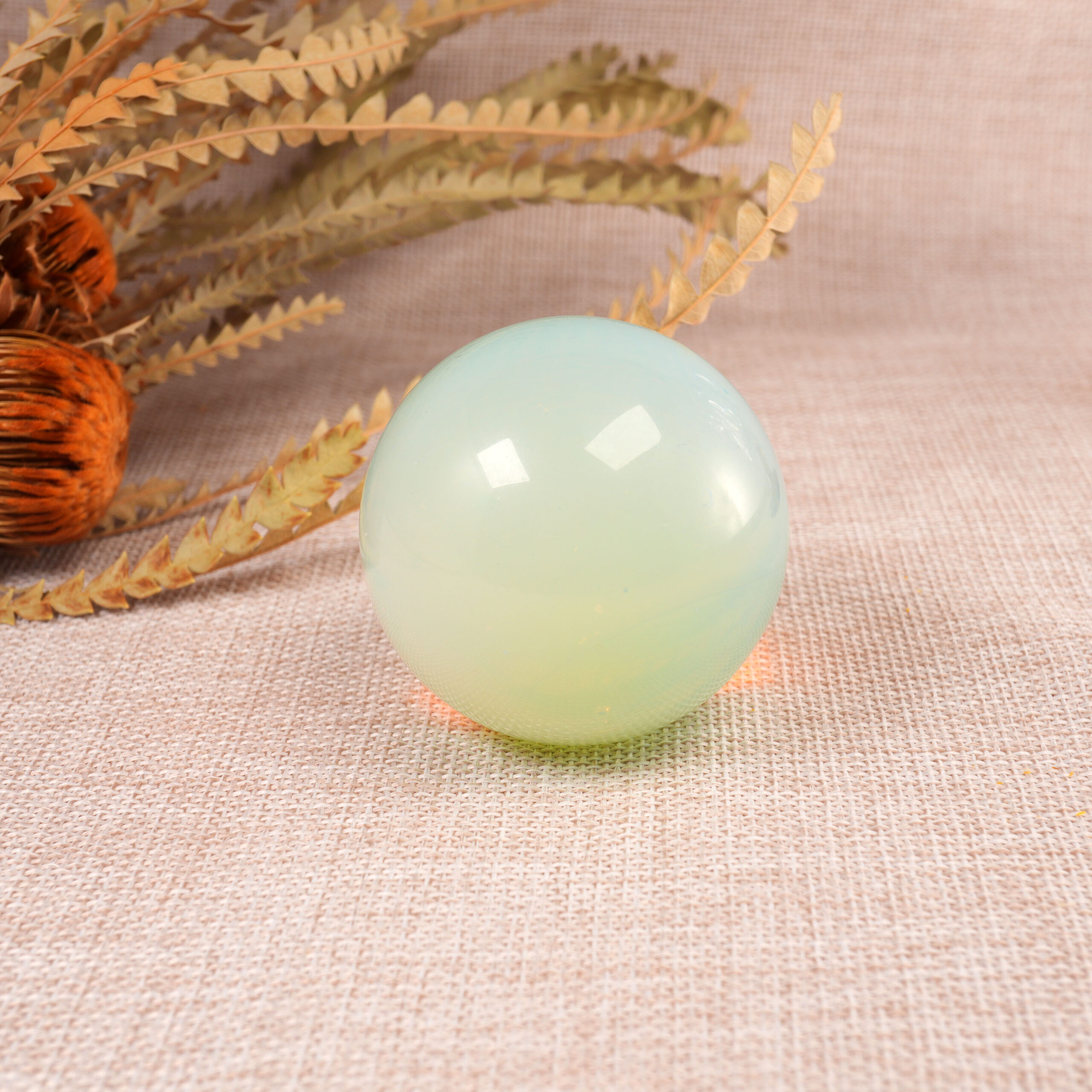 - Genuine opal crystal sphere with an ethereal, luminous sheen