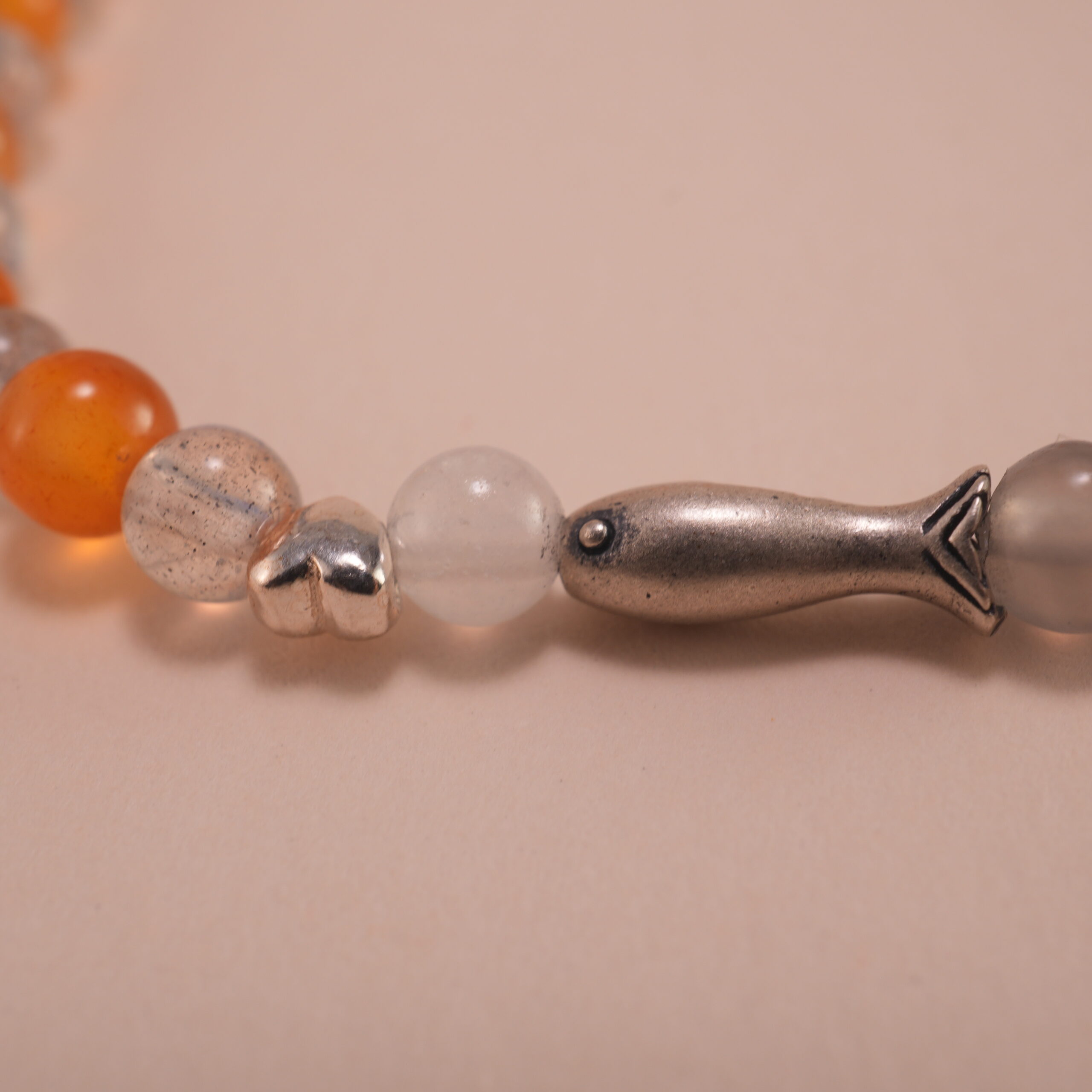 - Genuine orange chalcedony and gray moonstone beads