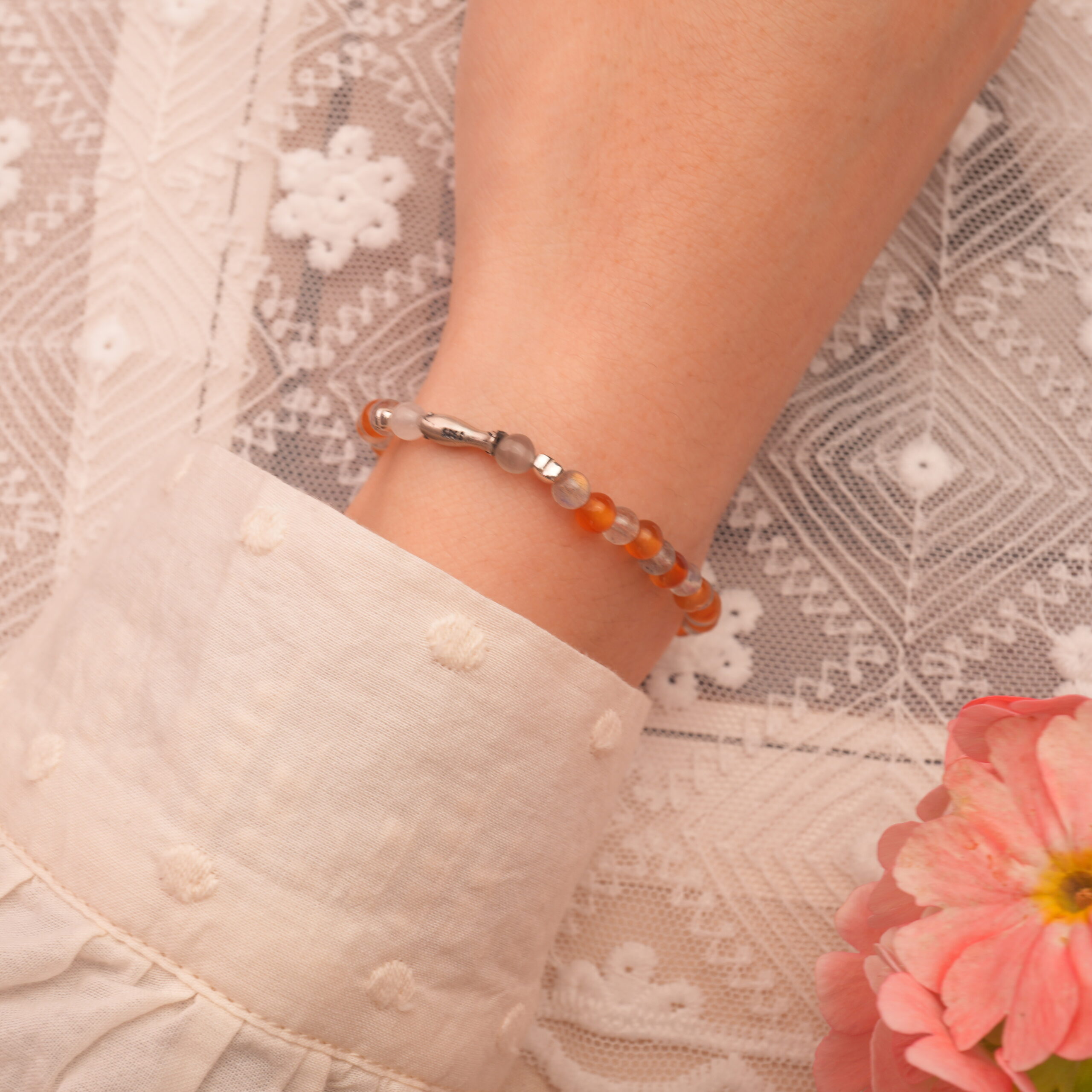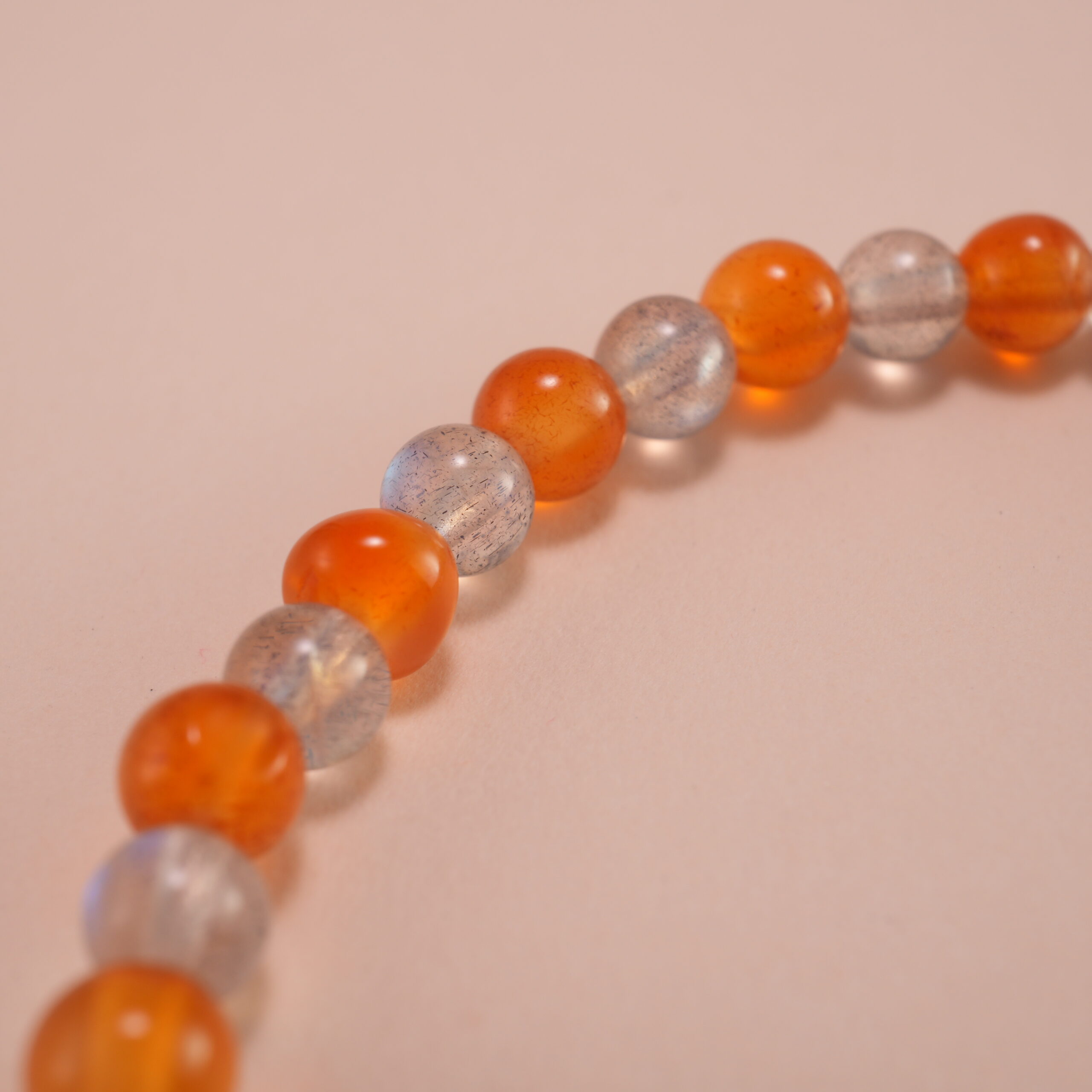 Sleep Aid – Orange Chalcedony & Gray Moonstone 4mm Bracelet