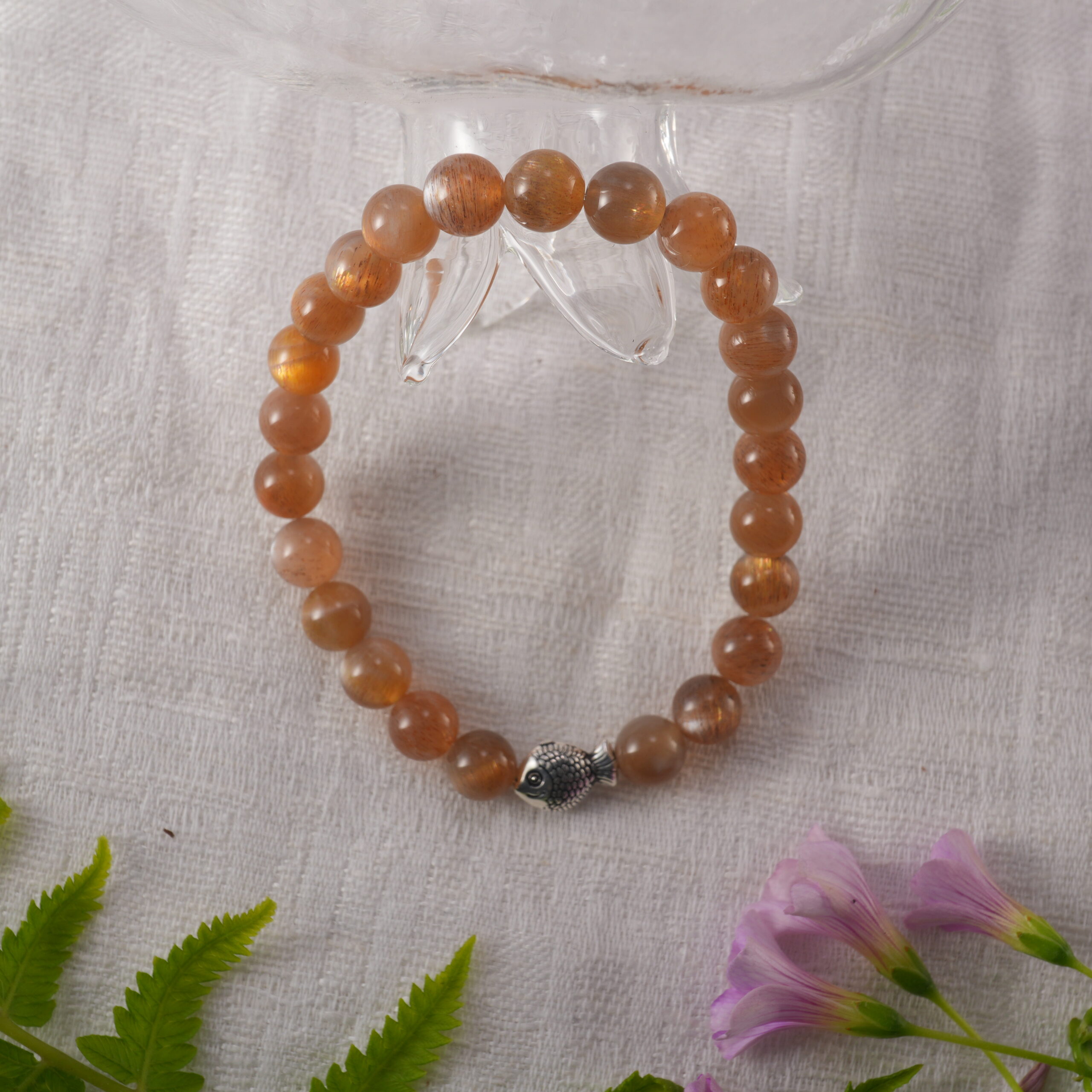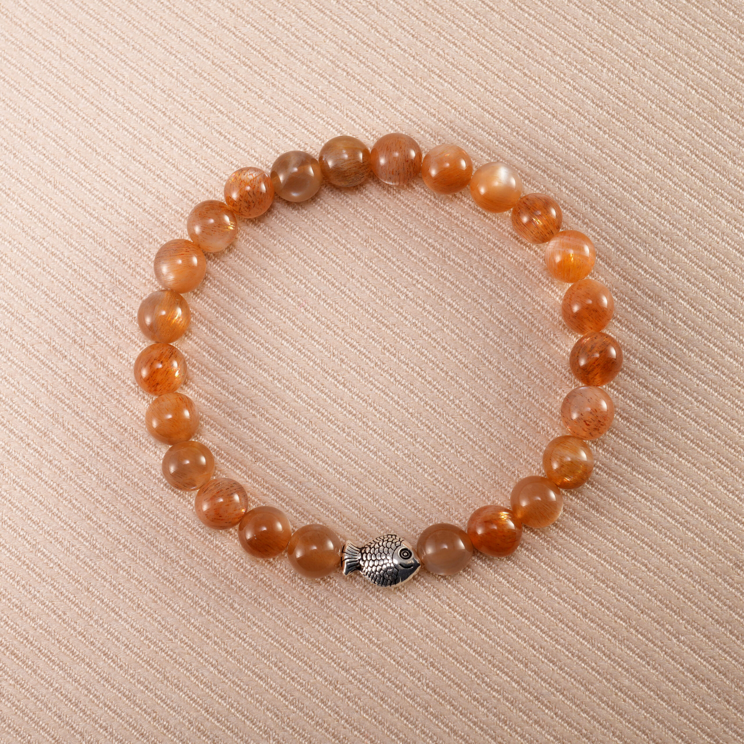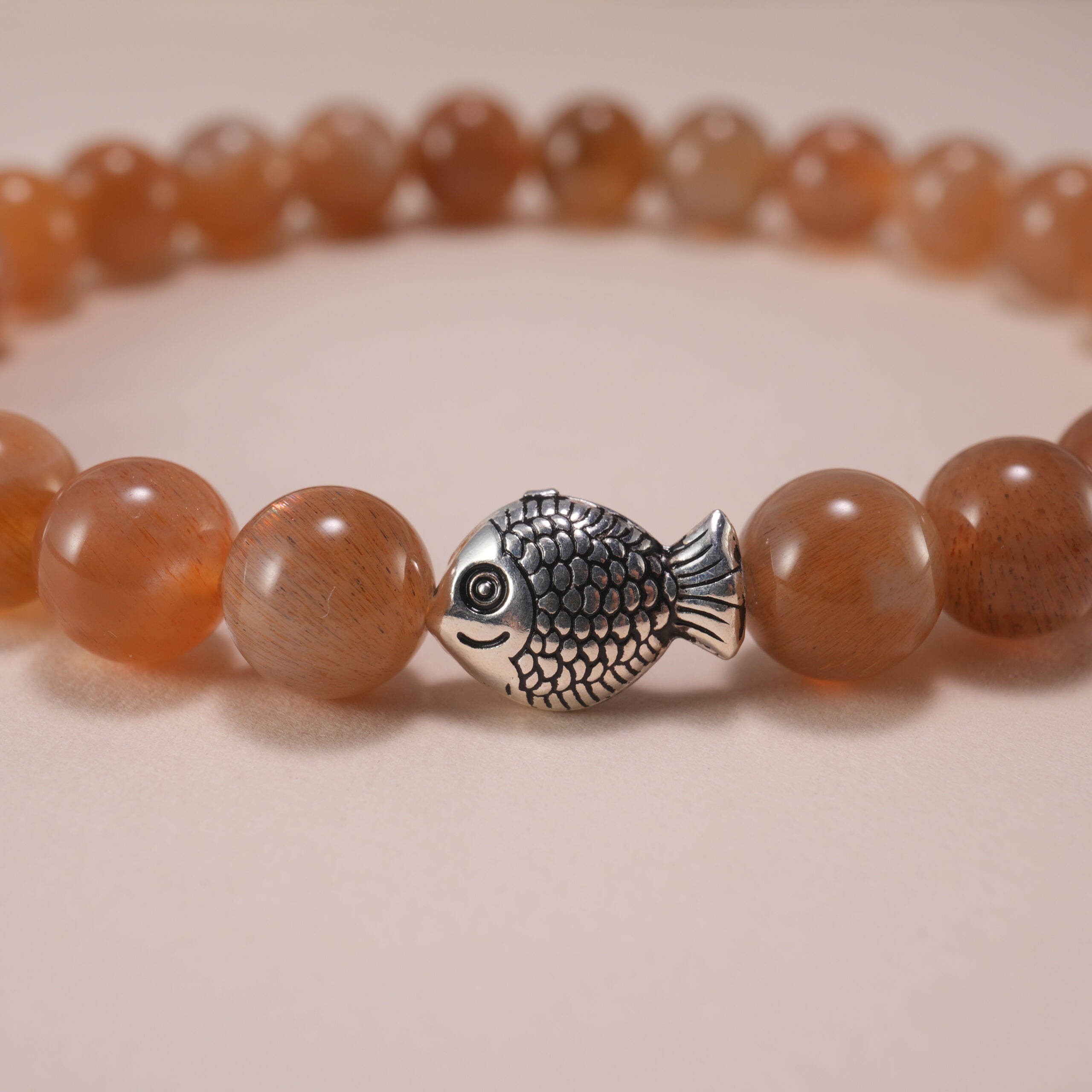 Peach Moonstone Bracelet with Fish Charm – 6mm Crystal for Inner Peace