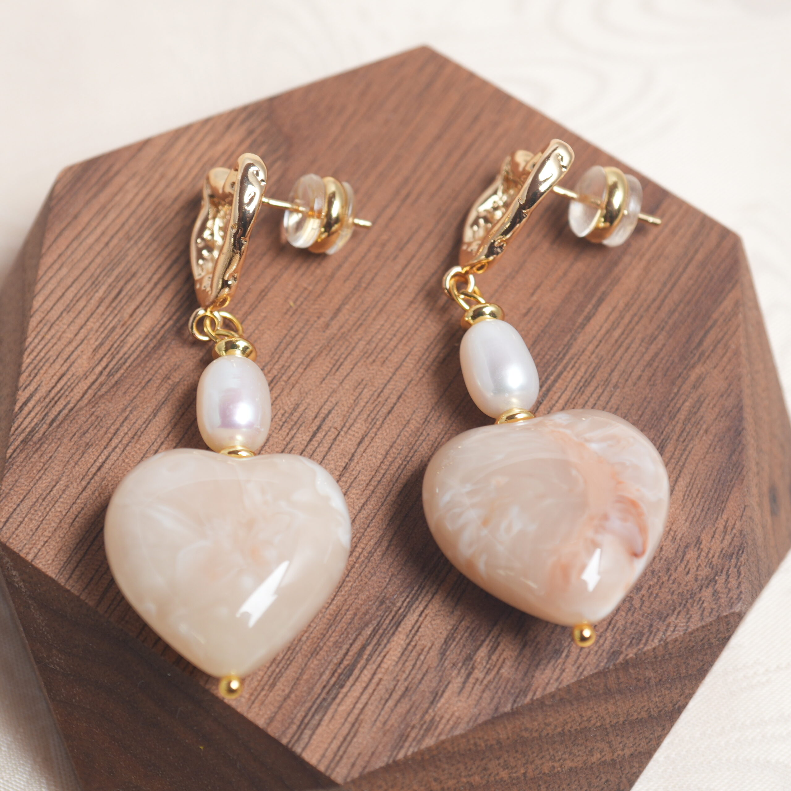 - Handcrafted pearl heart drop earrings, featuring lustrous, high-quality pearls