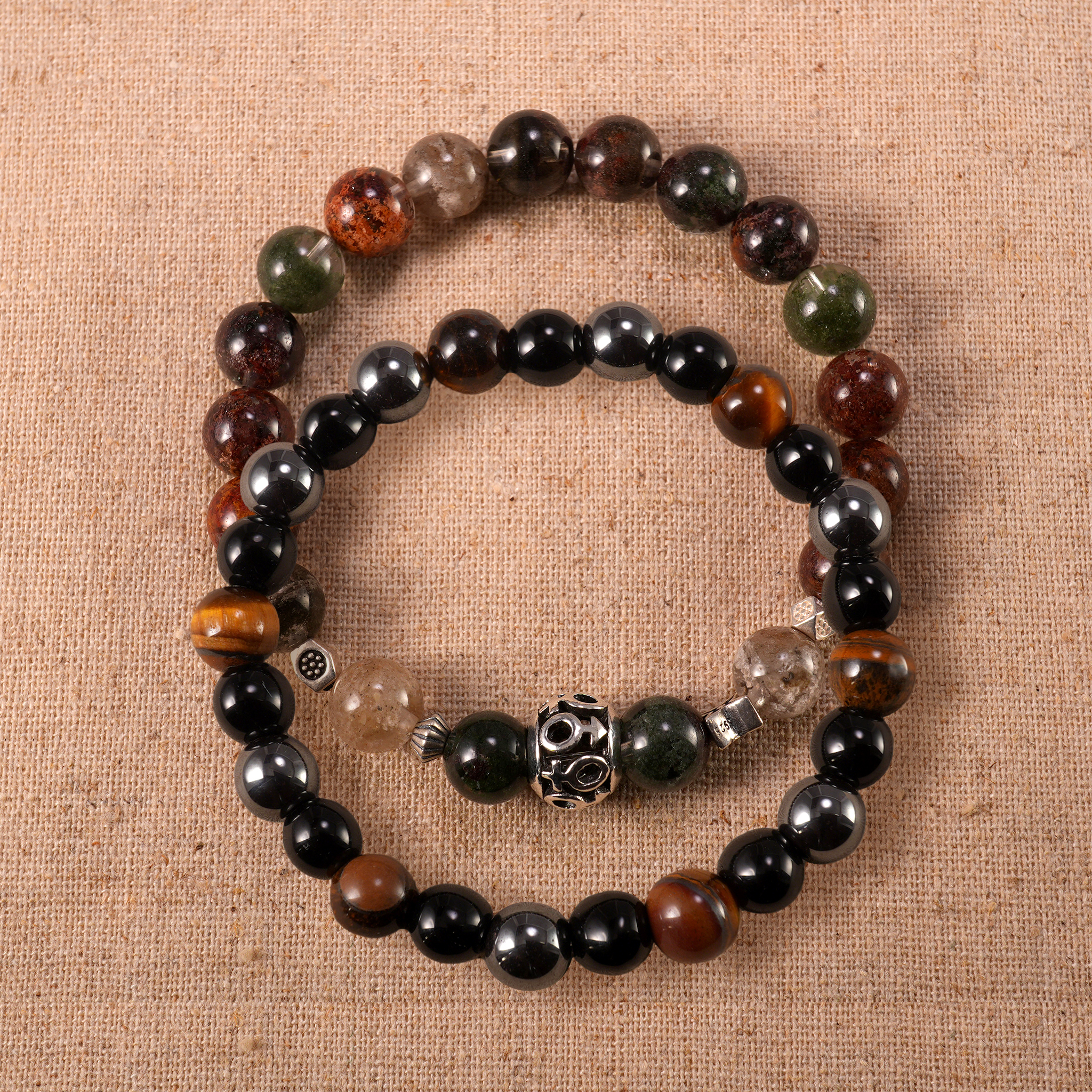 Phantom Quartz, Hematite, Tiger Eye & Obsidian Stacked Bracelets – Good Luck & Protection